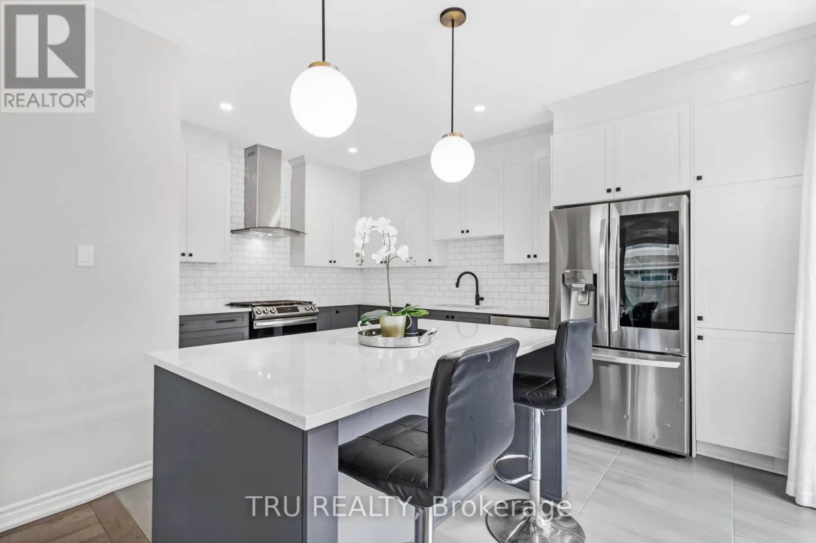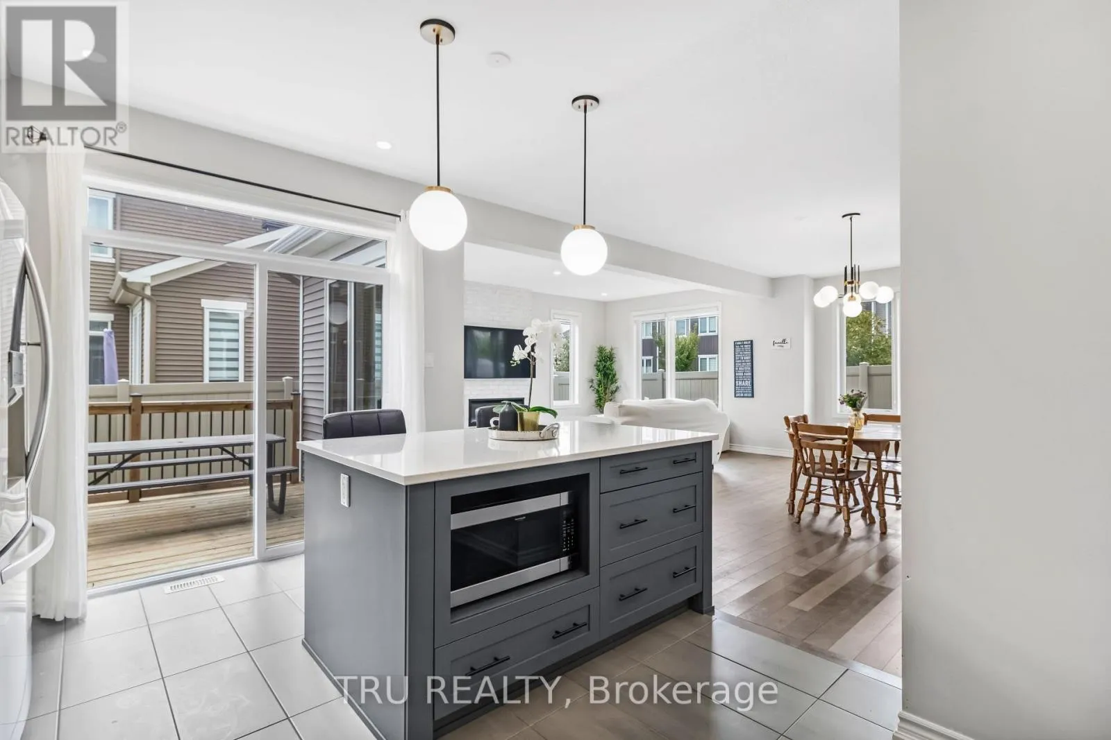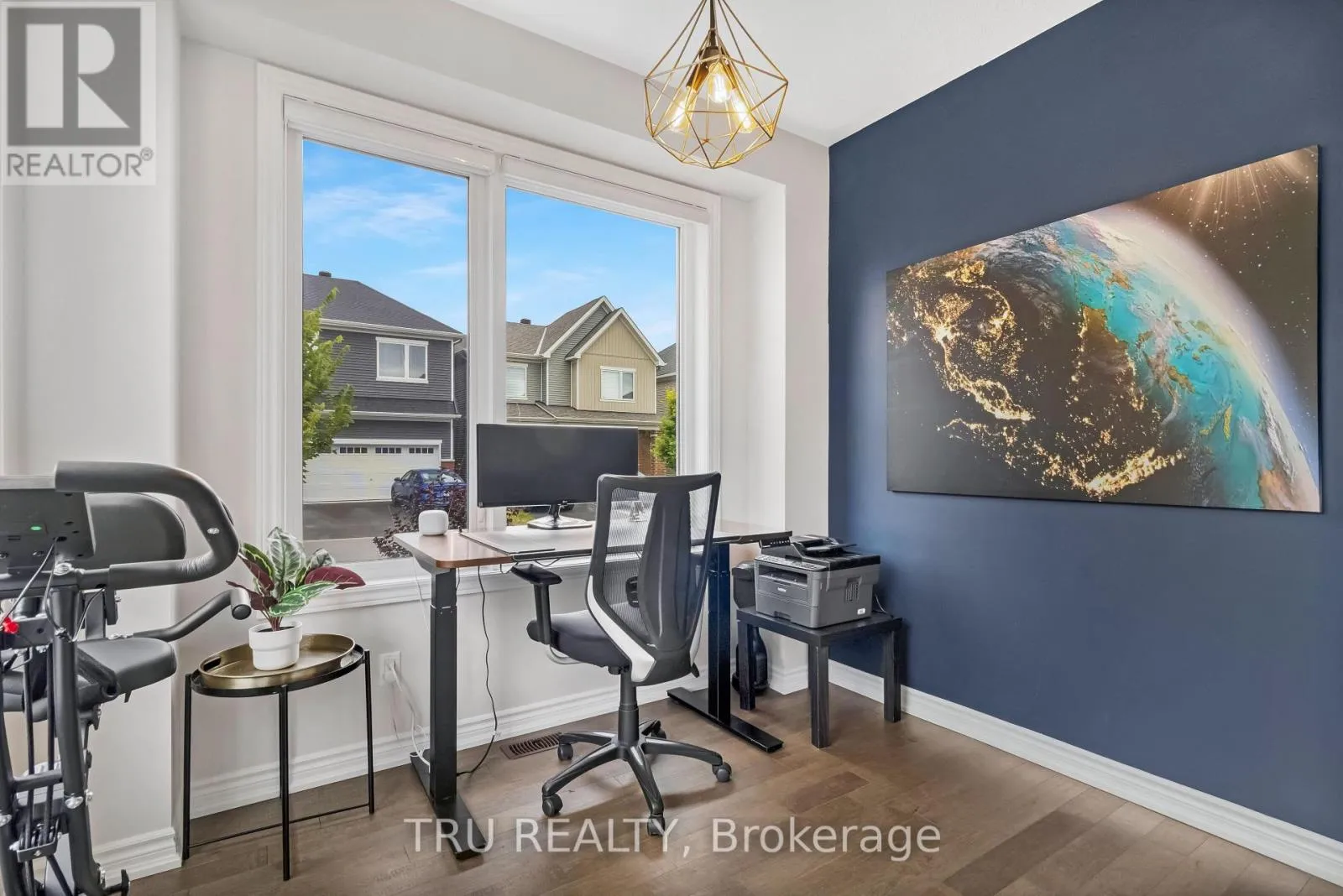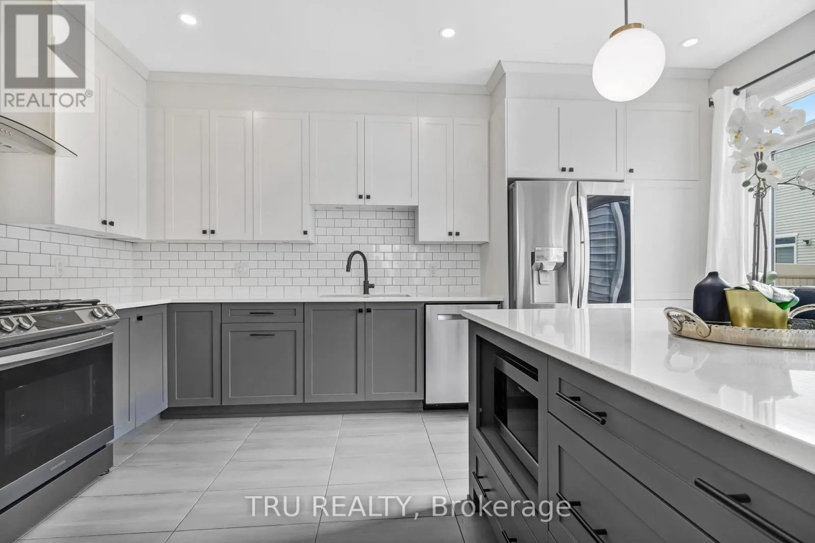 Cross Streets: Strandherd Dr to Chapman right onto Point Prim Cr left onto Coppermine St. ** Directions: From Strandherd Dr, turn right onto Chapman Mills, then right onto Point Prim Crescent and left onto Coppermine Street. Elegant 4 Beds detached home on a premium corner lot in the highly sought-after Conservancy community. Built in 2020, this beautiful residence showcases extensive builder and custom upgrades designed for comfort and style. The foyer with custom seating and accent wall leads to an open-concept living and dining area with upgraded hardwood flooring, pot lights, and upgraded Napoleon electric fireplace for a cozy experience. The kitchen features an upgraded chef's center layout with upgraded designer cabinets, upgraded quartz countertop, upgraded floor tiles, a matt black gooseneck faucet with double undermount sink, and upgraded Cyclone stainless steel chimney hood. The space is completed with High-end stainless steel appliances for both style and function. From here, step out to the custom-built deck and fully fenced backyard, ideal for gatherings. The main level also includes a powder room with updated accent and upgraded home office/den with custom glass door entry, accent wall, large windows and a modern light fixture, offering an elegant space for work or quiet focus. Upstairs, the bright spacious primary retreat offers an upgraded spa ensuite with quartz countertop and dual rectangular undermount sinks. Three additional generously sized bedrooms and a full bathroom complete the upper level. The lower level includes a recreation room with upgraded carpeting and a rough-in for additional bathroom. Additional builder upgrades include: Carpeting on the upper level and basement; blinds in the den, one bedroom and living room; a custom entryway bench; Pot lights and light fixtures in the kitchen and dining area; elongated toilets in all bathrooms. Over and above the builder's upgrades, the current owner has added fencing (2022), eavestroughing (2023), converted the upstairs loft into a 4th bedroom (2025), and installed a 240V outlet in the garage for EV charging. This move-in-ready home offers modern upgrades and abundant natural light in a desirable neighbourhood. (id:27476)