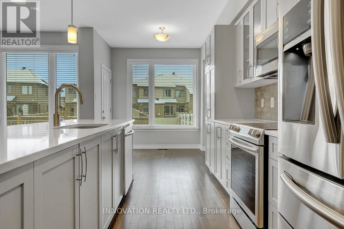 Cross Streets: Spratt Rd. ** Directions: From Spratt Rd to Cambie Rd, Right onto Ralph Hennessy Ave, Left onto Quartet Ave, Left onto Rowers Way. Beautifully upgraded end-unit townhouse offering over 2,200 sq. ft. of living space in the sought-after Riverside South community. Situated on a deep, east-facing lot, this home enjoys abundant afternoon sunlight and features a spacious backyard, along with a private single-car driveway.Located in a quiet, family-friendly neighbourhood close to parks, schools, shopping, and convenient access to the Vimy Memorial Bridge. The main level boasts 9-foot ceilings, maple hardwood flooring, smooth ceilings, and added pot lights throughout the main floor and basement. The upgraded kitchen features quartz countertops, enhanced cabinetry, a slide-in stove, and over-the-range microwave.A large ceramic-tiled foyer provides a welcoming entrance. The finished basement includes pot lights, conduit and a fireplace, offering additional functional living space. Additional highlights include an owned tankless hot water heater and central vacuum rough-in in the garage.The second level offers a bright loft area, convenient laundry, and three bedrooms with two bathrooms. The primary bedroom features a large walk-in closet and a five-piece ensuite. One of the bedrooms include a walk-in closet and Jack-and-Jill bathroom access.Freshly painted and professionally cleaned, this home is move-in ready for its next owner. (id:27476)