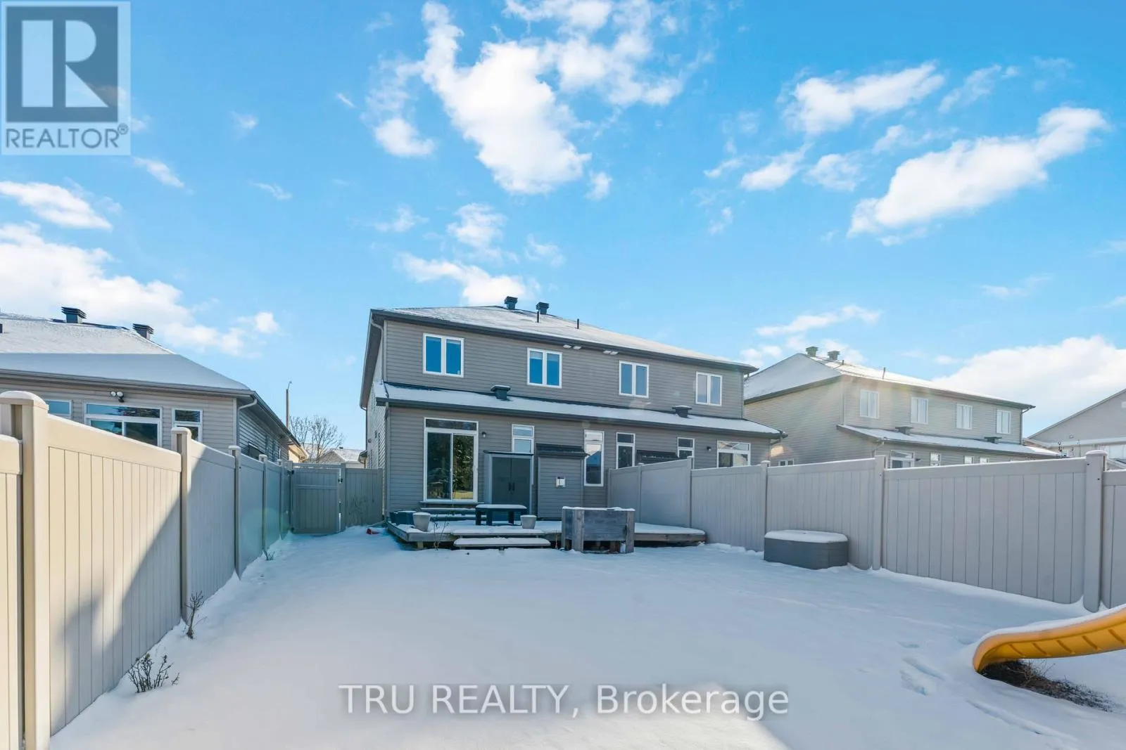 Strandherd Drive to Claridge Drive Welcome to this exceptional custom 4-bedroom, 3-bath semi-detached home with approximately 2,830 sqft of living space that truly feels like a single-family residence situated on a deep 30'x139' lot. Featuring 9-foot ceilings, a striking curved staircase, and a beautifully appointed Deslaurier kitchen with a spacious eat-in area and patio doors that lead to a large, fully fenced yard ideal with a massive patio.The bright and inviting family room offers abundant natural light and a cozy gas fireplace, while the separate dining area is perfect for entertaining. Upstairs, the generous primary suite includes a luxurious 4-piece ensuite and a walk-in closet, along with convenient upper-level laundry and three additional well-sized bedrooms.The finished basement boasts a massive rec room - plus a dedicated home gym space and ample storage room. Situated close to shopping, transit, and parks (id:27476)