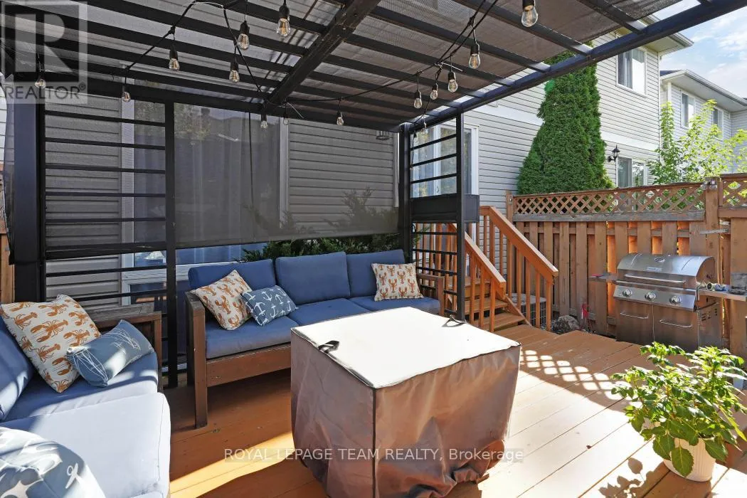 Cross Streets: Merivale Rd x Central Park Dr. ** Directions: Merivale Rd onto Central Park Dr, onto Scout St, onto Whitestone Dr, Grammercy Pk. BRAND NEW 2-STAGE FURNACE JUST INSTALLED-providing improved energy efficiency, quieter operation, stable temperatures, better air quality, and long-term peace of mind. This rarely offered 3-bedroom townhouse is located in one of Ottawa's most sought-after and centrally located neighborhoods - Central Park. The bright main floor features refinished hardwood floors, an open-concept living and dining area, and a functional kitchen ideal for everyday living. Upstairs, the primary suite offers double doors, a fully custom expanded walk-in closet, and a spa-like ensuite with a quartz vanity, free-standing tub, and custom rainforest shower, while the converted den serves as a unique additional bedroom with vaulted ceilings and tall windows. The fully finished basement includes a family room, a full bathroom with a shower, and plenty of organized storage. Outside, enjoy a fully fenced backyard with a deck and pergola (included). Upgrades include: roof (2017); added insulation (2017); ensuite renovation (2018); pergola (2018); storage refresh (2018); den conversion (2019); under-stairs storage (2019); full interior painting (2019); WiFi lighting system & smart thermostat (2019); hardwood refinished (2023); new washer (2023); owned hot water tank; and a brand new 2-stage furnace. Inquire today to book your showing! (id:27476)