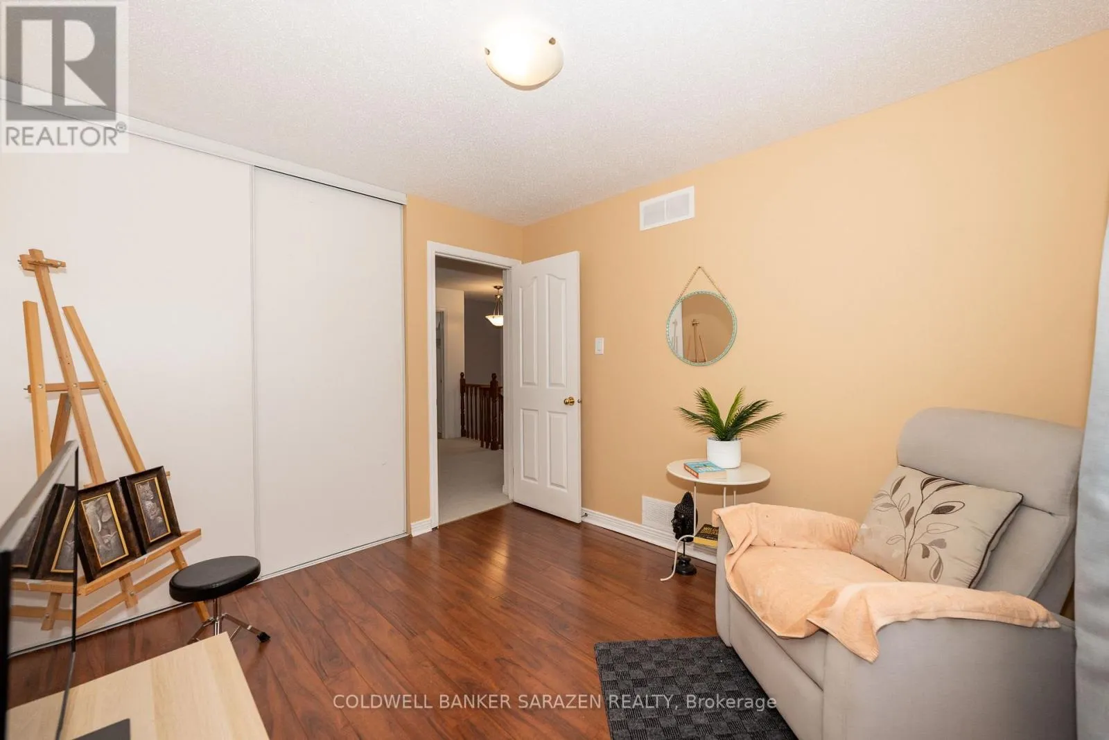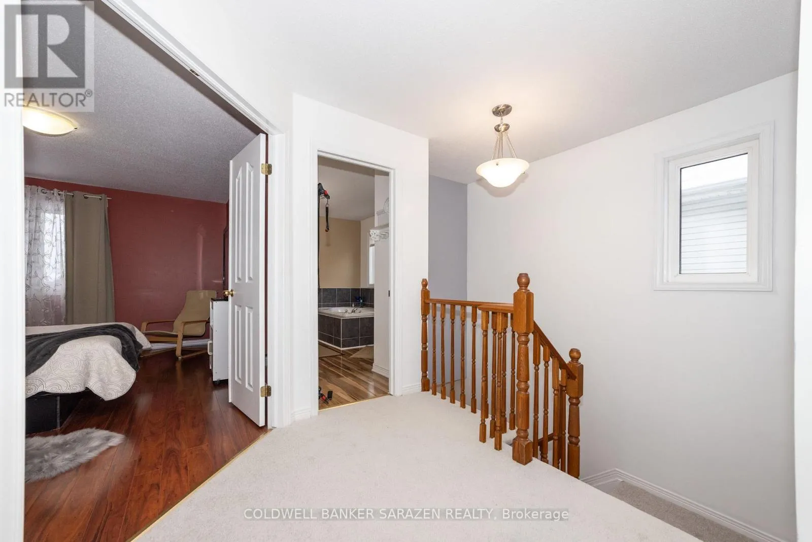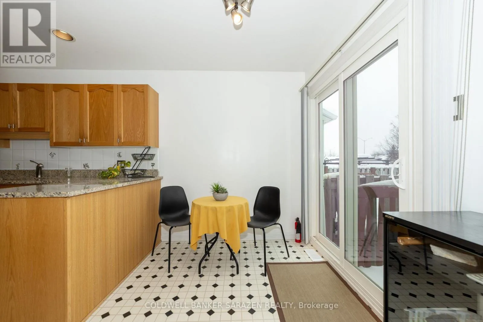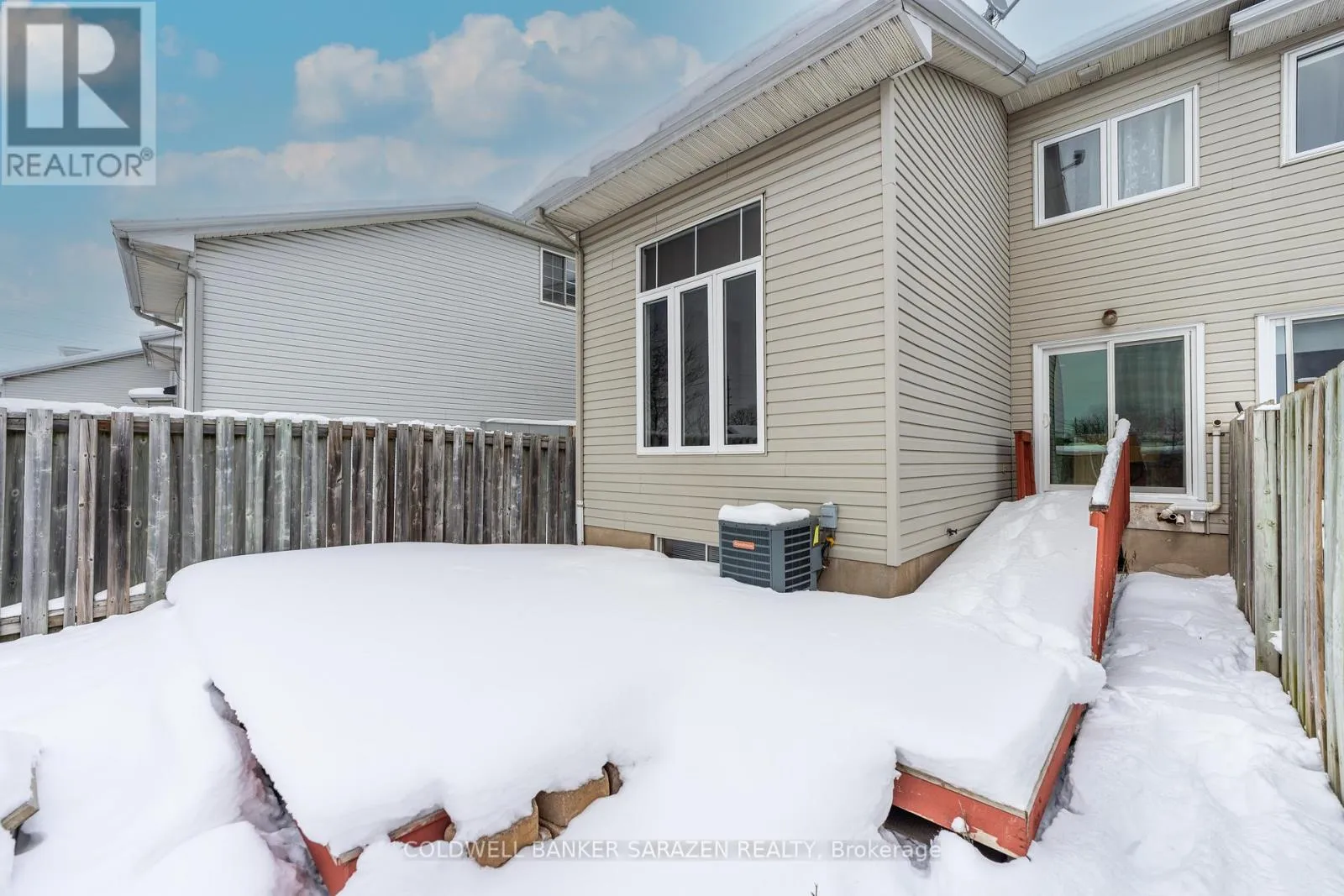 Cross Streets: Innes & Provence. ** Directions: Innes to Provence , right on Scala, right onto Markwick. Welcome to this well-maintained 3-bedroom, 2-bath end-unit home, ideally located close to shopping, restaurants, and public transit. Hardwood flooring on the main level complements the bright combined living and dining room, featuring vaulted ceilings that create an open and airy feel. The eat-in kitchen is equipped with granite countertops and stainless-steel appliances, offering both style and functionality. Upstairs, enjoy the comfort of new carpet on the stairs leading to 3 generously sized, carpet-free bedrooms. The main bathroom features a relaxing soaker tub and separate shower, perfect for unwinding at the end of the day. Additional highlights include a finished basement ideal for a family room, home office, or recreation space, a storage room with rough-in for a future bathroom, central vacuum ready, an attached garage with inside entry, and a private deck for outdoor enjoyment. A rare end unit offering space, comfort and an unbeatable location-this home is a must-see. Windows - 2020, Roof - 2015, Furnace /AC 2013-2014. (id:27476)