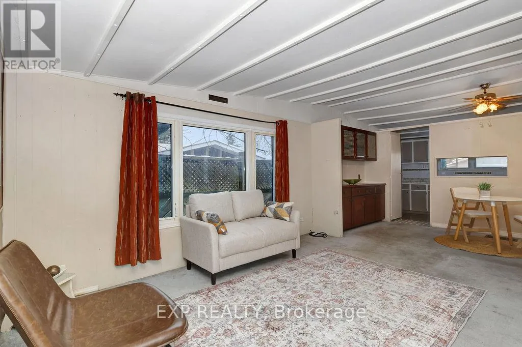 OFF ROBERTSON RD, VANIER, TAKE FIRST RIGHT, LEFT ON DELL Finally- an opportunity for affordable home ownership in Bellwood Estates. This mobile home on a land lease is in a convenient location to walk to transit and groceries. Property offers a private driveway, a good sized shed, and a welcoming porch. It is in need of updating, but offers a great footprint for a handy buyer. Original floorplan has two bedrooms (originally three- but two have been combined to create an office/laundry area) and has been enhanced with an addition, allowing for a large family room/flex space with a separate entrance. Property has a brand new natural gas furnace this year (family room/addition has supplemental electric baseboards). Monthly land lease of approximately $750/month plus taxes. Offers must be conditional on Park Approval for Buyer's Land Lease application. (id:27476)