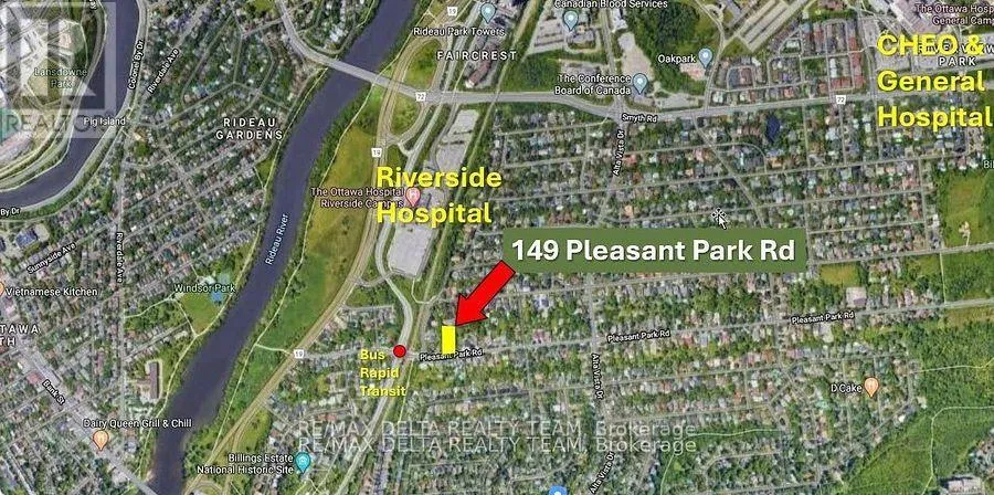From Alta Vista Drive at Pleasant Park Road, head west on Pleasant Park Rd for 400 meters towards Riverside Drive. Subject property with older small white house (#149) is on the right (north) side. Located in the highly desirable Faircrest Heights community of Alta Vista, this spacious 4-bedroom plus den home offers exceptional value and convenience. The property is available immediately for a one-year lease. Enjoy an ideal central location just steps from Pleasant Park Station, with easy access to downtown, Ottawa hospitals, and the University of Ottawa. The home backs directly onto John Murphy Park, providing green space and a playground right next door, and is only minutes from the Rideau River bike and walking paths. With a bright, open layout and plenty of natural light, this home is well-suited for families or professionals seeking comfort and accessibility in one of Ottawa's most sought-after neighbourhoods. (id:27476)