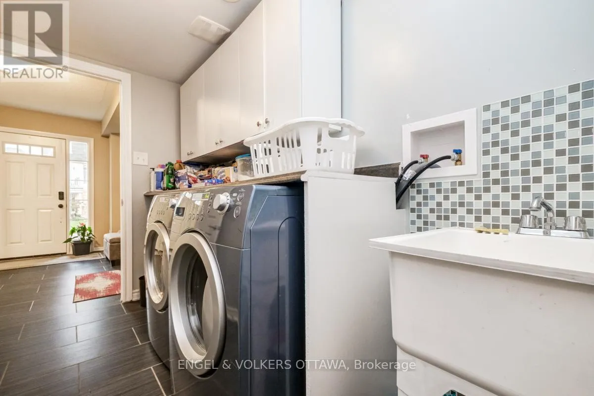 Cross Streets: Blue Aster Street. ** Directions: South on Borrisokane Road, Left on Cambrian Road, Right on Grand Canal Street, Right on Nutgrove Avenue, Right on Baynes Sound Way. Beautifully maintained townhome located in the desirable Half Moon Bay community. Ideally situated close to shopping, public transit, Highway 416, and everyday amenities. The open-concept living and dining area is anchored by a spacious kitchen featuring ample cabinetry, and a generous breakfast bar-perfect for everyday living and entertaining. A conveniently located powder room completes this level. Gleaming hardwood flooring enhances the second level throughout. Step out from the dining area onto a large deck, ideal for BBQs and outdoor gatherings. The third level offers a well-appointed primary bedroom with a large walk-in closet and cheater access to the main bathroom. The second bedroom provides flexible space for guests, family, or additional work-from-home needs, while the loft area serves as an ideal office nook. Additional highlights include main-floor laundry, a welcoming foyer with direct garage access, and parking for up to three vehicles. A fantastic opportunity-don't miss out! (id:27476)
