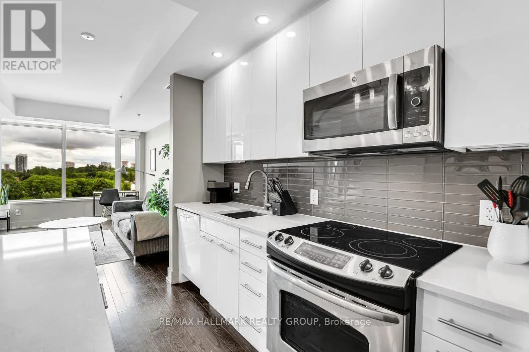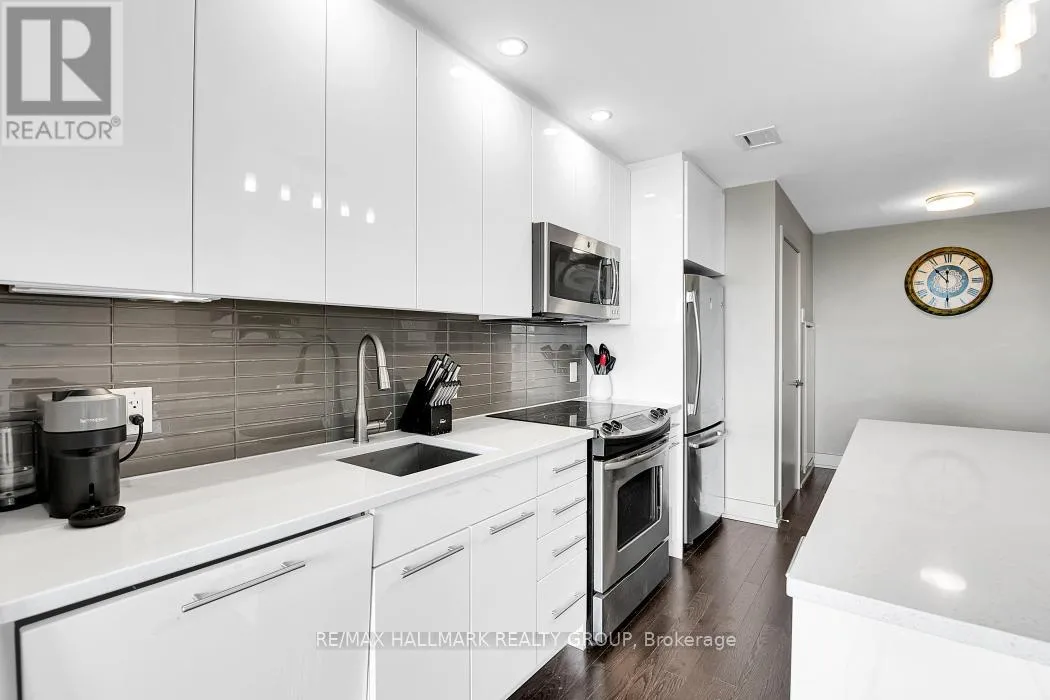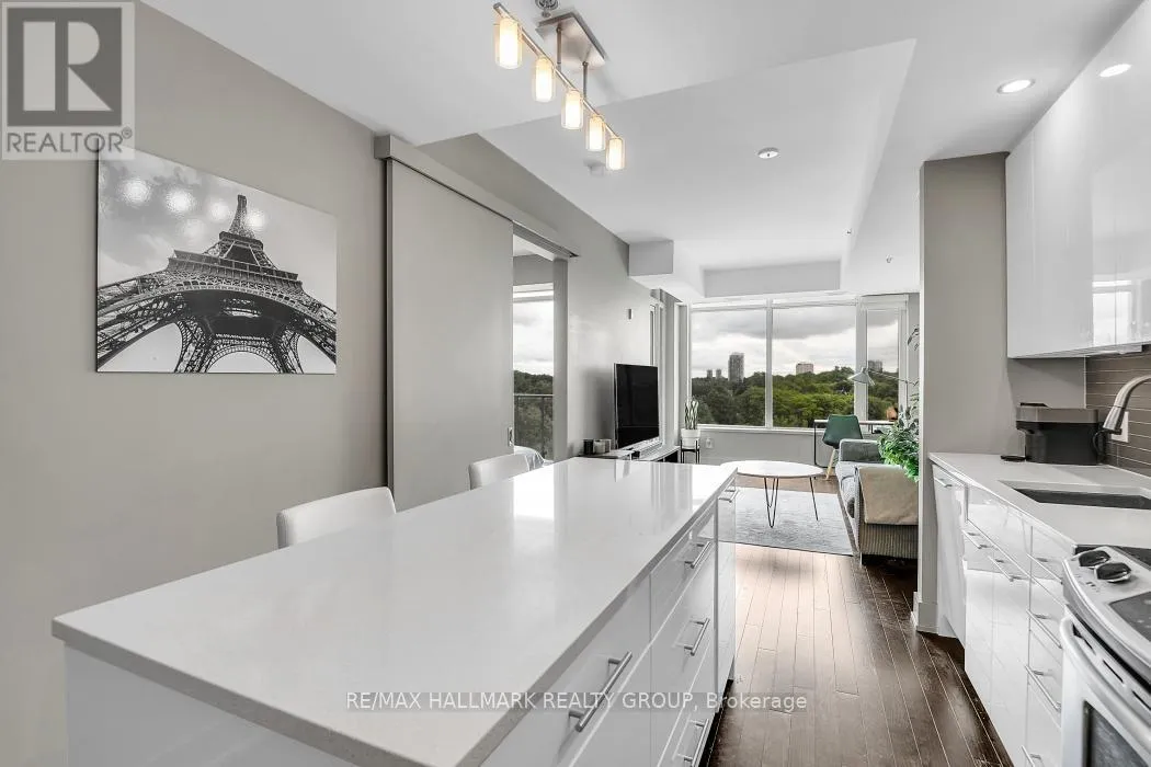 Richmond Rd & Island Park Dr. YOU'LL FALL IN LOVE THE MOMENT YOU STEP INSIDE THIS SUN-FILLED 8th-FLOOR SUB-PENTHOUSE AT QWest, OFFERING 1 BEDROOM, 1.5 BATHS, AND REFINED LIVING IN ONE OF WESTBORO'S MOST SOUGHT-AFTER ADDRESSES. Spectacular south-facing views soar above the historic Abbey, flooding the space with natural light and creating a truly uplifting atmosphere. Thoughtfully upgraded with over $12K in enhancements, including custom closet systems, elegant window coverings, and a full bathtub in place of the standard shower, this residence blends comfort with sophistication. The open-concept layout flows seamlessly from a sleek designer kitchen with quartz countertops and stainless steel appliances to living and dining areas with gleaming hardwood floors throughout. A rare powder room for guests complements the private ensuite bath, setting this floorplan apart. Exceptional building amenities rival luxury resorts: rooftop terraces with 360 views, BBQs and lounges, a fully equipped gym, theatre room, and stylish party space. Complete with underground parking and storage locker, this home offers unmatched convenience. Step outside into the vibrant energy of Westboro and Hintonburg, where shops, cafes, and restaurants await. With world-class amenities, thoughtful upgrades, and an unbeatable location, this is urban living at its finest. Tenant Occupied on a month to month basis, 24hrs Irrevocable and Schedule B on all offers. (id:27476)