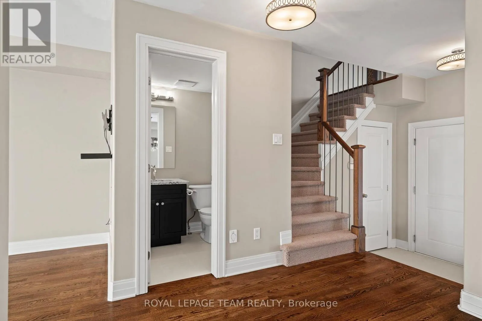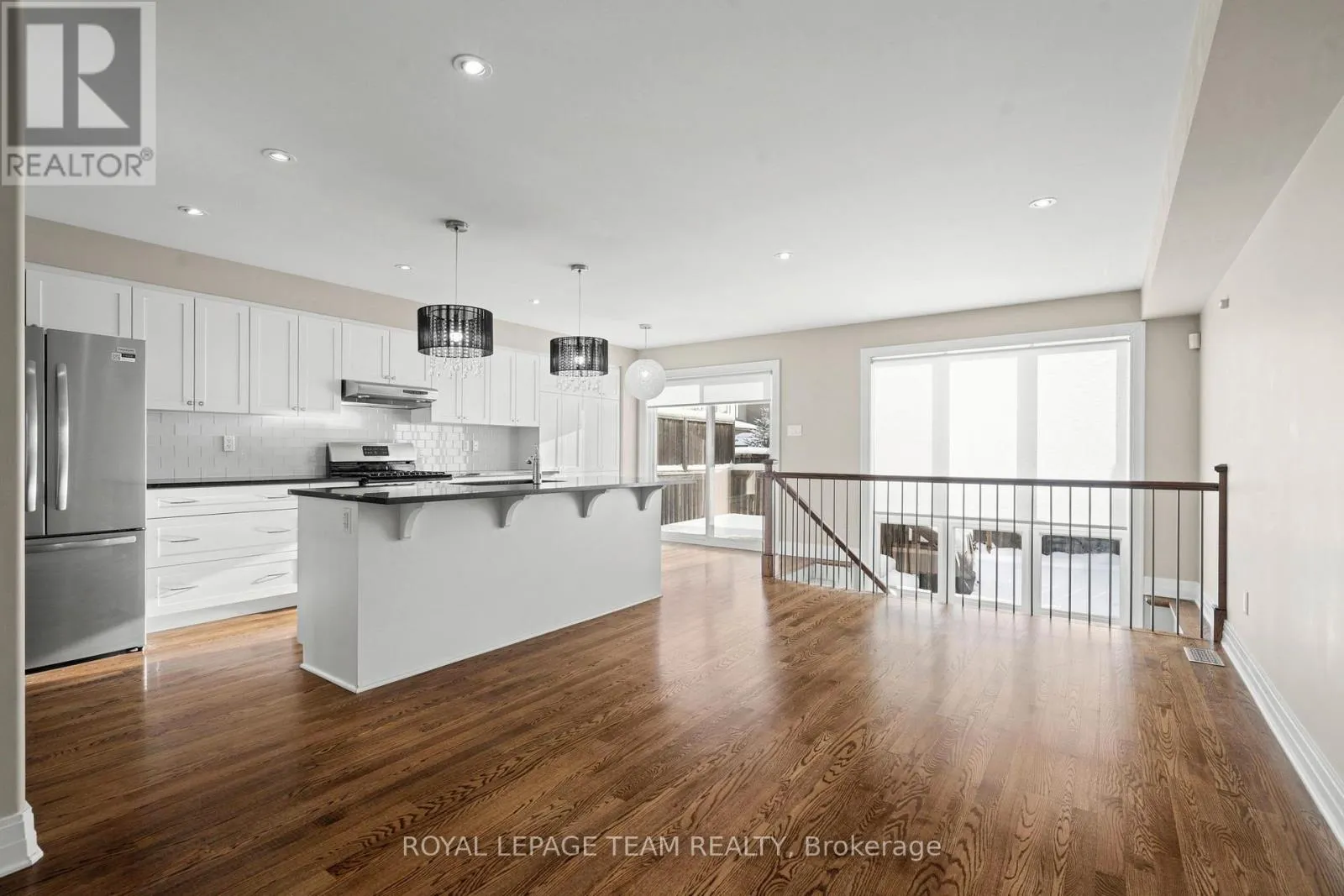 Cross Streets: West Ridge Drive & Abbott Street West. ** Directions: Take Hazeldean Road to West Ridge Drive. Turn left onto West Ridge Dr and then right onto Woodhurst Cres. Property is on the left. This well-cared-for 3-bedroom end-unit townhome offers over 1,500 sq. ft. of comfortable, functional living space on a quiet, desirable street in Stittsville with no front neighbours.Hardwood floors run throughout the main level, complemented by an open layout that feels bright and welcoming. The kitchen is both practical and polished, featuring stainless steel appliances, granite countertops, a breakfast bar, and an eat-in area that opens directly to the fully fenced backyard.Upstairs, the spacious family room with cathedral ceilings and a gas fireplace creates a cozy yet versatile space. The primary bedroom includes a walk-in closet and 4 piece ensuite, with two additional bedrooms offering flexibility for family, guests, or office space. Granite countertops are featured in all bathrooms.The finished basement provides extra living space along with a fourth bathroom, making it ideal for additional living space, a guest area, or home gym. This is a thoughtfully designed end-unit townhome in a sought-after Stittsville location, offering space, privacy, and move-in-ready comfort. (id:27476)