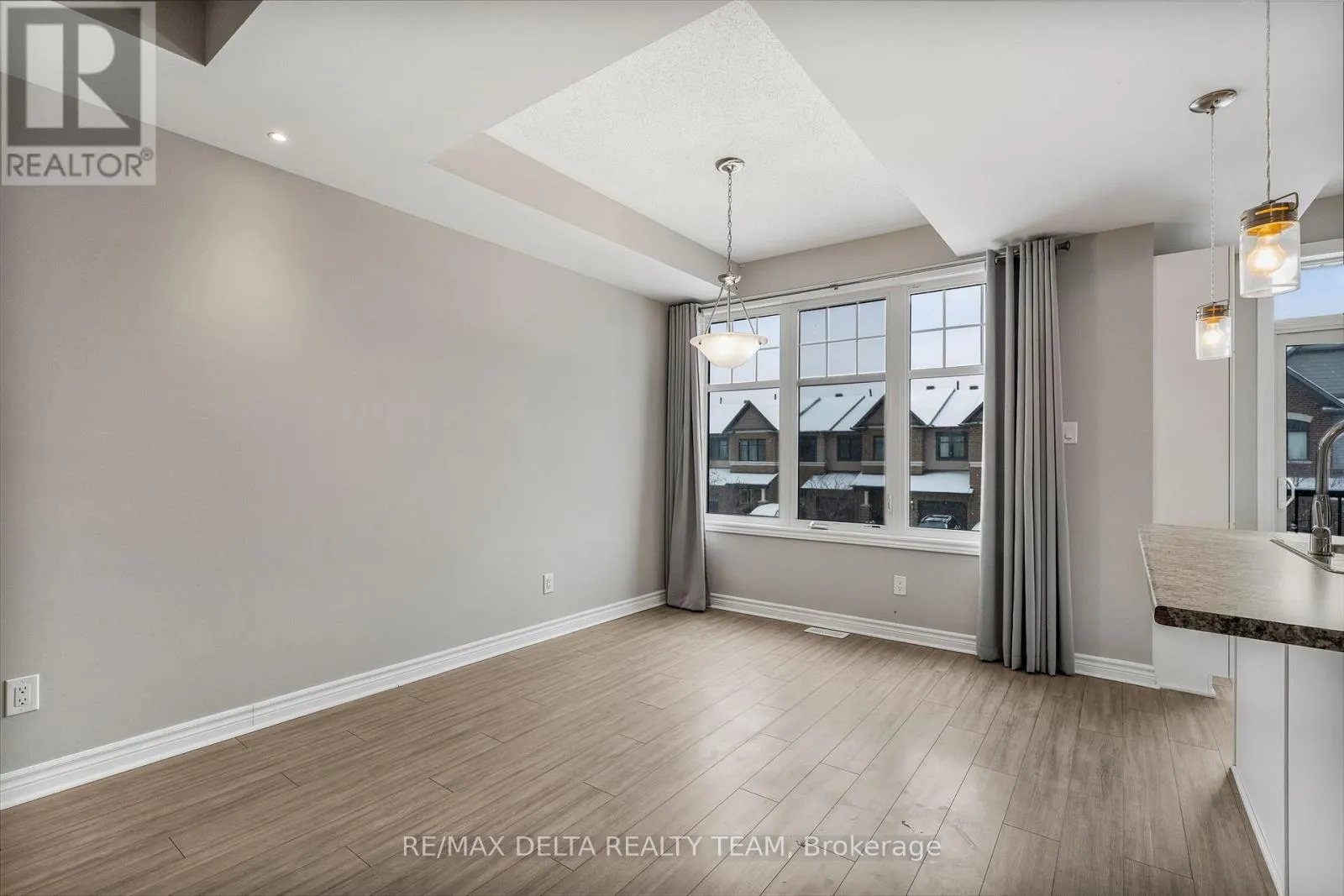 Huntmar Drive to Paine Ave, right onto Brettonwood Ridge, right onto Fallengale Crescent. Bright and modern 2-bedroom, 2-bathroom home featuring a spacious entryway and an open-concept second level ideal for entertaining. Quality laminate flooring and pot lighting throughout the main living areas. Inviting kitchen with direct access to a private front balcony perfect for morning coffee or evening relaxation. The upper level includes two ample-sized bedrooms, including a primary bedroom with a walk-in closet, and a main bathroom with tile flooring. Central air conditioning and automatic garage door opener. Parking for up to 3 vehicles. Conveniently located near Hwy 417, Tanger Outlets, schools, public transit, and the Canadian Tire Centre. (id:27476)