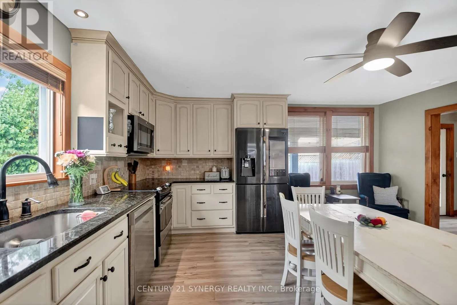 Cross Streets: Fortune and Burke. ** Directions: Perth Street turn south on Fortune Street. Turn right on Burke Street then turn left on Queen Charlotte. 103 Queen Charlotte will be on the right. Welcome to 103 Queen Charlotte! This one-of-a-kind four bedroom home is modernized and blends the comfort of country living with the amenities and conveniences of city living. The updated kitchen features granite counters and a generous dining area that can host all your family gatherings, and a wood stove for chilly nights. Recent updates include a powder room refresh, built-in storage, permanent exterior lighting, and new eaves trough that include a lifetime warranty. Enjoy summer days in your backyard oasis featuring a heated inground pool (2023/24), professional landscaping, and a custom gazebo. Convenient inclusions like appliances, porch swing, and gazebo fixtures mean you can move right in and enjoy. Close to schools, parks, and community amenities, this home is truly designed for family living! Recent updates include: Gazebo 2019, Leaf Filter Eaves Trough with lifetime Guarantee 2024, Celebrite Permanent Lighting 2024, Inground Pool with Heater 2024, Professional Landscaping 2024, Built in Storage in Living Room 2024, Powder Bath and Vanity 2023 (id:27476)