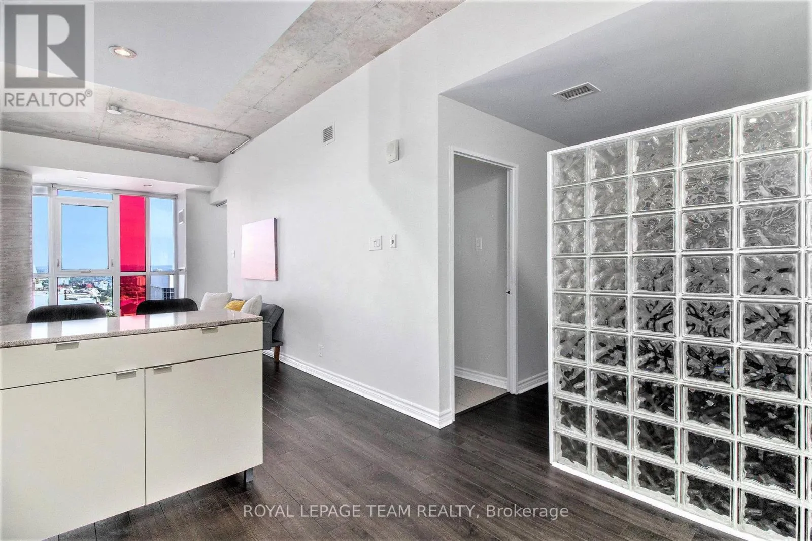 Bank and Laurier Welcome to The Mondrian by Urban Capital, where elevated downtown living meets unbeatable views. This 22nd-floor one-bedroomplus den unit offers breathtaking panoramic vistas of the Ottawa River and downtown skyline through floor-to-ceiling windows andsoaring 10-foot exposed concrete ceilings. The open-concept layout is ideal for modern living, featuring a sleek kitchen with granitecountertops, stainless steel appliances, and generous living and dining areas perfect for entertaining or working from home. Thespacious bedroom includes wall-to-wall closets and captivating city views, while the den provides a flexible space for a home office orguest area. Enjoy the convenience of in-unit laundry and access to premium building amenities, including a concierge, three high-speedelevators, a fully equipped fitness centre, an outdoor rooftop terrace with BBQs, a plunge pool with cabanas, and a stylish party roomcomplete with lounge seating, a billiards table, dining area, and wet bar. Located just steps from the Parliament LRT station, Ottawa U,Rideau Centre, Shoppers Drug Mart, grocery stores, the National Arts Centre, Parliament Hill, and an endless selection of restaurantsand cafes, this is urban living at its finest. Dont miss your chance to own a premium unit in one of Ottawas most iconic condo buildings. (id:27476)