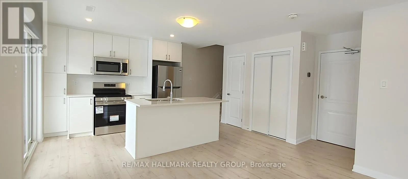 Cross Streets: Campeau Dr. and Feedmill Private. ** Directions: Terry Fox, west on Campeau Drive to Feedmill Private to Arcadian Private. Brand new 2 story stacked townhome in Kanata's newest Arcadian Village with underground parking. Bright, fresh and clean 2nd floor unit overlooking the park, facing west. Balcony off kitchen overlooking the park, engineered hardwood flooring throughout both levels. Quartz countertops in both bathrooms and kitchen. Kitchen has plenty of cabinets, gorgeous tile backsplash. new stainless steel appliances, quartz counters, and kitchen island with breakfast bar. Pot lights throughout open concept living area. Powder room access to storage/utility closet. Handy in unit 2nd floor, laundry. Quick access to Campeau Drive, Tanger Outlet shops close by. Underground parking. Tenant is responsible for rental contracts for furnace/A/C/hot water tankless system and utilities (heat, lights, water/sewer). Blinds will be installed on all windows, shortly. (id:27476)