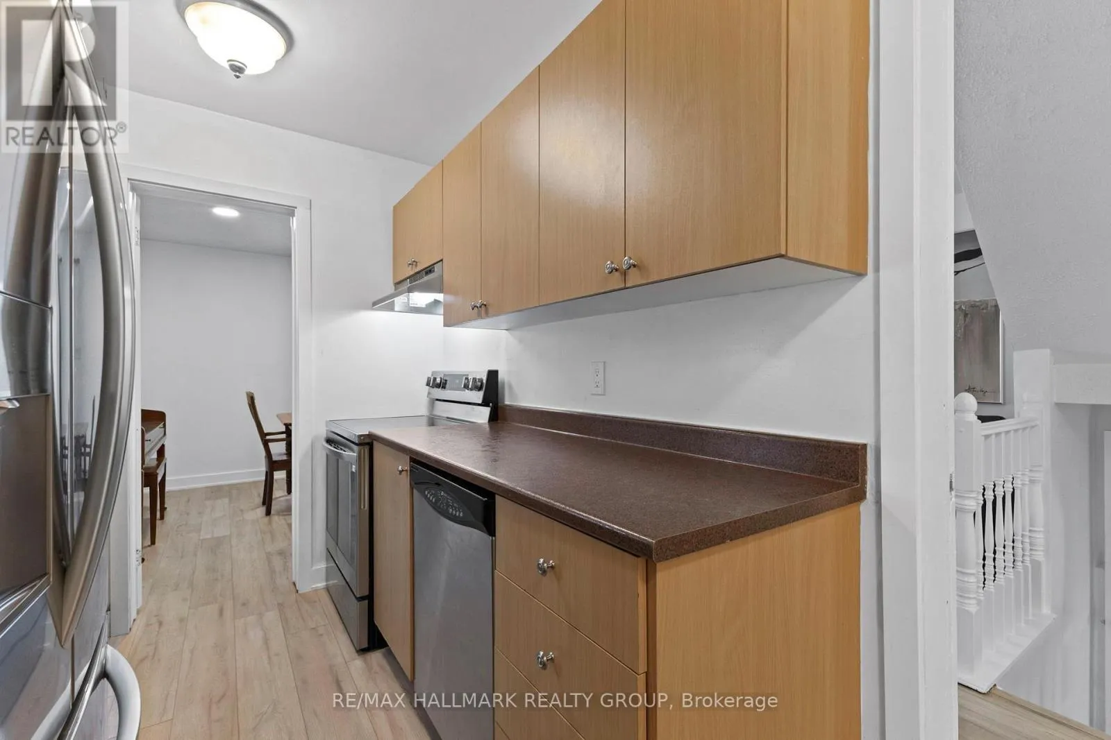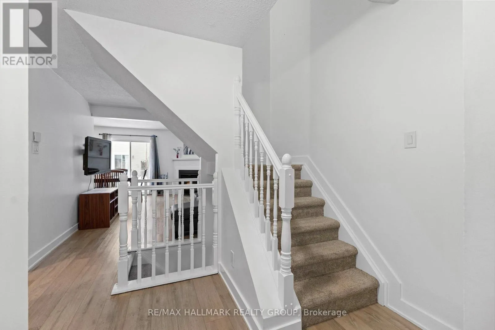 Cross Streets: Charlemagne & Tenth Line. ** Directions: Tenth Line Road to Canotia Place. Located in the family-friendly community of Fallingbrook, this well-maintained 3 bedroom, 3 bathroom end-unit condo townhouse offers a spacious and functional layout ideal for first-time buyers, investors, singles, or families. Set on a quiet street directly across from a community park, the home features a welcoming front hallway with inside access to the garage, leading into bright living and dining areas with a cozy wood-burning fireplace and patio doors opening to a private yard. The kitchen offers ample counter and cabinet space with a flexible area for a table or additional storage, while a convenient 2-piece bathroom completes the main level. New carpeting covers the staircase to the second floor, where the oversized primary bedroom includes a large walk-in closet and private ensuite, alongside two additional generously sized bedrooms and a full 4-piece family bathroom. The partially finished basement provides versatile extra living space, complemented by easy-care new laminate flooring on the main and lower levels, an EV charger installed in the garage, and a prime location just minutes from the Ray Friel Recreation Centre with NHL-sized rinks, fitness programs, and a wave pool. (id:27476)