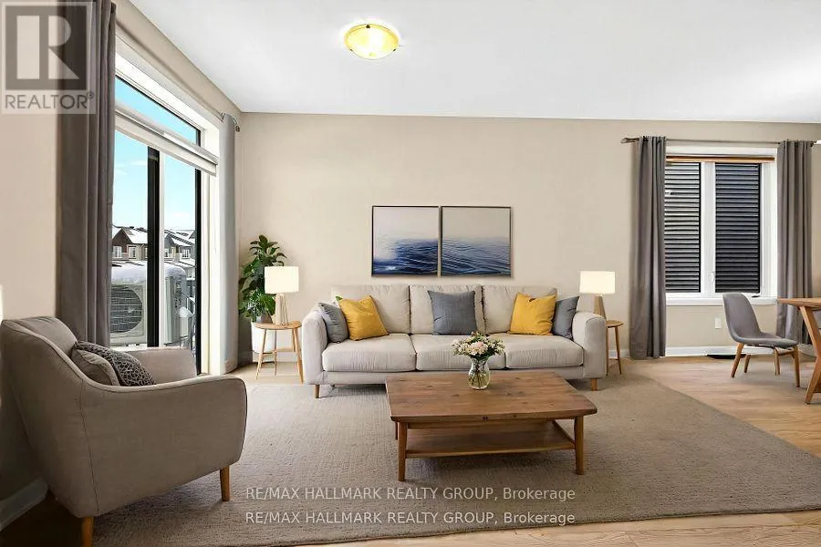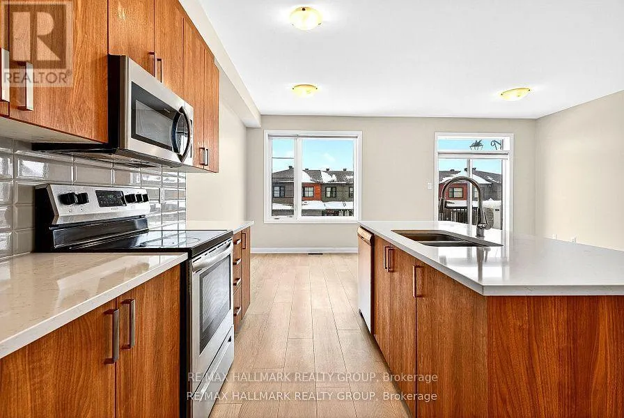 416 heading South, exit at Fallowfield and turn right then left onto Moodie drive, left on Barnsdale Rd, Left on Inver Lane, right on Capamore, left on Lynn Coulter, right on Raheem Court and house is on the left. OPEN HOUSE JANUARY 4TH SUNDAY 2-4PM! Discover modern, low-maintenance living in this stylish, move-in-ready 3-bedroom end-unit townhome, freshly painted and nestled in Barrhaven's vibrant Half Moon Bay community. Ideal for young professionals, couples, or small families, the bright open-concept design features a welcoming foyer with in-unit laundry and storage on the main level, a sun-drenched kitchen with a sleek island, quartz counter tops, plenty of cabinetry & SS appliances.Spacious living and dining areas, a handy balcony for morning coffee, and a powder room on the second floor. The upper level offers three versatile bedrooms-perfect for a home office or guest space-including a primary suite with a walk-in closet, plus a full bath. As an end unit, it maximizes natural light, privacy, and curb appeal, all while being steps from lush parks, playgrounds, scenic nature trails along the Jock River, top-rated schools, trendy shops, dining options, and recreation facilities for an effortless urban lifestyle (id:27476)