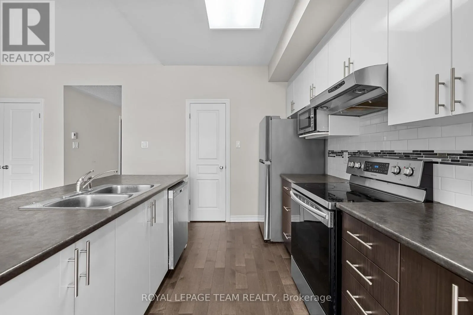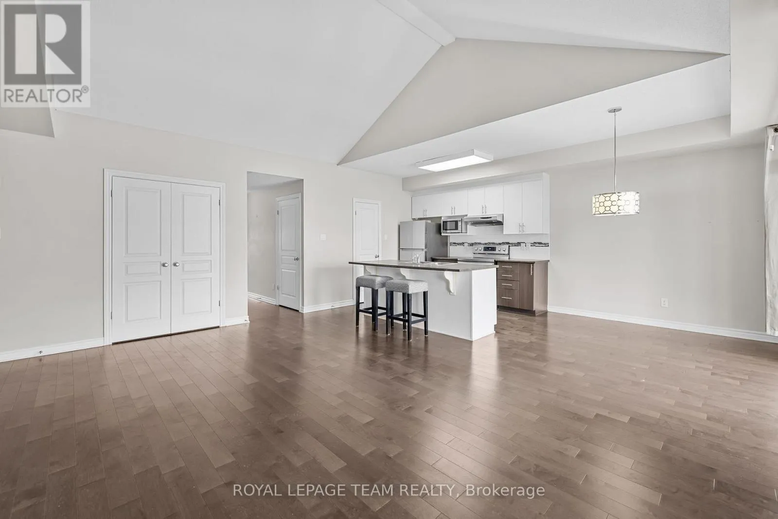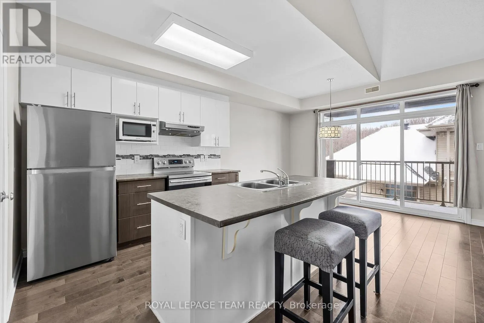 Heading East on Earl Armstrong Road, turn left onto Canyon Walk Drive, then left onto Beryl Private. Keep left on Beryl Private and the property will be on your right. Welcome to this beautiful UPPER UNIT 2 bedroom, 2 bathroom condo located in the family-friendly community of Riverside South! Walking distance to future LRT station! Step inside to a bright, inviting foyer that opens to a spacious living area with vaulted ceilings - a unique feature of this upper-level unit. Hardwood floors flow throughout the main living space, creating a warm and modern feel.The kitchen features a cozy breakfast area, walk-in pantry, premium stainless steel appliances, and direct access to a large, covered balcony - perfect for relaxing or entertaining outdoors. Both bedrooms are generously sized with great closet space. The primary suite includes a 3-piece ensuite with a glass step-in shower, while the second full bathroom offers a deep soaking tub.Enjoy convenience at your doorstep - just minutes to parks, schools, shopping, and the Earl Armstrong Bridge for quick access to Barrhaven.1 outdoor parking included (#12D) in rental price with tons of visitor parking in the complex! WATER IS INCLUDED IN RENT! (id:27476)