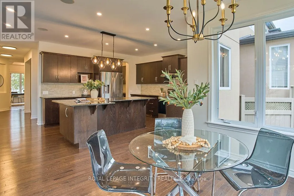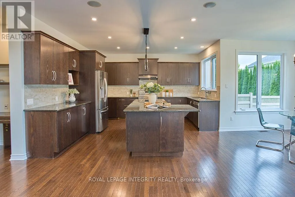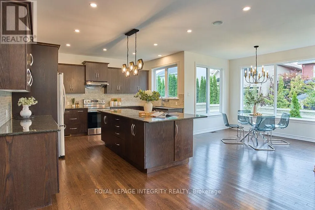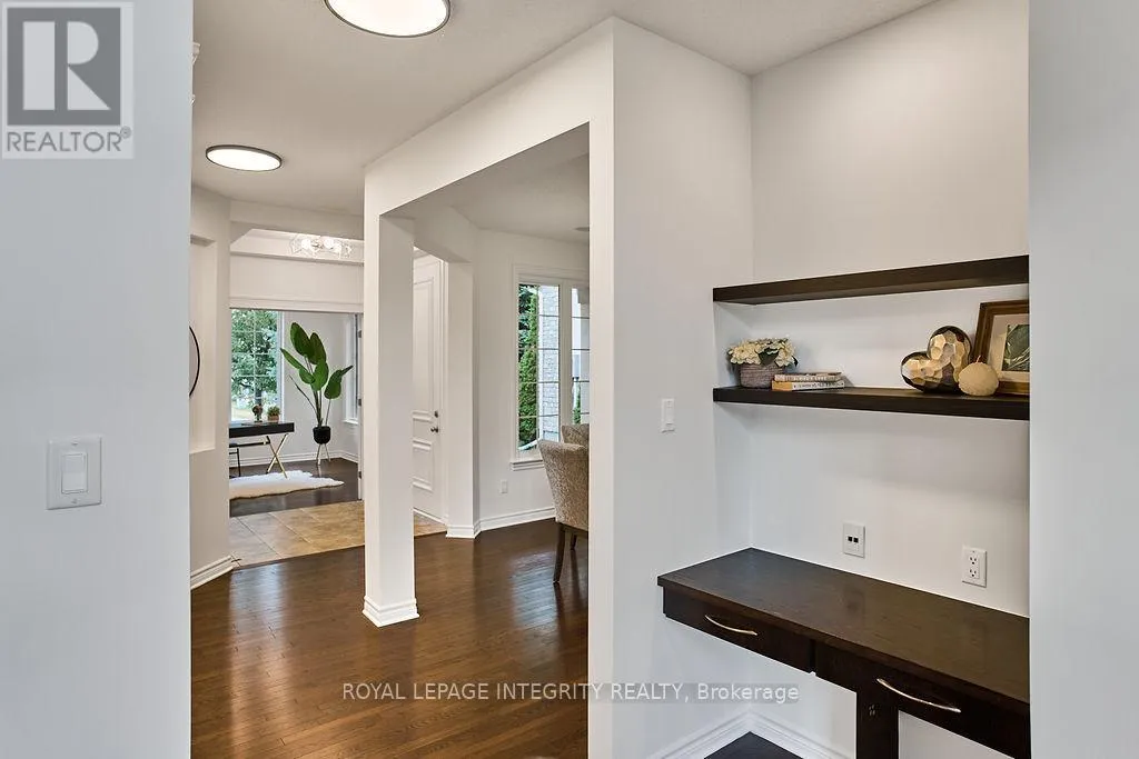 417 West to Terry Fox North, turn right Kanata Avenue, straight through traffic circle, turn left onto Goulbourn Forced Rd, straight through traffic circle, left on Keyrock Avenue, 1st right onto Nettleship Court. Nestled on the prestigious Kanata Estate! This Cardel custom-built luxury beauty sits on an exclusive private street, boasts about 4000 sqft living space with 4+1 spacious bdrms & 4 baths, with expensive EIFS exterior (Exterior Insulation & Finish System), all wrapped up in an irresistible package. Step in and be greeted by the rich solid hardwood flooring that flows seamlessly throughout the main and second levels. The grand hardwood staircase is a statement piece, the living room is an absolute showstopper with its soaring cathedral ceiling and massive two-story south facing windows that flood the space with splendid natural light, cozy up by a tall gas fireplace. The modern kitchen features SS appliances, luxury granite counters and a huge island that adds a touch of elegance. The butler's pantry is perfect for storing gourmet goodies. Other features: the main floor office/den, over-sized garage with extra storage space, a large mudroom off the garage with walk in closet; it is also equipped with smart wiring home automation and an audio system. The primary suite is truly a retreat, boasting two walk-in closets, the ensuite complete with dual vanities and brand new quartz contertops, a custom glass shower, and a deep soaking tub.The other 3 bedrooms share a large updated main bath. The fully finished lower level is an entertainer's dream, featuring high-end laminate flooring, a large full bathroom, a charming bedroom with stylish barn doors, a spacious recreation room ideal for family fun, and even a dedicated gym or hobby room. The location is unbeatable! Walk your kids to the highly-rated St. Gabriel Elementary and All Saints HS, within a top-tier school district!!! Shopping, recreation, and even high-tech employment opportunities are all conveniently close by. Just steps away from the serene walking trails Beaver Pond. Get ready to enjoy this perfect blend of luxury, convenience and tranquility in Kanata Lakes. (id:27476)