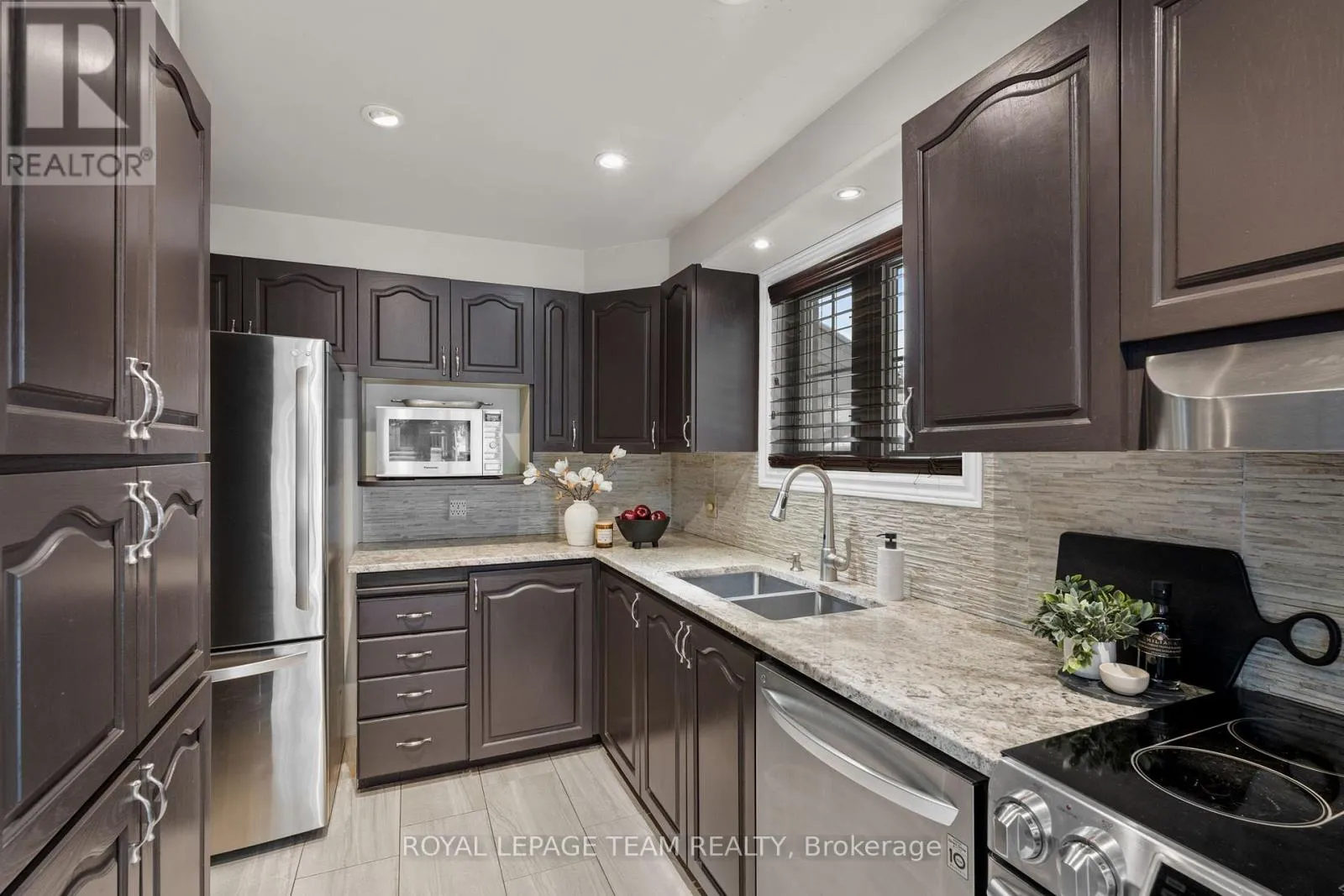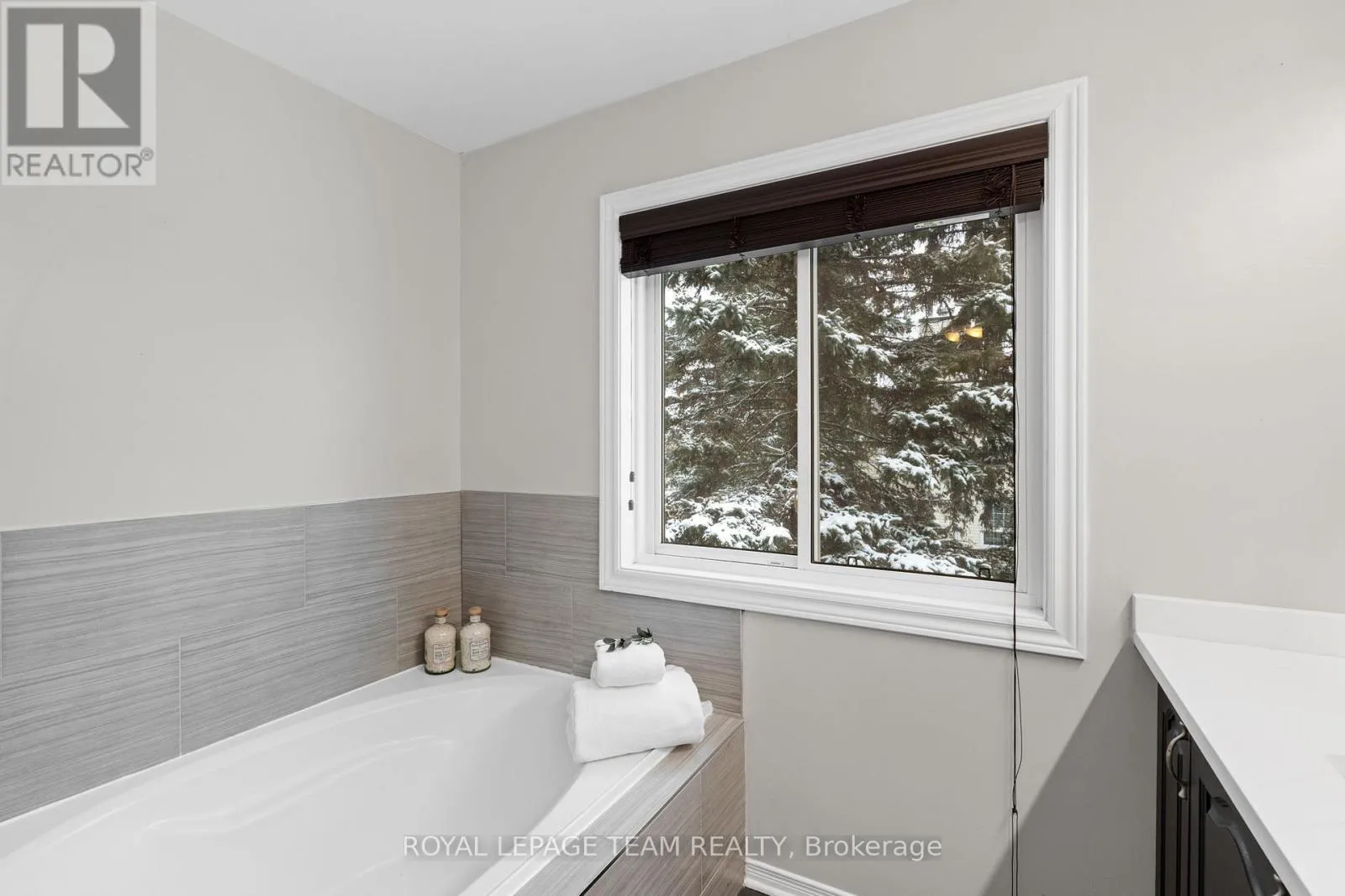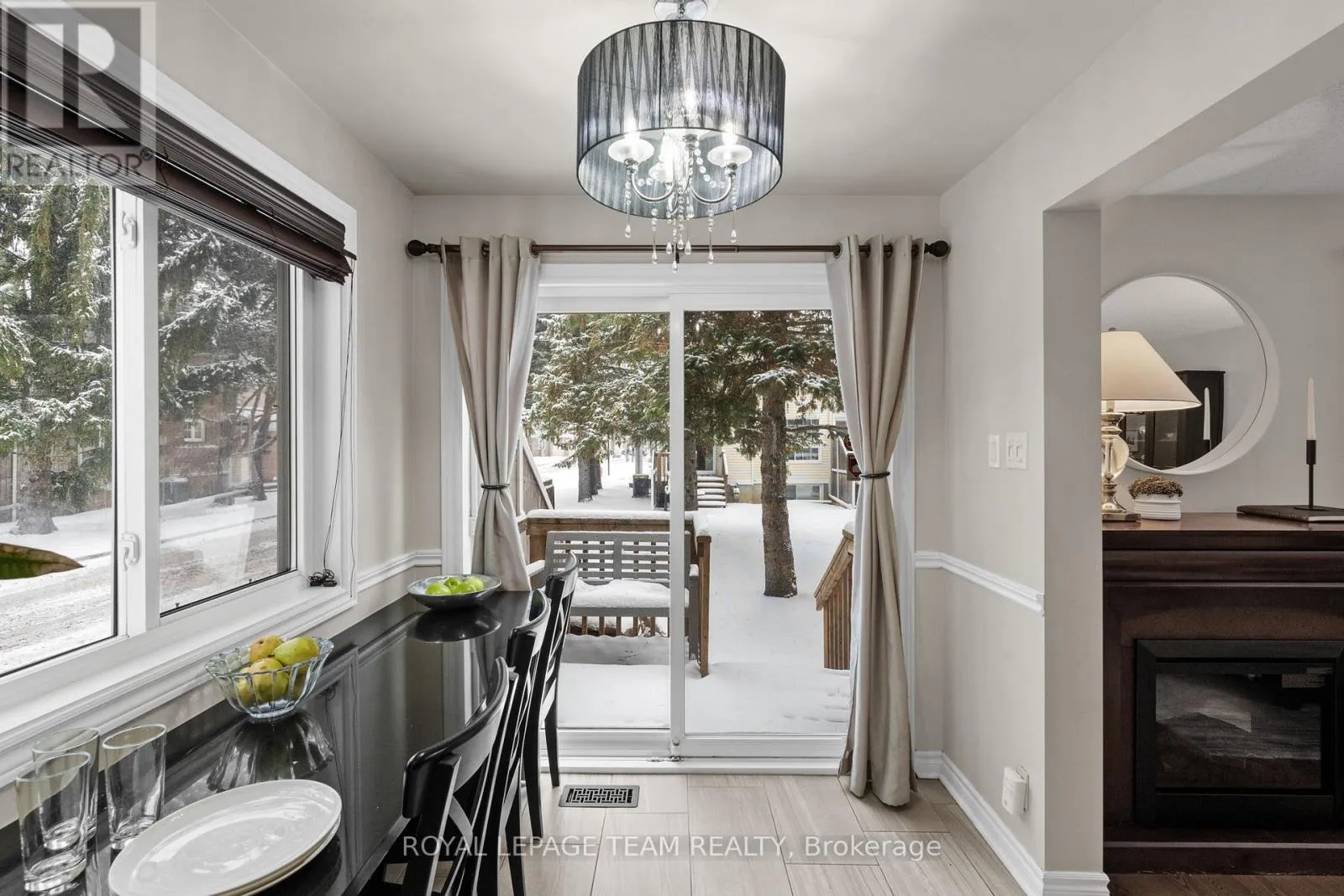 Cross Streets: Centrepointe and Baseline. ** Directions: Centrepointe Dr. to StoneBriar, then right on Sandcliffe. OPEN HOUSE - Sunday, January 11th 2:00-4:00PM. Welcome to this beautifully updated end-unit condo townhouse in the highly sought-after Centrepointe neighbourhood. Surrounded by mature trees, this bright and private home offers a peaceful setting with added natural light-an ideal retreat at the end of the day. The spacious layout features four bedrooms, including three on the upper level and a full bedroom on the main floor, perfect for guests, a home office, or multigenerational living. The oversized primary bedroom offers a comfortable retreat with plenty of space to unwind. Hardwood flooring flows throughout, creating warmth and continuity, while the updated kitchen offers a functional layout with a convenient breakfast bar-ideal for casual meals, homework, or morning coffee. Renovated upstairs bathrooms add modern comfort and style, enhancing the home's turnkey appeal. Enjoy cozy evenings by the electric fireplace in the living room or the wood-burning fireplace in the basement, offering warmth and versatility year-round. Thoughtfully updated and beautifully maintained, this calm and welcoming home allows you to simply unpack and enjoy. Ideally located just steps from Centrepointe Park, the library, transit, and close to shopping, schools, and recreation. Be sure to watch the video attached to this listing! (id:27476)