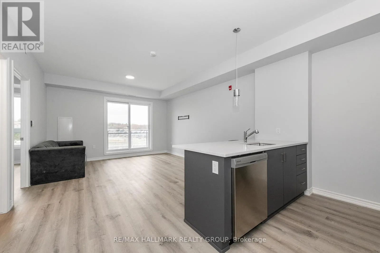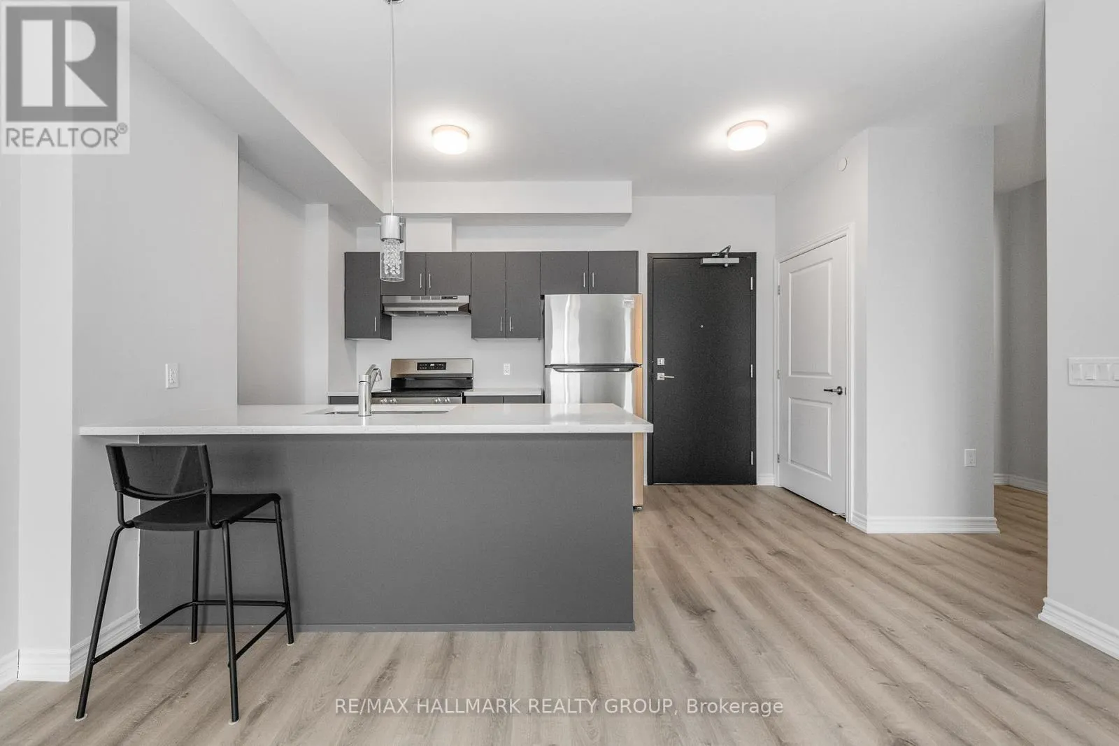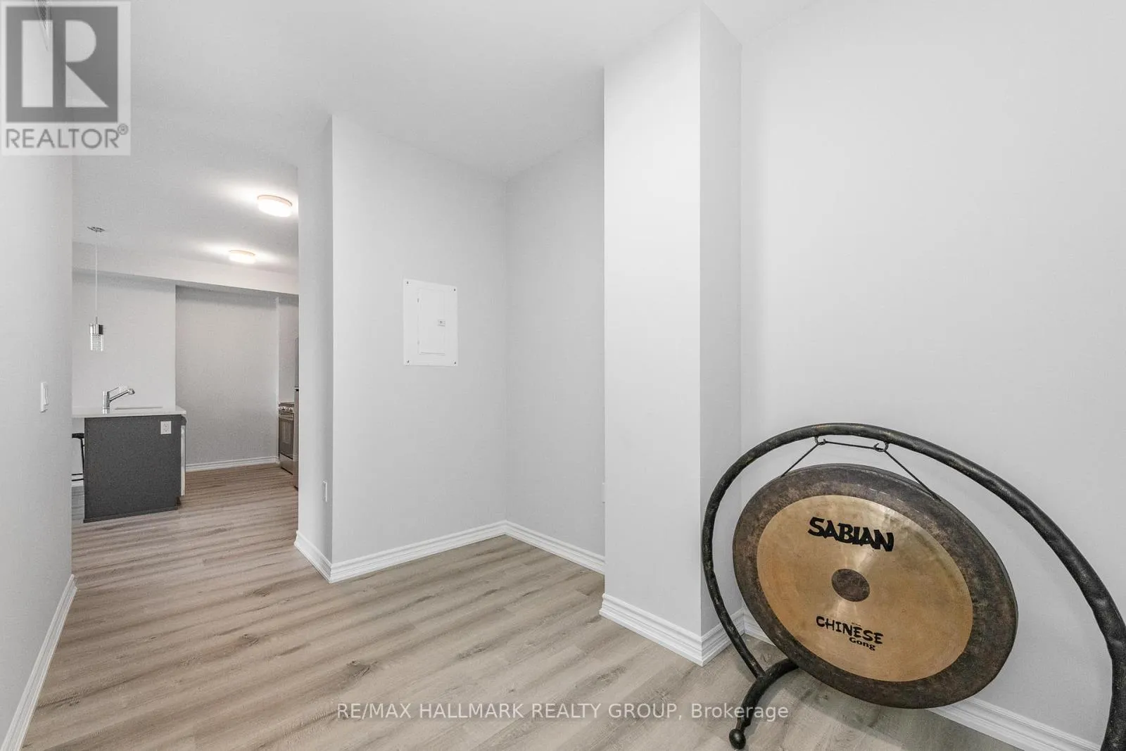 Cross Streets: Montreal Rd and Codd's Rd. ** Directions: Montreal Rd to Codd's, right on Hemlock. This beautiful, sun-filled one-bedroom plus den, one-bathroom unit is located in the highly desirable Manor Park area. The unit is steps away from the park and conveniently close to all amenities, including shopping centers, banks, animal hospitals, and restaurants. The interior features an open-concept living area and a kitchen equipped with quartz countertops and stainless steel appliances. Additional features include in-unit laundry, a generously sized bedroom, a full bathroom, and a den perfect for a home office. One underground parking space and a storage unit are also included. 24H Irrevocable on all offers. Schedule B to attached to all offers. Locker 4, parking number 62 (id:27476)