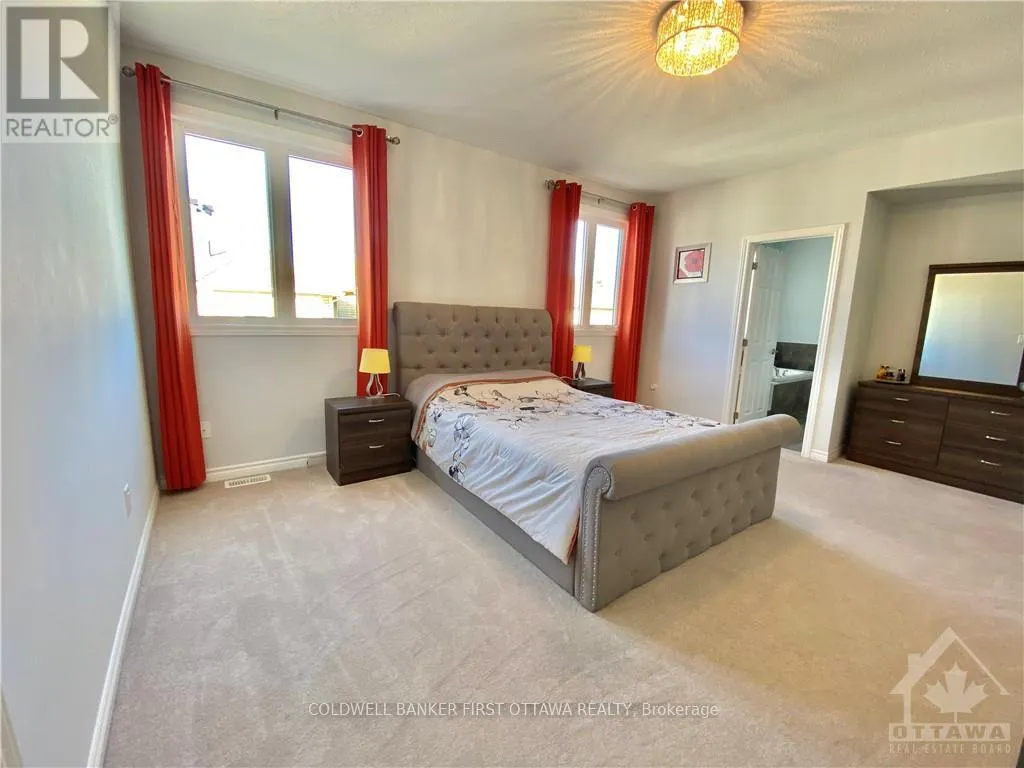 Cross Streets: Take ON-416 N, Strandherd Dr and Borrisokane Rd to River Mist Rd in Nepean, Continue on River Mist Rd. Drive to Whimbrel Way. ** Directions: 924 WHIMBREL WAY NEPEAN ON K2J 6C5. Mint condition 4 Bed + 4 Bath (2 ensuites) , 2900+sqft home located on a very quiet street, and a 2 minute walk from River Mist park. This home is all about size. Grand foyer welcomes you in with den/office adjacent to the front entrance. 9ft ceilings throughout main level. Large formal dining room. Immense chefs kitchen with stone countertops and breakfast bar on kitchen island, tiled backsplash, pot lights and stainless steel appliances. Loads of cabinetry for storage. Oversized living room area with fireplace overlooking the backyard. Hardwood staircase leads you upstairs where you'll find 4 very large bedrooms , computer book, and second floor laundry. Master retreat with 5 piece ensuite and a walk-in closet thats big enough to be its own bedroom! 4th bedroom hosts a 3 piece ensuite as well. NO pets, NO roommates, NO smoking. Completed rental application, credit score, pay stub/proof of employment requirement. (id:27476)