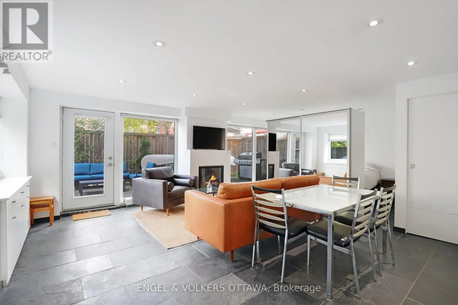 Cross Streets: Cobourg & Heney. ** Directions: From Rideau street, left onto Wurtemburg, left onto Heney. Nestled on a quiet, tree-lined street in Lowertown and overlooking beautiful MacDonald Gardens Park, this European-inspired furnished studio offers a refined blend of comfort, elegance, and convenience.Ideally located just minutes from Global Affairs, the ByWard Market, the University of Ottawa, and downtown, this suite is perfectly suited for professionals seeking a turnkey residence in one of Ottawa's most walkable and well-connected neighbourhoods.The open-concept layout [approx. 600 sq.ft.] is enhanced by walls of windows and slate flooring, creating a bright and sophisticated living space. The sleek, updated kitchen is designed for modern living, while the gas fireplace adds warmth and ambiance. A movable closet provides flexibility in defining the bedroom area to suit your lifestyle.Step outside to your private, fenced-in terrace, a true urban retreat! Featuring two decks: one dedicated to lounging, and another for outdoor dining complete with a wrought-iron table and natural gas-connected BBQ. Perfect for quiet relaxation or entertaining guests. Shared laundry is conveniently located next to the unit. (id:27476)