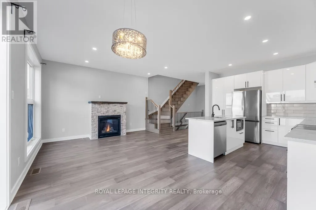 Cross Streets: Trailsedge to Contour Street. ** Directions: Innes Rd towards Orleans - Turn right onto Navan Road , turn left onto Page Rd , then turn right onto Trailsedge and then turn right to Contour St and property will be on your right side. Welcome to this beautifully custom built 2-year-old semi-detached home located in the highly desirable Trailsedge community of Orléans. Thoughtfully designed with 9-foot ceilings throughout and an impressive 10-foot ceiling in the garage, this home offers a perfect balance of modern style and everyday functionality. The open concept main level is ideal for both entertaining and daily living, featuring a gas fireplace with custom rustic mantel that adds warmth and character to the space. The contemporary kitchen comes with sleek cabinetry, quartz countertops, and a large centre island, making it a natural gathering point for family and guests. Upstairs, two generously sized bedrooms are filled with natural light from floor-to-ceiling windows. The primary suite provides a private retreat with a walk-in closet, spa inspired ensuite, and Juliet balcony, perfect for enjoying fresh air and quiet moments. The fully finished lower level expands the living space with a fourth bedroom, full bathroom, and rec room, ideal for guests, a home office, or additional family space. Built with energy efficiency in mind, the home features upgraded insulation and high-efficiency systems, and remains covered under Tarion Warranty for added peace of mind. Quality finishes include hardwood flooring on the main level, tile in wet areas, and carpeted bedrooms for added comfort. Lightly lived in and meticulously cared for, this move in ready home is located in a family friendly neighbourhood close to parks, schools, and amenities. Book your private showing today. (id:27476)