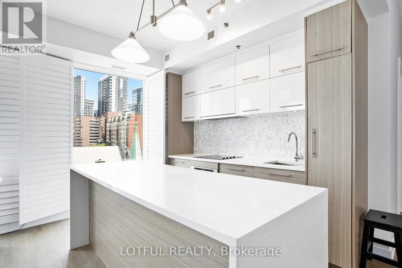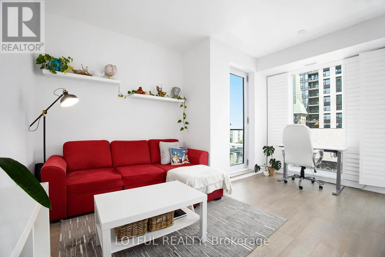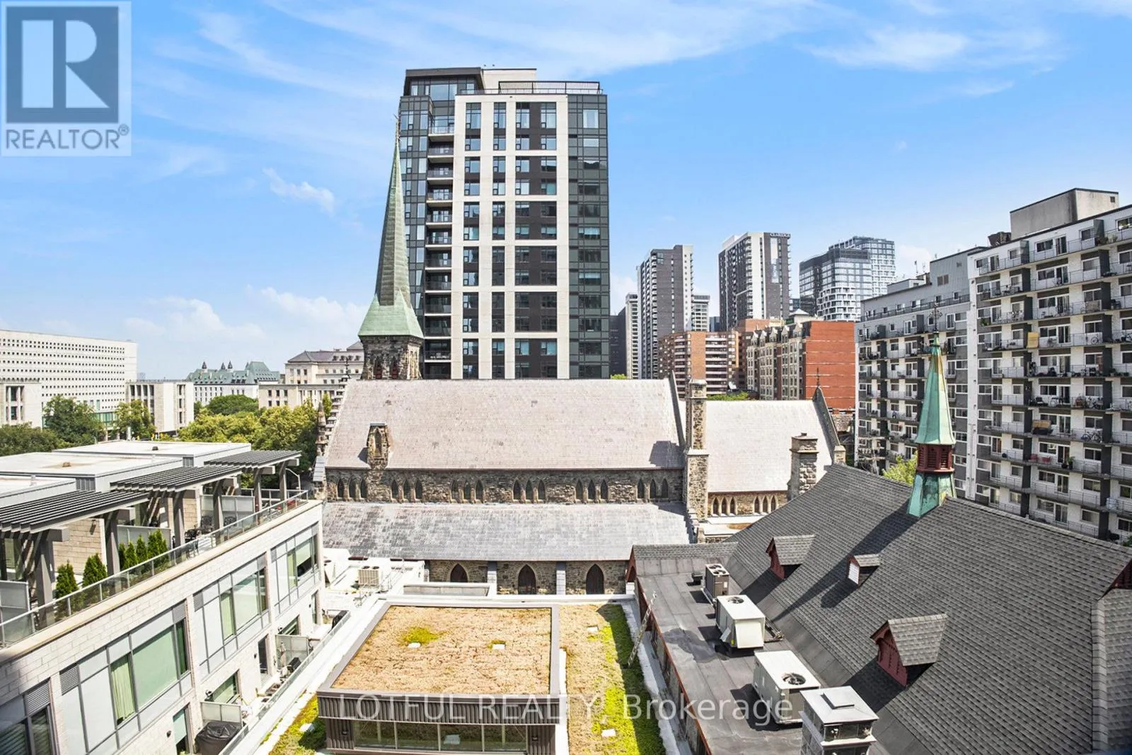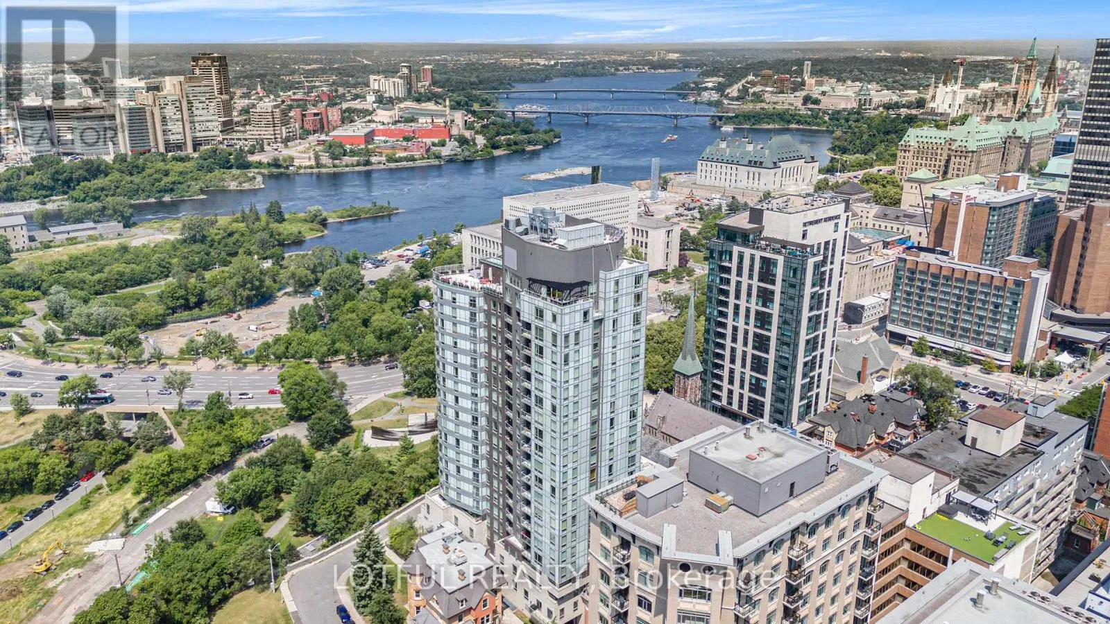 Cross Streets: Sparks and Bronson. ** Directions: 417 exit north on Bronson, turn right on Queen. Building at the corner of Queen, Bronson and Sparks Street. Just one block from the Queen Street LRT, this executive-style one-bedroom suite offers the perfect blend of luxury and convenience. Nestled in the prestigious Cathedral Hill, this residence boasts upscale finishes, including engineered hardwood, stunning ceramics, and chic, elegant cabinetry. The modern kitchen features Energy Star appliances, an under-counter microwave, a sleek hood fan, a stylish backsplash, and a versatile island ideal for cooking and entertaining. Floor-to-ceiling windows, adorned with California blinds, bathe the unit in natural light, while the spacious bedroom offers a generous closet. Enjoy breathtaking east-facing views, with reflected sunlight brightening the space throughout the day and a front-row seat to Canada Day fireworks! Unmatched amenities include a state-of-the-art fitness center, concierge service, guest suites, a party room, a dog wash station, and more. Secure underground parking and a storage locker complete this exceptional offering. Steps from Ottawa's finest riverfront, canal paths, and historical landmarks this is urban living at its finest. (id:27476)
