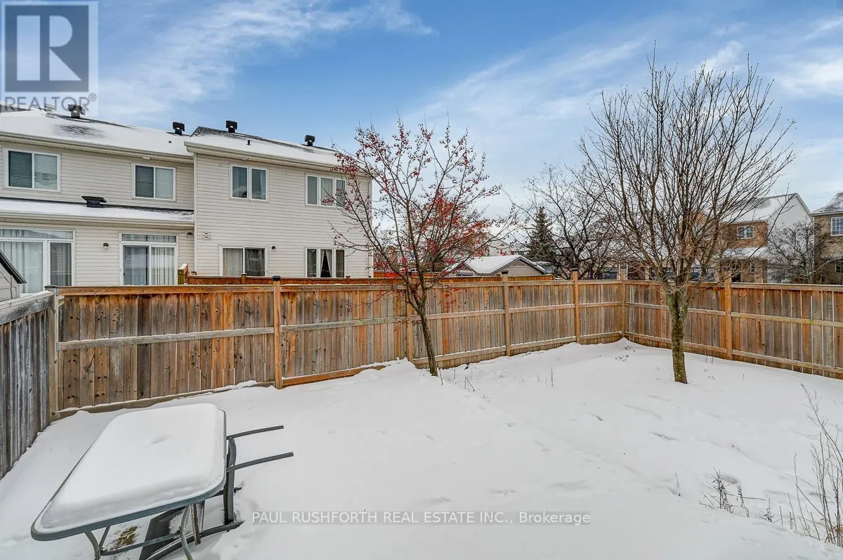 Cross Streets: Fernbank/Romina. ** Directions: Fernbank to Romina to Opus. IMMACULATE. A STUNNING TOWNHOME. NEWER ROOF + FURNACE + HEATPUMP + HWT. This 3 bedroom END UNIT on a MASSIVE 38ft wide CORNER LOT in the desirable TRAILWEST NEIGHBOURHOOD of booming KANATA SOUTH is a SHOWSTOPPER and is sure to please. MAIN FLOOR DEN. Loaded w/ upgrades and designer finishes thru-out the FAMILY FRIENDLY floor-plan, boasting an OPEN CONCEPT LAYOUT with SOARING TWO STOREY CEILING this beauty has it all: MAIN FLOOR DEN, stylish exterior, Full BRICK FRONT, hardwood flooring, CHEF'S KITCHEN, Oversized windows FILL THE HOME W/ NATURAL LIGHT, FORMAL DINING SPACE. Lovely principal retreat: DUAL CLOSETS, SPA INSPIRED ENSUITE w/ GLASS SHOWER + SOAKER TUB. Large family bathroom for bedrooms 2/3. FULLY FINISHED BASEMENT - family room with a cozy gas fireplace. FENCED YARD + SPRAWLING REAR DECK. Some photos have been virtually staged. SOUTH FACING REAR YARD. EXTRA DEEP GARAGE SPACE. This one has it all! NEW ROOF 2023, NEW $20k HIGH EFFICIENCY FURNACE + HEAT PUMP + HOT WATER TANK 2023. Flexible closing available. MUST SEE. (id:27476)
