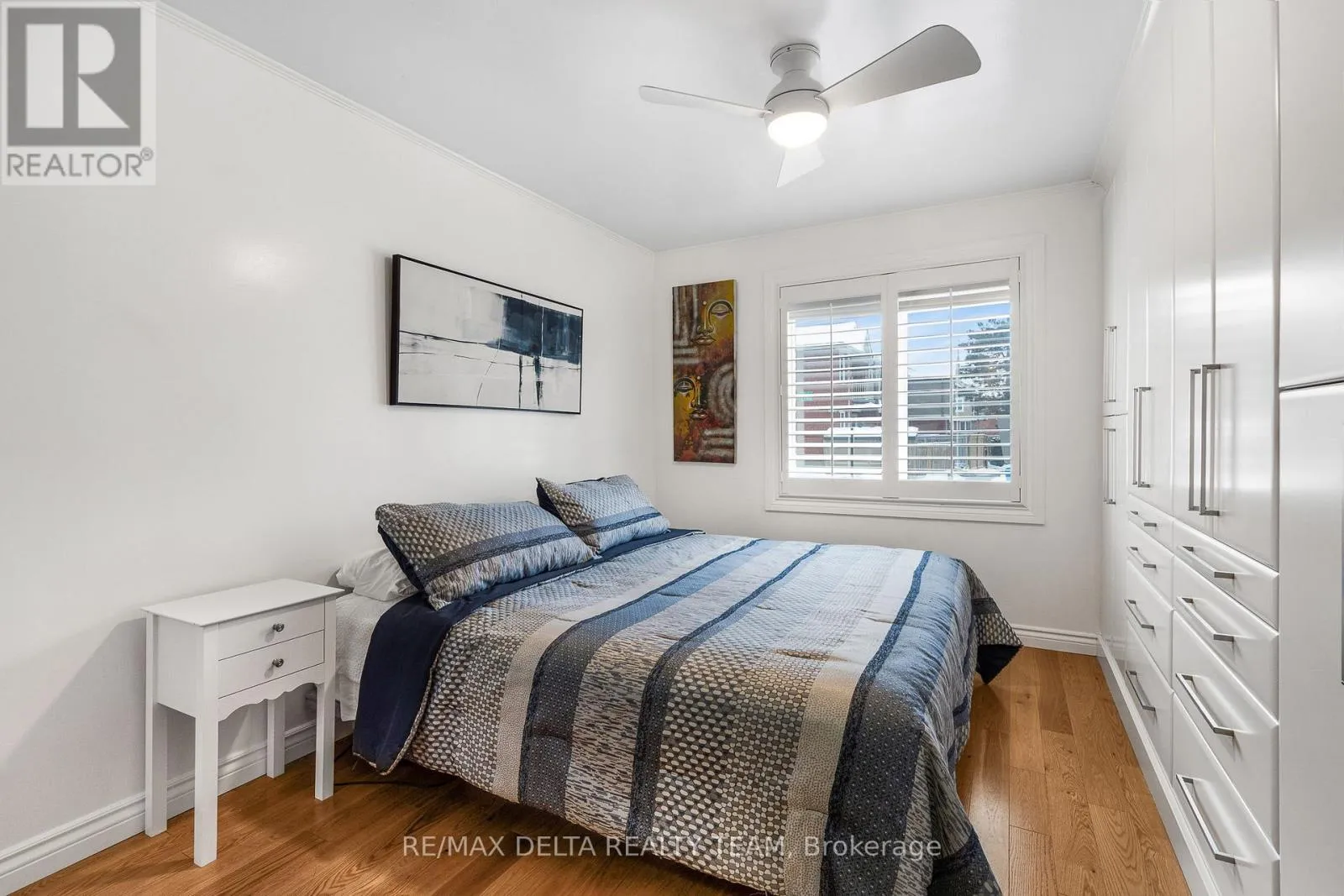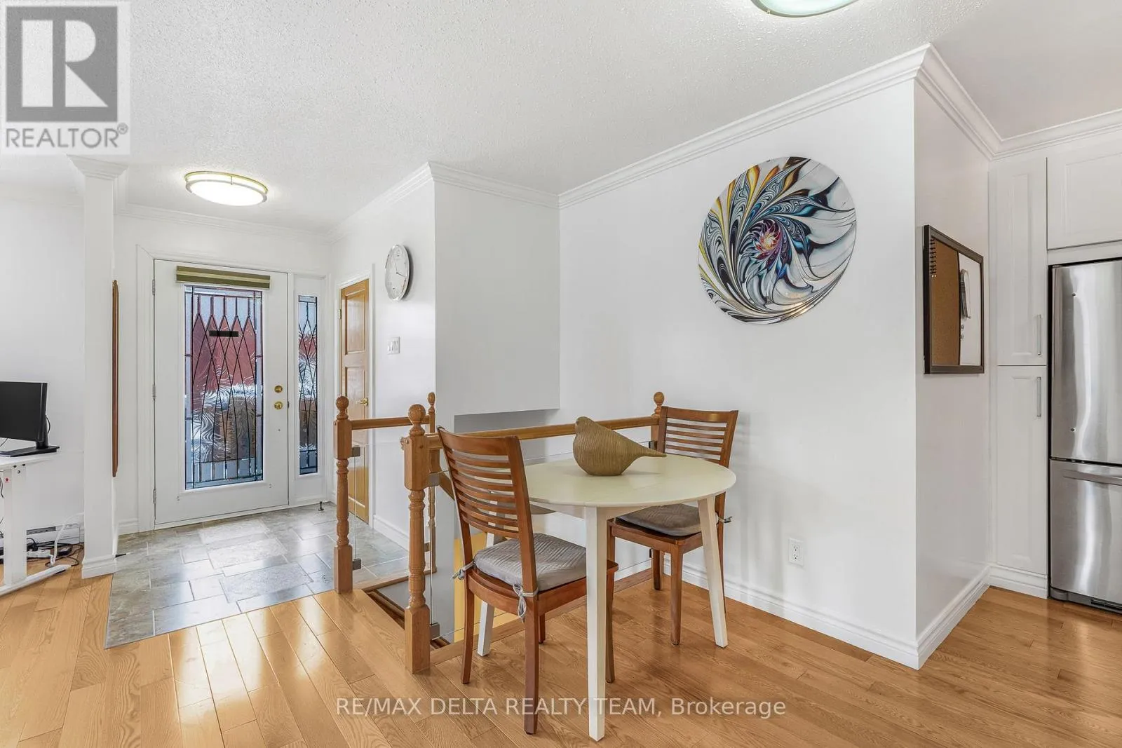 Cross Streets: Bottriell and Marsala. ** Directions: TENTH LINE TO CHARLEMAGNE TO BOTTRIELL TO MARSALA TO CABARET. Truly one of a kind, this upgraded bungalow-style condo offers refined finishes and exceptional attention to detail throughout. Hardwood flooring extends seamlessly across the main level and down the staircase to the lower level, complemented by rich oak interior doors. The designer-renovated kitchen and bathroom showcase timeless finishes, with the bathroom featuring an elegant walk-in shower. The primary bedroom is enhanced by custom built-in cabinetry, offering both sophistication and exceptional storage. The lower level features A versatile rec room-currently used as a bedroom-pairs perfectly with in-unit laundry equipped with newer appliances, creating a functional living space. Impressive curb appeal with an interlock patio and a striking front door replaced by the owner. Includes one parking space (#255). Ideally situated close to shopping, schools, and with effortless access to Highway 174, this is a truly special property that stands apart from the rest (id:27476)