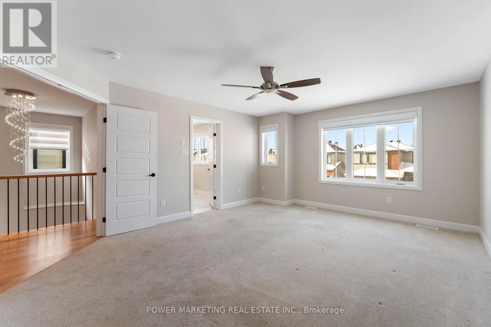 From Stittsville Main St. or Shea Road South, take Fernbank Rd, turn south onto Edenwylde Dr, turn right on Hickstead Way and take another right onto Sendero Way. Discover this stunning single detached home in Stittsville, offering over 3,000 sq ft above grade and an impressive open-concept layout designed for modern living. Rich hardwood floors and 9 ft smooth ceilings flow throughout the main level, featuring a formal great room with a custom fireplace and backsplash, an elegant dining room, a spacious kitchen, and a convenient main-floor den (which can be used as another bedrm). The chef's kitchen boasts a massive quartz island, abundant cabinetry, expansive counter space, black stainless steel appliances, and a built-in oven with cooktop. A sweeping hardwood spiral staircase leads to the second floor, where you'll find four generous bedrooms and three full bathrooms, including a luxurious primary suite with a large walk-in closet and a private 5-piece ensuite complete with glass shower and double quartz vanity. Second-floor laundry adds everyday convenience. The fully finished basement offers exceptional versatility, functioning perfectly as an in-law suite with 9ft ceilings and two bedrooms, a full bath, a complete kitchen, a designer feature wall with fireplace, and its own secondary laundry. This home is packed with premium upgrades-from flooring, quartz counters and a full 3pc bath powder rm to finer details like upgraded door hinges-showcasing true pride of ownership. Ideally located close to shopping, transit, parks, and top schools, this property delivers luxury, space, and convenience all in one. Call today to make this exceptional home yours! (id:27476)