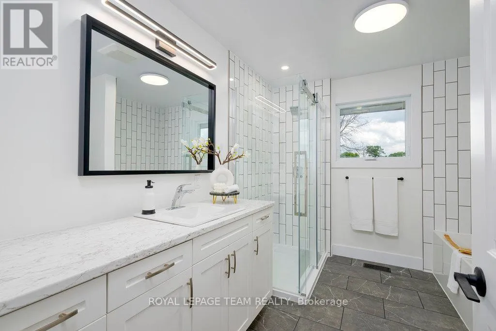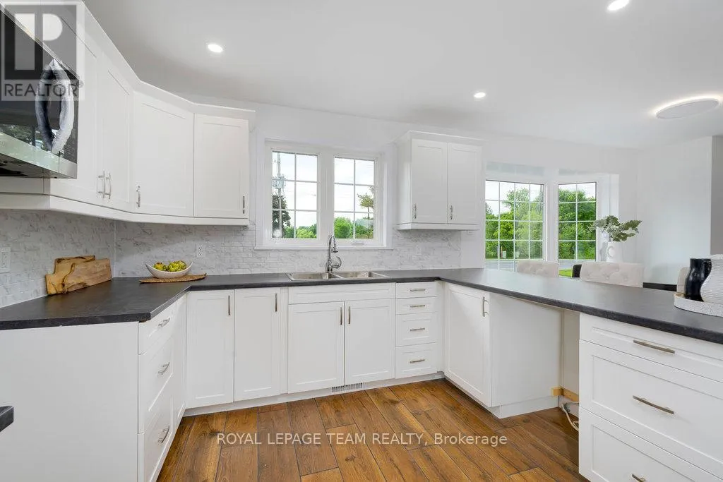Cross Streets: Carp Road & Donald B Munro Drive. ** Directions: Turn left onto Donald B Munro Drive from Carp Road (coming from the 417). Property will be on the left hand side. This charming 3+2 bedroom, 3 bath home in the sought-after village of Carp is sure to please! Tastefully renovated in 2025 on the main floor, the inviting space and natural sunlight make you feel at home from the moment you walk in the front door. The functional, open concept kitchen features an eating area with bay window and loads of cabinet space. The large living room is an entertainer's delight with easy access to your backyard deck, surrounded by greenspace on an oversized lot with a view of the Carp River. The perfect spot to relax and enjoy nature in a quiet, peaceful setting. A doorway separates the 3 bedrooms and 5-piece bathroom for privacy. Convenient main foor laundry room and two-piece powder room are ideal in finishing off the main floor space. The lower level offers a large two bedroom in-law suite with 4-piece bath, full kitchen and separate access. Perfect for intergenerational living. This home is in excellent, move-in ready condition. Solar panels on the metal roof offer a yearly income of over $4,000. All of this in one of Canada's most vibrant communities. From restaurants, golf, Carp Fair, nature trails and easy access to downtown Ottawa....this location is a dream! (id:27476)