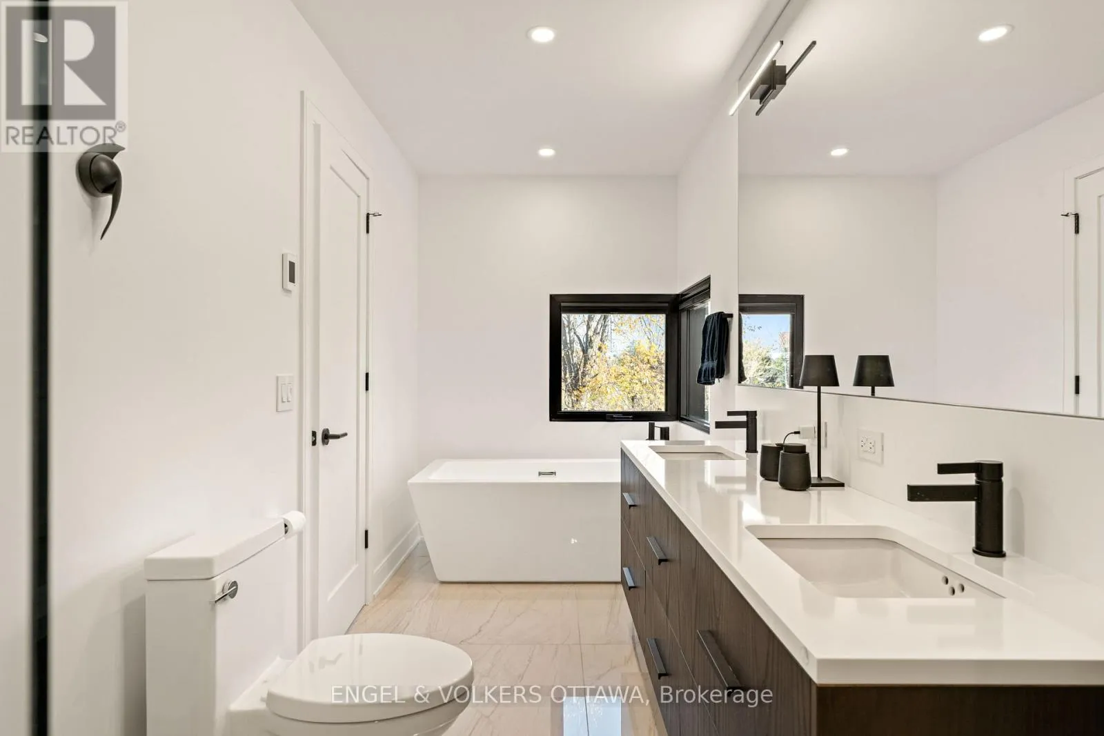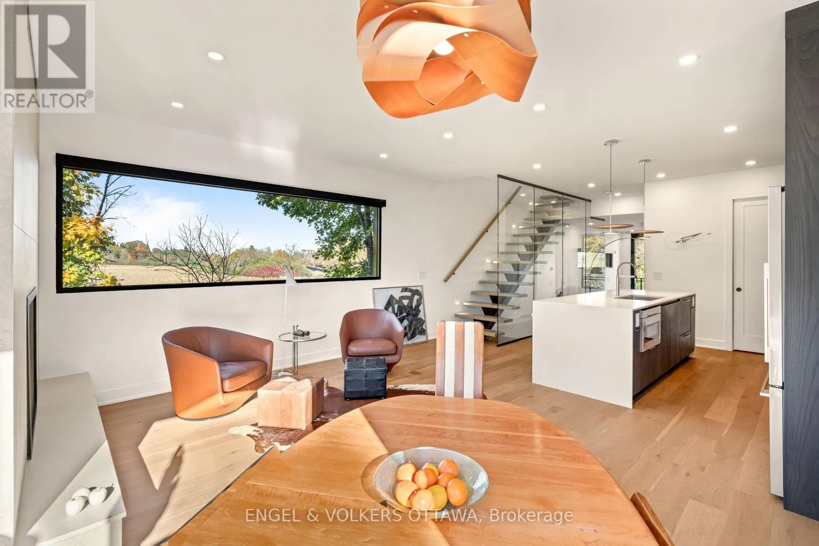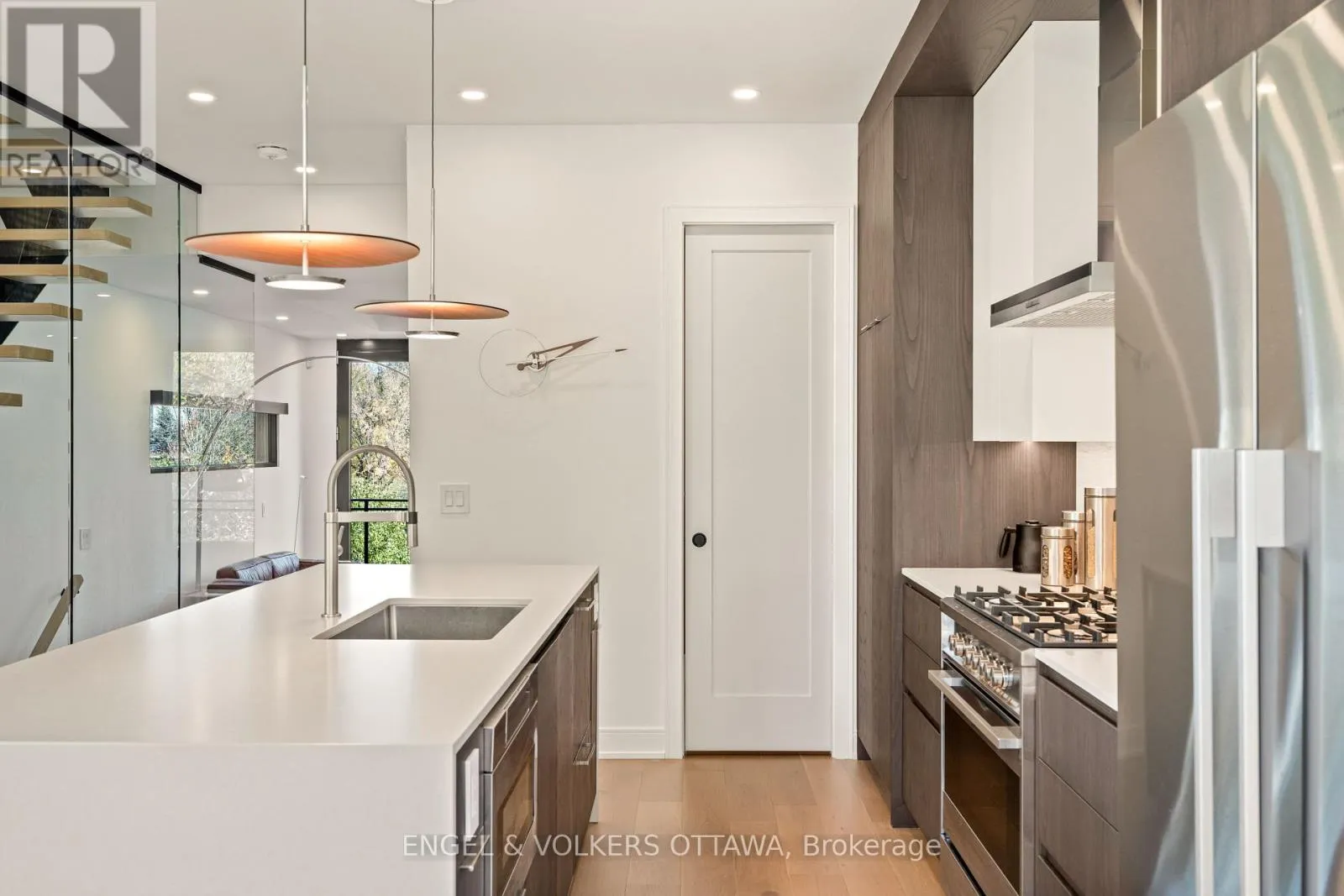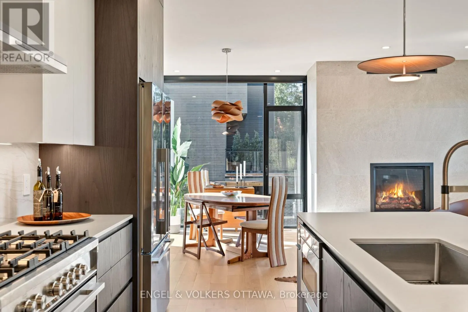 Cross Streets: Prince of Wales Dr. ** Directions: Prince of Wales Dr. to Peridot. Welcome to this exceptional residence in a exclusive enclave of just seven luxury homes. Winner of GOHBA Award for Interior Design, this 3-bed, 4-bath home offers over 2,400 sq. ft. of thoughtfully curated space. The main level is designed for life in style & fabulous entertaining, with a chef's kitchen at the heart of the home featuring a waterfall quartz island, extended custom two-tone cabinetry, gas stove and walk-in pantry with a sink. Two elegant living rooms offer upgraded fireplaces with quartz hearths and floor-to-ceiling Inalco Petra tiles. Framed by upgraded windows, every space is flooded with natural light, creating a seamless connection between the interior and the surrounding nature. An upgraded stringer staircase with open glass panels adds a striking architectural element, while preserving the home's airy, contemporary feel. Enjoy rare views of the Experimental Farm and a peek of the Rideau Canal from your private balcony. The upper level offers a primary bedroom with a spa-inspired ensuite offering a soaker tub, oversized 2-person glass shower, double vanity, and bidet. Two additional bedrooms, a full bath, and laundry with sink and custom cabinetry complete this level. The ground floor offers a spacious beautifully tiled foyer, and a large versatile area currently used as a home gym, easily adaptable as a family room or office, along with a convenient powder room, and access to a double car garage. Outside, the extended rear deck leads directly to a beautifully landscaped yard, offering a peaceful retreat surrounded by nature. This is the only home in the enclave with an extended private driveway. Other upgrades include fully automated Hunter Douglas blinds, wall mirrors in gym, foyer and primary bedroom. Moments to Little Italy, Dow's Lake, Civic Hospital, and Carleton University, this location provides a peaceful, nature-filled setting just minutes from the heart of the city. Visit the website for more photos & full list of features & upgrades. (id:27476)