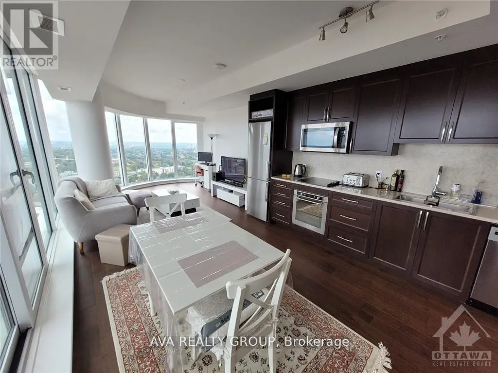 Cross Streets: carling and perston. ** Directions: west. Welcome to The Icon - Ottawa's tallest and most prestigious address! This stunning 1 Bedroom condo offers 649"-699")sq. ft. of bright, modern living space with spectacular skyline views. The open-concept layout features floor-to-ceiling windows, rich hardwood floors, and a sleek kitchen equipped with quartz countertops and stainless steel appliances-perfect for both cooking and entertaining.. Enjoy peaceful mornings or sunset evenings on your private balcony, soaking in the city skyline and the vibrant energy of downtown Ottawa. Residents enjoy resort-style amenities, including an indoor pool, fitness centre, sauna, yoga studio, theatre room, games room, party lounge, guest suites, and an expansive rooftop terrace with BBQs. A 24-hour concierge and a storage locker add convenience and peace of mind. Located in the heart of Little Italy, just steps from Dow's Lake, the Rideau Canal, LRT, restaurants, cafés, and the upcoming Civic Hospital, this condo delivers the perfect blend of luxury, lifestyle, and location. Experience elevated urban living-this is more than a home, it's a statement. (id:27476)