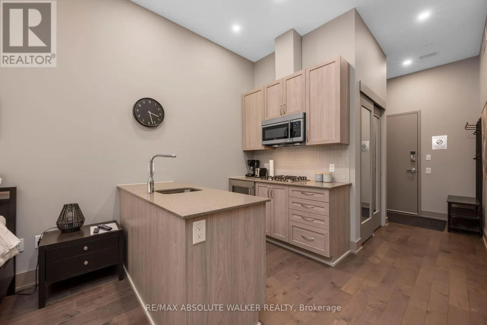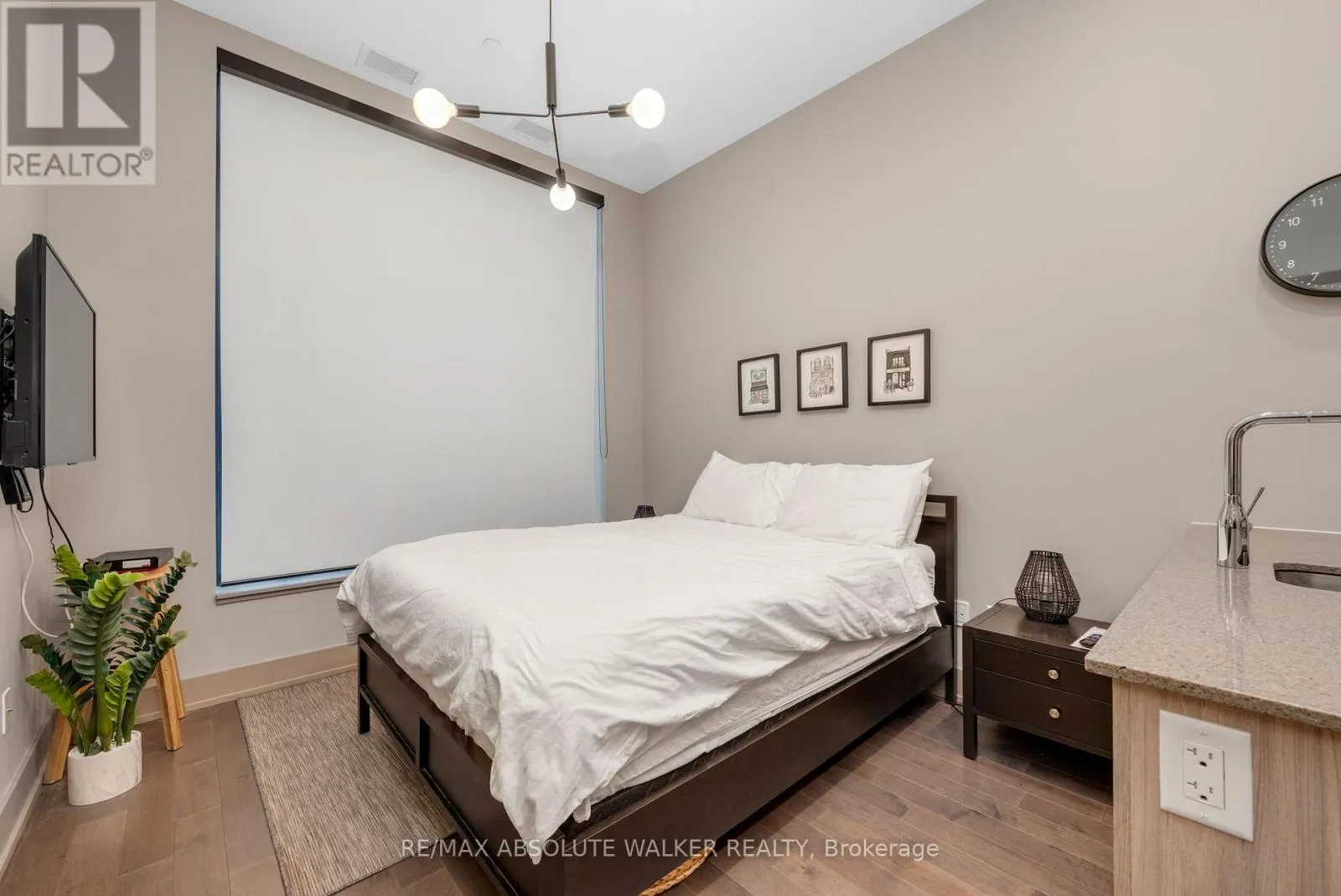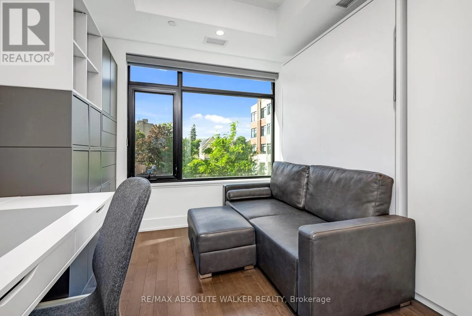 Cross Streets: Main St. & Oblats Ave. ** Directions: Main St. at Oblats Ave. Nestled in the vibrant heart of Old Ottawa East, this rare pied-Ã -terre offers an exceptional opportunity for young professionals or savvy investors. Thoughtfully designed for modern urban living, this sleek condo features a smart open-concept layout that maximizes space and functionality. High-end finishes throughout include hardwood flooring, quartz countertops, and a chef-inspired kitchen equipped with premium stainless steel appliances, creating a refined and contemporary atmosphere. The unit is fully outfitted for convenience, featuring a custom Murphy bed, built-in desk, and wardrobe-ideal for efficient, stylish living. Residents enjoy an impressive array of building amenities, including a yoga studio, fully equipped gym, and a party room perfect for entertaining. Additional conveniences include a storage locker and a guest suite for visiting friends and family. Accessibility is enhanced with a wheelchair elevator/lift, while the rooftop terrace offers a welcoming space to relax or socialize with neighbours. Step outside and immerse yourself in the charm of the surrounding community, with scenic bike paths, tranquil walking routes, and the natural beauty of the area at your doorstep. Located in a smoke-free building within one of Ottawa's most sought-after neighbourhoods, this condo is just moments from the Rideau Canal, the Glebe, and the University of Ottawa. (id:27476)