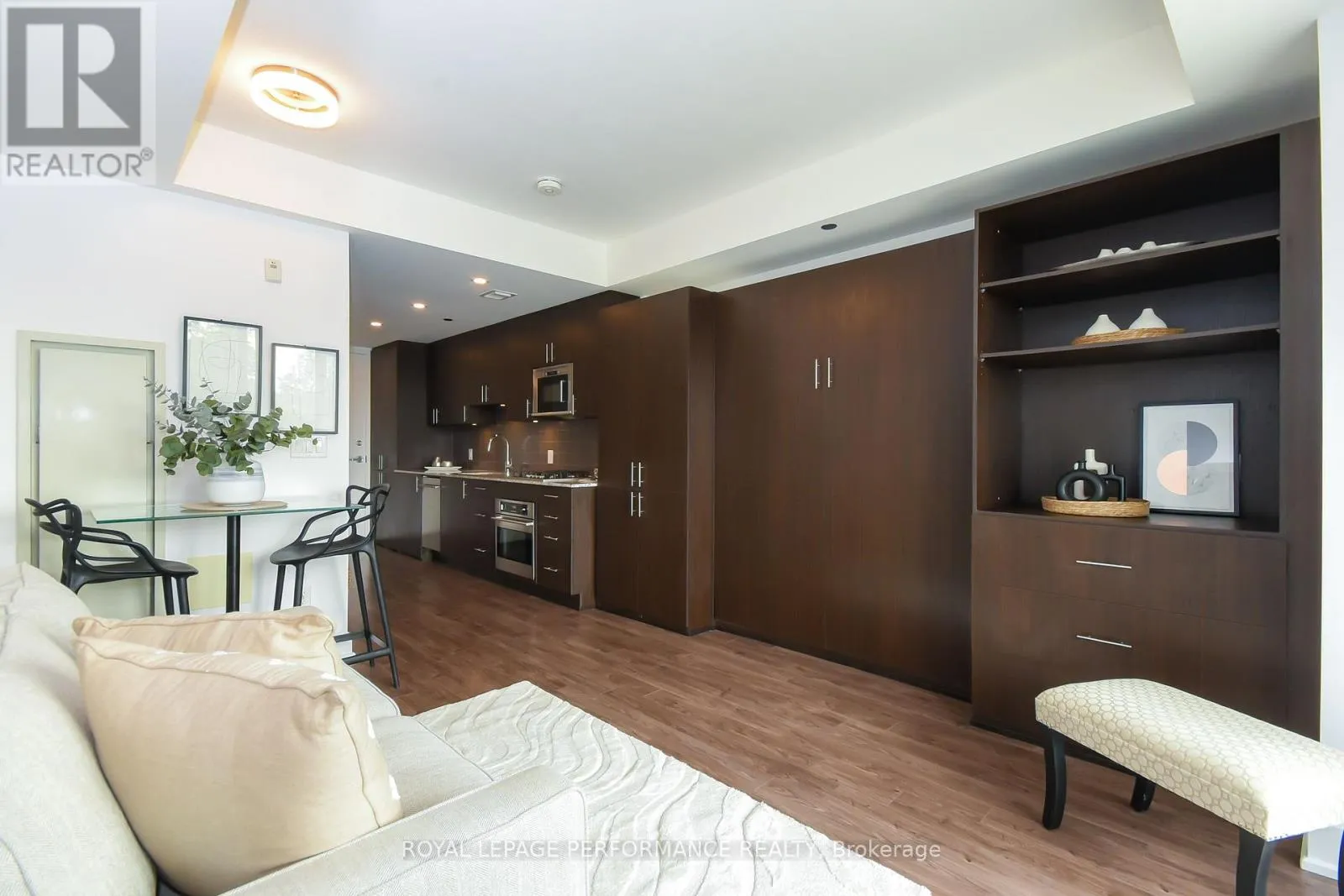 Cross Streets: Beechwood. ** Directions: Beechwood to Marquette. This is an exceptional opportunity to own a bachelor/studio apartment with a well sized balcony in the highly sought-after Kavanaugh building, constructed by Domicile and situated in the trendy Beechwood Village. Located at the corner of Beechwood and Marquette, this property provides convenient access to downtown. Its prime location makes it an ideal choice for professionals, investors, those looking to downsize, or anyone seeking a pied-Ã -terre. This bright and sunny, south-facing unit is thoughtfully designed for both comfort and practicality. The contemporary kitchen features granite countertops, a ceramic backsplash, and stainless steel appliances. The bathroom boasts a glass shower, granite countertop, and ample storage. Convenience of built-in cabinetry and a Murphy bed. The apartment showcases modern, functional design with high-end finishes, including ceramic tile and engineered hardwood flooring. A storage locker is included. The building itself offers a modern design with a welcoming foyer, party room, guest suite, fitness center, bike storage, workshop, car and pet wash, visitor's parking, a library and a rooftop terrace with stunning views. Well-managed and secure building with a low condo fee. Imagine enjoying the sunset from your spacious balcony. Freshly painted and professionally cleaned, this unit is truly move-in ready- just unpack! Flexible possession. Priced to sell. (id:27476)