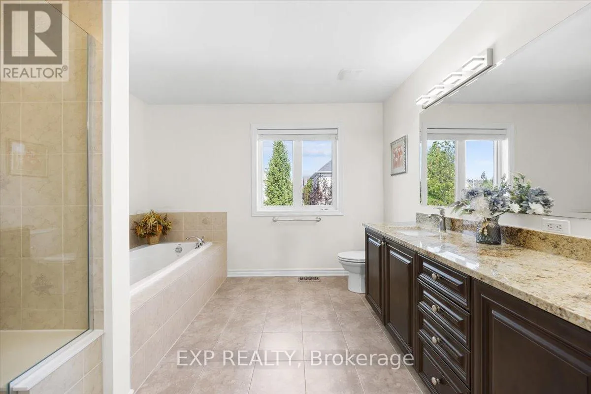 Cross Streets: Woodroffe Avenue and Paul Metivier Drive. ** Directions: South on Woodroffe Ave, right on Paul Metivier Dr, right on Temagami Dr, right on Grayburn Way. Welcome to this stunning 4-bedroom, 4-bathroom home nestled on a premium corner lot, offering exceptional curb appeal with a beautiful interlocked driveway and elegant stone exterior. This move-in ready home combines space, style, and location for the perfect family living experience. Step inside to a bright and functional layout featuring hardwood flooring throughout the main and second floors. The upgraded kitchen is a chefs dream, showcasing brand-new granite countertops, a large center island, stainless steel appliances, and an expansive breakfast nook overlooking the backyard. The main level also includes a formal living and dining area, a cozy family room, a convenient main floor laundry room, and a stylish powder room. Upstairs, the spacious primary bedroom retreat features a luxurious 5-piece ensuite with new granite countertops and a large walk-in closet. The secondary bedrooms are generously sized and share an updated full bathroom, also featuring new granite countertops. The fully finished lower level offers a spacious recreation room, an additional full bathroom, and flexible space perfect for a home office, gym, or playroom. Enjoy the outdoors in the fenced-in backyard, complete with a professionally finished interlock patio ideal for entertaining or relaxing. Located in a highly desirable neighborhood, this home is close to top-rated schools, parks, public transit, shopping, and a wide range of local amenities. Don't miss your opportunity to own this beautifully upgraded home in an unbeatable location! (id:27476)