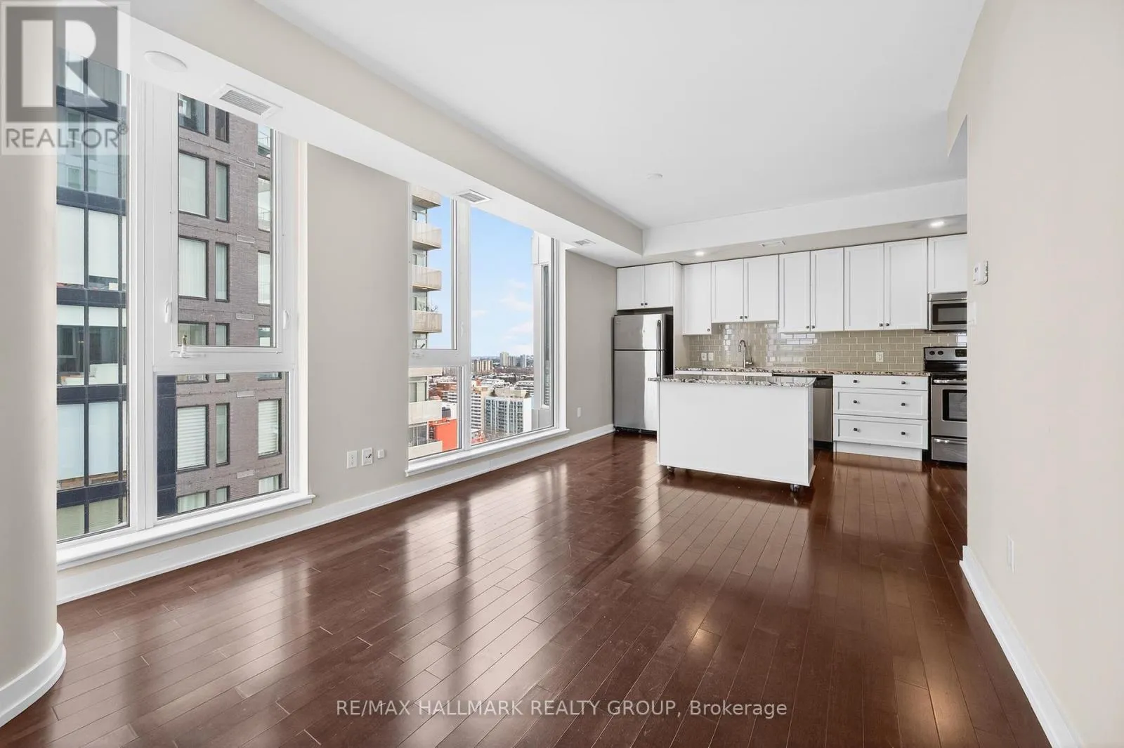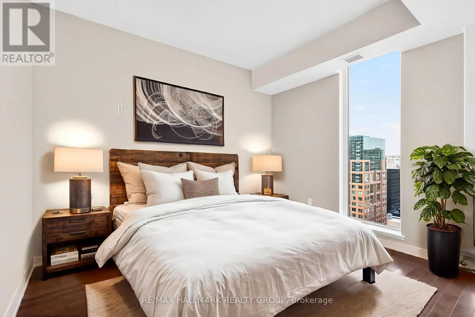 Cross Streets: Metcalfe St. & Nepean St. ** Directions: Corner of Metcalfe Street and Nepean Street. Welcome to The Surrey at Tribeca East! This beautifully maintained 1 Bedroom + Den condo offers 753 sq. ft. of bright, open-concept living space on the 21st floor, showcasing elevated city views and a smart, functional layout. This unit features a spacious primary bedroom, a versatile den ideal for a home office, and a modern kitchen/living/dining area designed for both everyday living and entertaining. The sleek kitchen is equipped with granite countertops, stainless steel appliances, and a moveable island, seamlessly connecting to the living space. Step onto your private balcony and take in the downtown skyline from above. Additional highlights include in-unit laundry and central air conditioning. Residents enjoy access to exceptional amenities, including a fitness centre, indoor pool, party room, rooftop terrace, and concierge service. Located in an unbeatable downtown setting - Farm Boy right next door and Parliament Hill, the Rideau Canal, LRT stations, shopping, and dining all within walking distance - you may not even need the one underground parking spot included. Ideal for professionals, downsizers, or investors seeking premium urban living at one of Ottawa's most desirable addresses. Condo fees include: Heat, Water, A/C, Building Insurance, Garbage Removal, Reserve Fund Allocation, and Building Maintenance. (id:27476)