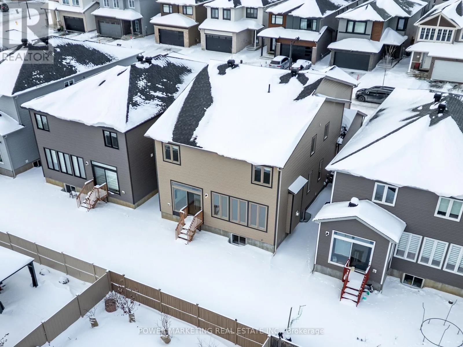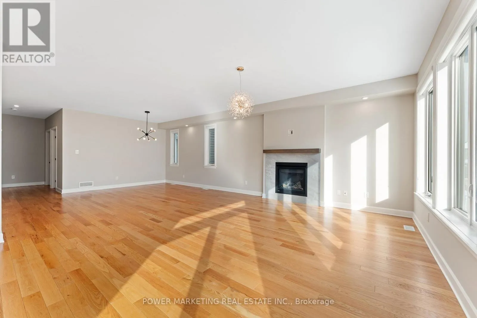 From Stittsville Main St. or Shea Road South, take Fernbank Rd, turn south onto Edenwylde Dr, turn right on Hickstead Way and take another right onto Sendero Way. Discover this stunning single detached home in Stittsville, offering over 3,000 sq ft above grade and an impressive open-concept layout designed for modern living. Rich hardwood floors and 9 ft smooth ceilings flow throughout the main level, featuring a formal great room with a custom fireplace and backsplash, an elegant dining room, a spacious kitchen, and a convenient main-floor den (which can be used as another bedrm). The chef's kitchen boasts a massive quartz island, abundant cabinetry, expansive counter space, black stainless steel appliances, and a built-in oven with cooktop. A sweeping hardwood spiral staircase leads to the second floor, where you'll find four generous bedrooms and three full bathrooms, including a luxurious primary suite with a large walk-in closet and a private 5-piece ensuite complete with glass shower and double quartz vanity. Second-floor laundry adds everyday convenience. The fully finished basement offers exceptional versatility, functioning perfectly as an in-law suite with 9ft ceilings and two bedrooms, a full bath, a complete kitchen, a designer feature wall with fireplace, and its own secondary laundry. This home is packed with premium upgrades-from flooring, quartz counters and a full 3pc bath powder rm to finer details like upgraded door hinges-showcasing true pride of ownership. Ideally located close to shopping, transit, parks, and top schools, this property delivers luxury, space, and convenience all in one. Call today to make this exceptional home yours! (id:27476)