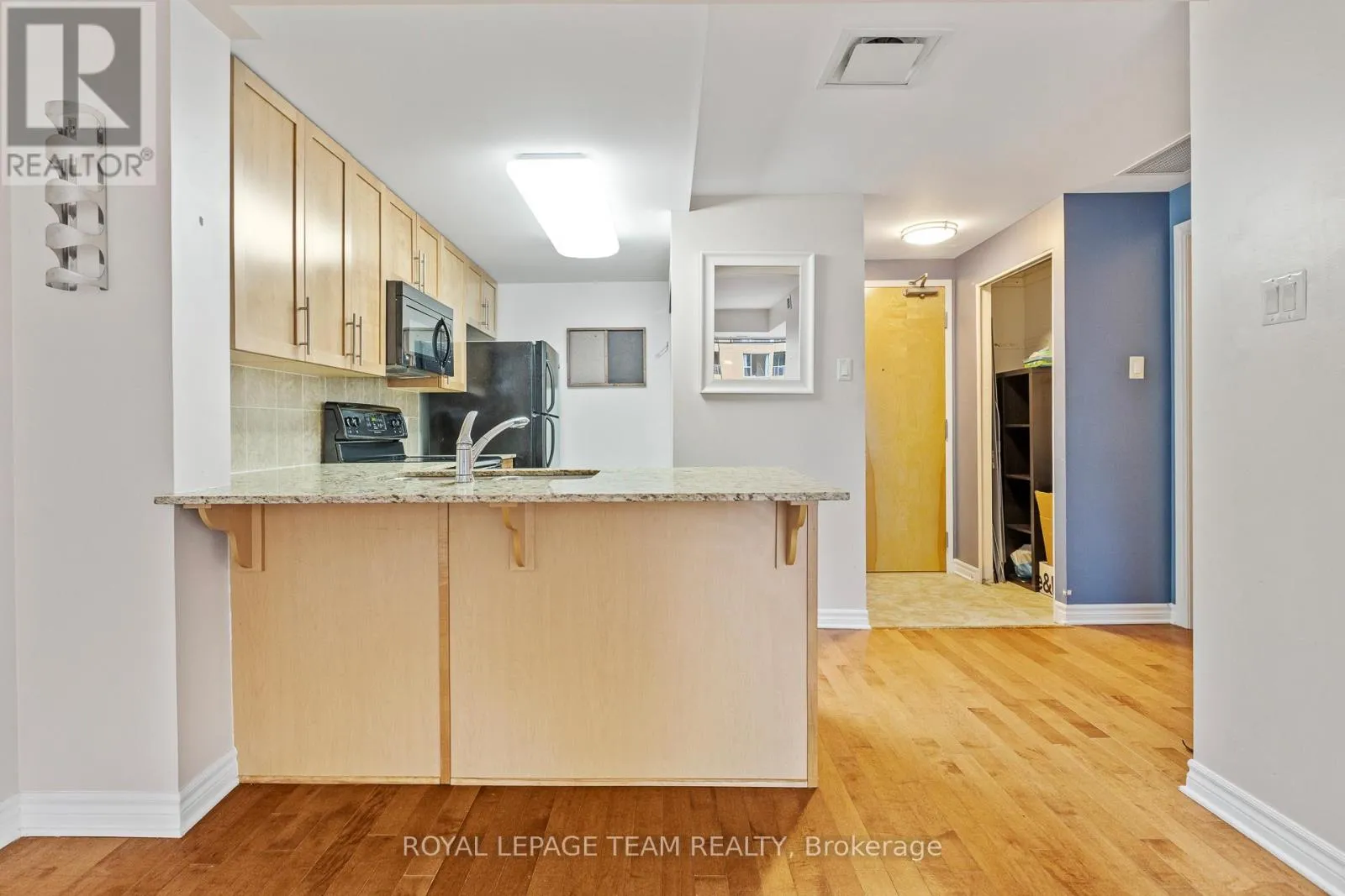 Cross Streets: Lett / Fleet. ** Directions: FLEET OR WELLINGTON TO LETT. Modern 1-bedroom condo with an efficient layout, granite countertops, courtyard-facing balcony, and storage locker. Quietly situated on the edge of downtown near the Ottawa River, offering peaceful living with easy access to the city core. Currently rented to a quiet single tenant on a fixed lease until Feb 28, 2027 at $1,750/month plus hydro, making this a strong turn-key investment opportunity. Building amenities include gym, party room, sauna, and rooftop patio with panoramic city views. Condo fees of $444.90/month include heat and water. LEED Silver certified. Status certificate on file. GO AND SHOW UNTIL MARCH 15 (id:27476)