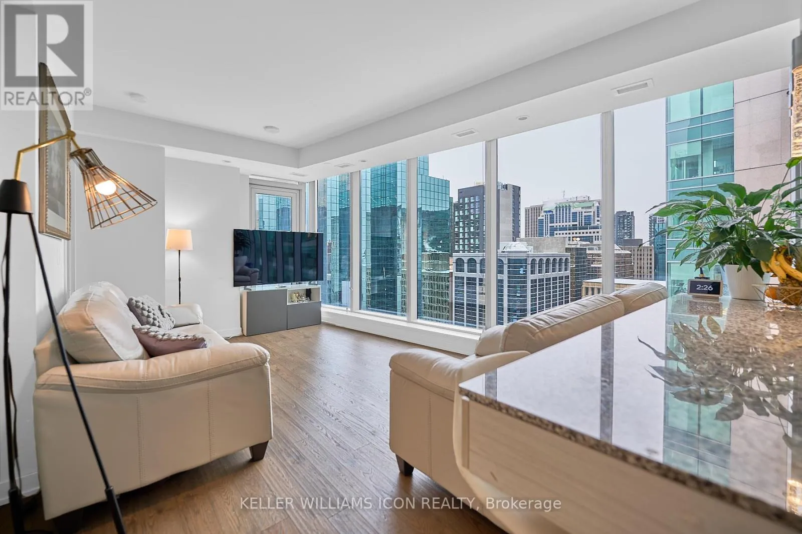 Cross Streets: Queen St & O Connor St. ** Directions: Take Alta vista Dr, Regional Rd 72 and Metcalfe St, Regional Rd 89 to Queen Street than turn left , destination will be on the right. Welcome to 1209-101 Queen Street, where luxury living meets unmatched convenience in the heart of downtown Ottawa. This refined 2-bedroom, 2-bathroom residence features 9-foot ceilings, a bright open-concept layout, and floor-to-ceiling windows that flood the space with natural light. The contemporary kitchen showcases quartz countertops, a sleek breakfast bar, and premium finishes-perfect for both everyday living and entertaining. The unit also includes a private ensuite laundry room with an upgraded 2-in-1 washer and dryer for added comfort and efficiency. Just steps from your unit, the spectacular Sky Lounge offers breathtaking, unobstructed views of Parliament Hill, an extension of your own living room and an exceptional space to relax, host, or enjoy Ottawa's iconic skyline. Additional upscale amenities include a state-of-the-art fitness centre, sauna, 24/7 concierge service, theatre, and more! Ideally located in one of downtown's most desirable addresses, you're moments from fine dining, shopping, the LRT, and Parliament Hill, placing the very best of the city at your doorstep. (id:27476)