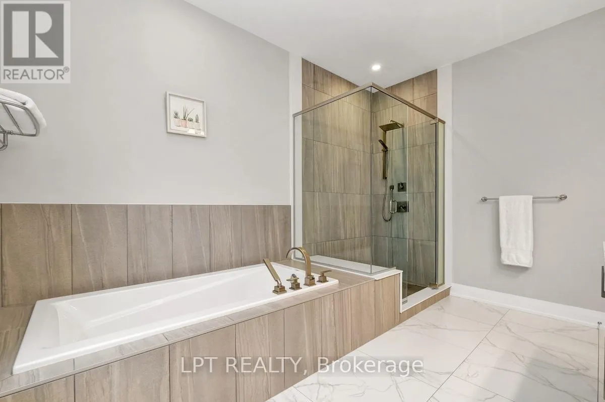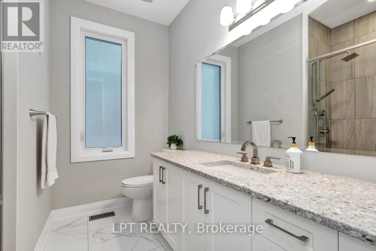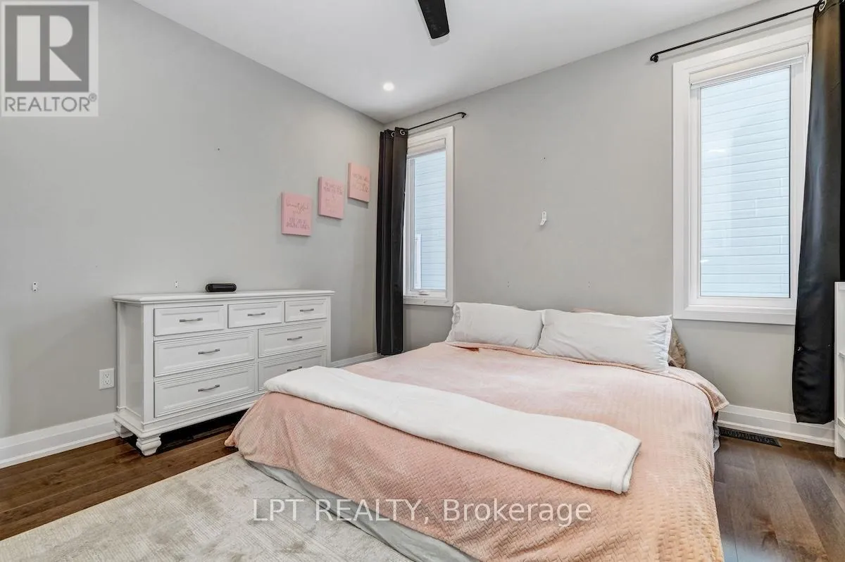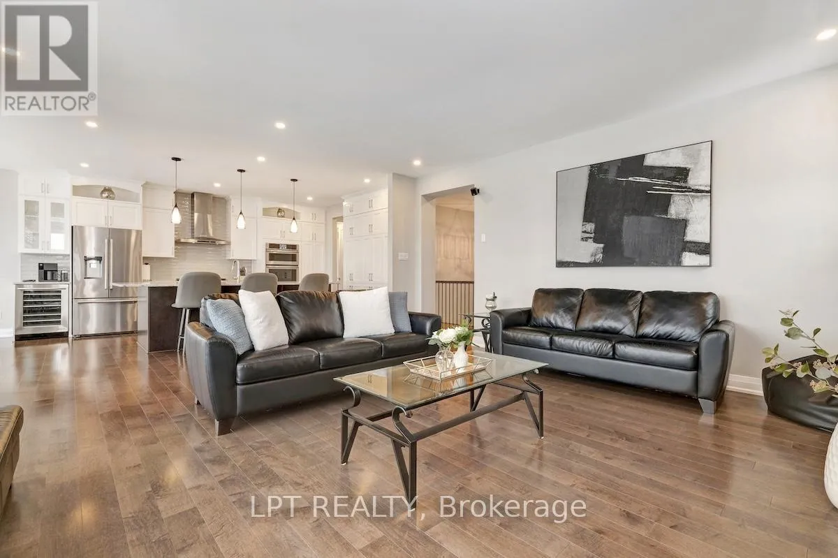 Cross Streets: Manotick Main Street. ** Directions: Manotick Main Street, right on Bridgeport Ave,Left on Trestle St, Left onto Sprindrift Circle. Welcome to this beautifully upgraded bungalow located in the highly sought-after Mahogany Community, set on a generous 60' x 118' lot. Offering approximately 2,000 sq. ft. on the main level, this home combines elegant design, thoughtful improvements, and exceptional outdoor enhancements. The bright, open-concept layout is anchored by a stunning chef-inspired kitchen featuring an oversized island, granite countertops, premium stainless-steel appliances, and an abundance of cabinetry and prep space-perfect for both everyday living and entertaining. The spacious living area is warm and inviting with a cozy gas fireplace, while the former dining room has been professionally converted into a third main-floor bedroom, providing flexible space for families, guests, or a home office. The primary suite is a true retreat, complete with a custom California walk-in closet with upgraded built-ins and a luxurious 5-piece ensuite showcasing a soaker tub, separate glass shower, double vanity, and refined finishes. The expansive unfinished basement offers high ceilings and oversized windows and now features a newly added full walkout, opening up endless potential for future living space. Outside, the property has been professionally landscaped from front to back, including beautifully executed concrete steps along the side and rear of the home-creating seamless access and impressive curb appeal. Additional highlights include rich hardwood and tile flooring throughout the main level, main-floor laundry, brick and stone exterior, fenced yard, and extensive builder upgrades throughout. A rare opportunity to own a meticulously improved bungalow in one of Ottawa's most desirable communities. 24 hour irrevocable on all offers as per form 244. (id:27476)