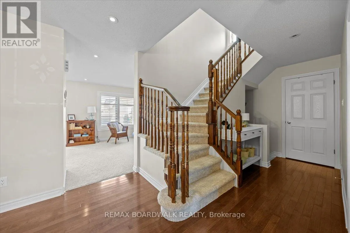 Cross Streets: Avalon East. ** Directions: South on Esprit Drive, West on Harvest Valley Ave, South on Beaudelaire Drive, East on Pellerin Place. Beautiful and well-maintained 3-bedroom, 3-bath single-family home located in the highly desirable Avalon community of Orleans. This impressive property offers exceptional curb appeal with a professionally landscaped front yard, elegant interlock walkway, lush gardens, and a mature maple tree. The inviting tiled front veranda creates a warm welcome and leads into a bright foyer featuring mirrored closet doors and a functional layout. The main level is designed for everyday living and entertaining, featuring a spacious living-and-dining room combination highlighted by rich hardwood flooring, neutral designer paint tones, and pot lighting throughout. The comfortable family room is centred around a gas fireplace, creating a cozy atmosphere for relaxing evenings. The beautifully updated kitchen features stainless steel appliances, a stylish tile backsplash, and ample cabinetry. Patio doors off the kitchen provide seamless access to the private backyard. The fully fenced backyard is ideal for outdoor enjoyment, offering a maintenance-free deck, interlock patio, and durable PVC fencing-perfect for entertaining, family gatherings, or quiet enjoyment. A convenient main-floor mudroom and laundry area with inside access to the single-car garage adds everyday functionality. The second level features three generously sized bedrooms and a full 4-piece family bathroom. The spacious primary bedroom includes a walk-in closet and a 4-piece ensuite with a walk-in shower. The professionally finished basement extends the living space with a large recreation room suitable for a home theatre, gym, or play area, along with plenty of storage space. This home has been meticulously cared for and is move-in ready. Ideally located close to schools, parks, walking trails, and recreation facilities, with easy access to shopping, transit, and amenities. A fantastic opportunity to own a quality home in one of Orleans' most sought-after family-friendly neighbourhoods. (id:27476)