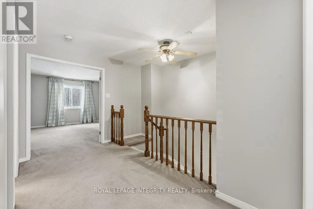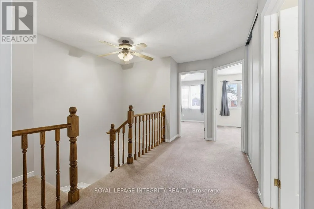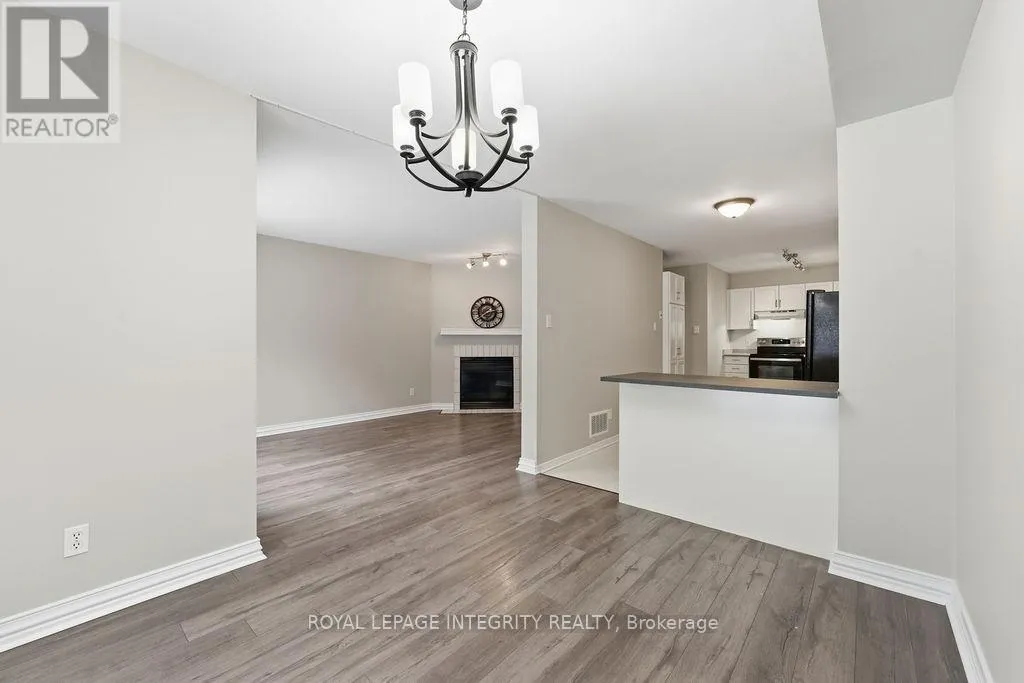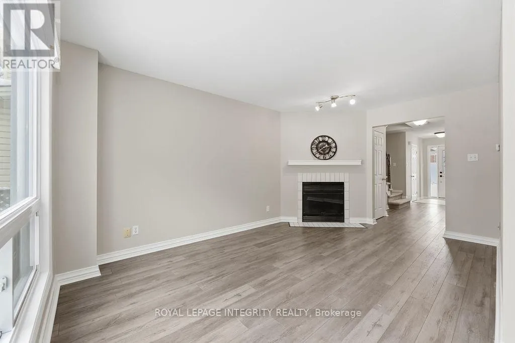 Cross Streets: Stonehaven Drive. ** Directions: Eagleson Drive, turn east on Stonehaven Drive, turn right on Furlong Crescent. Located on a family-friendly crescent in a lovely Bridlewood neighbourhood sits this freshly painted 3 bedroom 2.5 bathroom freehold townhouse! The main level includes a large living room with a wood fireplace, easy care flooring, a powder room, plus a white kitchen which has been expanded with additional cabinetry and a convenient breakfast bar! There is still ample room for a dining table off the kitchen from which you can enjoy views plus access to the deck in the fully fenced backyard. The mature pine trees beyond the backyard's fence are part of Deevy Pine Park, a large park with walking trails and access to basketball courts, soccer fields, and a baseball diamond. Additional features and upgrades included with this townhouse: windows (2019); natural gas furnace (2017); 5 appliances including stove (2025) + washer & dryer (2025); three bedrooms on second floor; renovated ensuite bathroom featuring a large walk-in shower, walk-in closet in primary bedroom; central air,+++! The long driveway leads to the single attached garage with easy access to the main level. The unspoiled basement provides flexibility for many uses, or perhaps a chance to create some additional living space! (id:27476)
