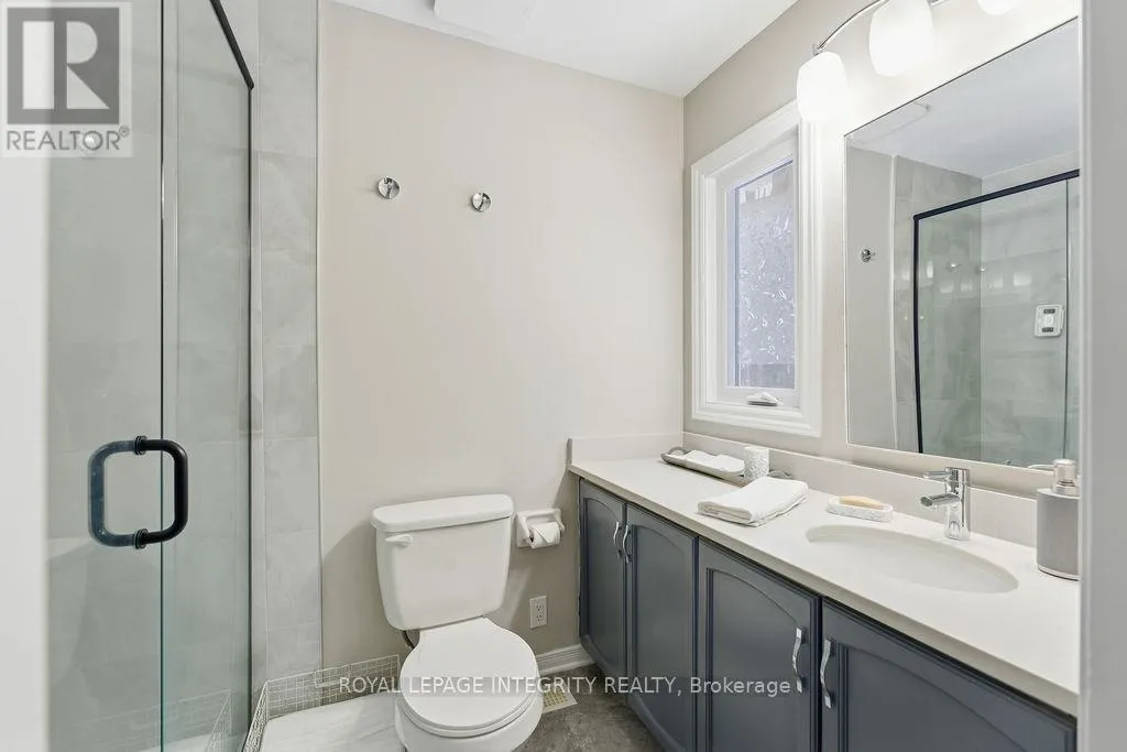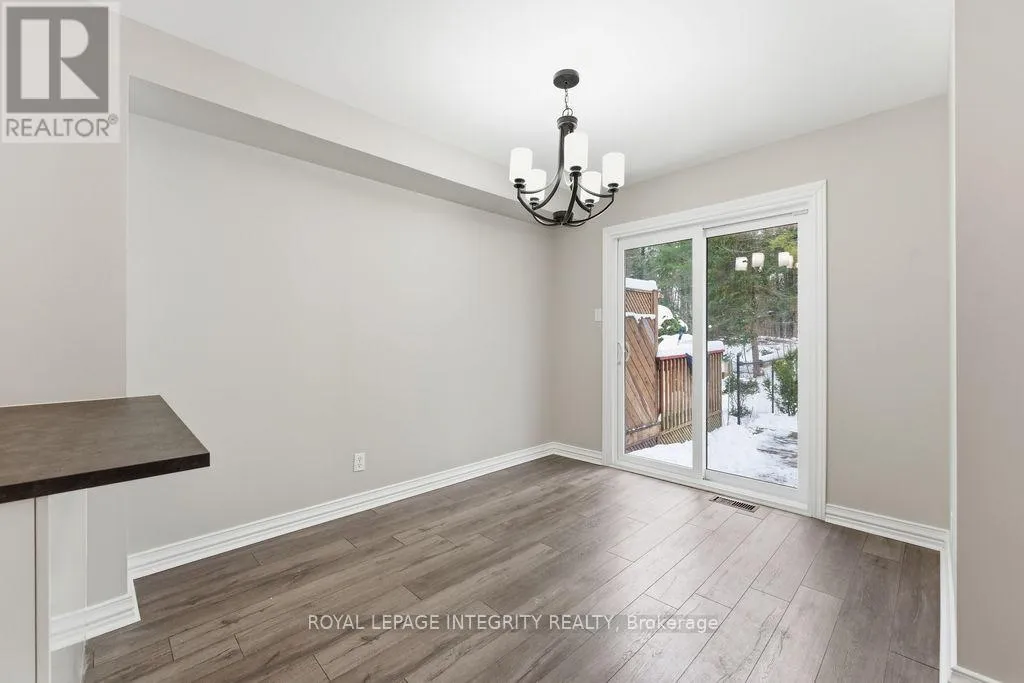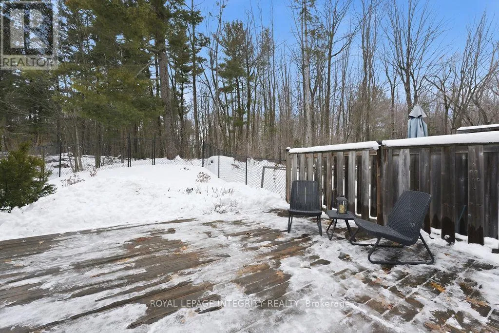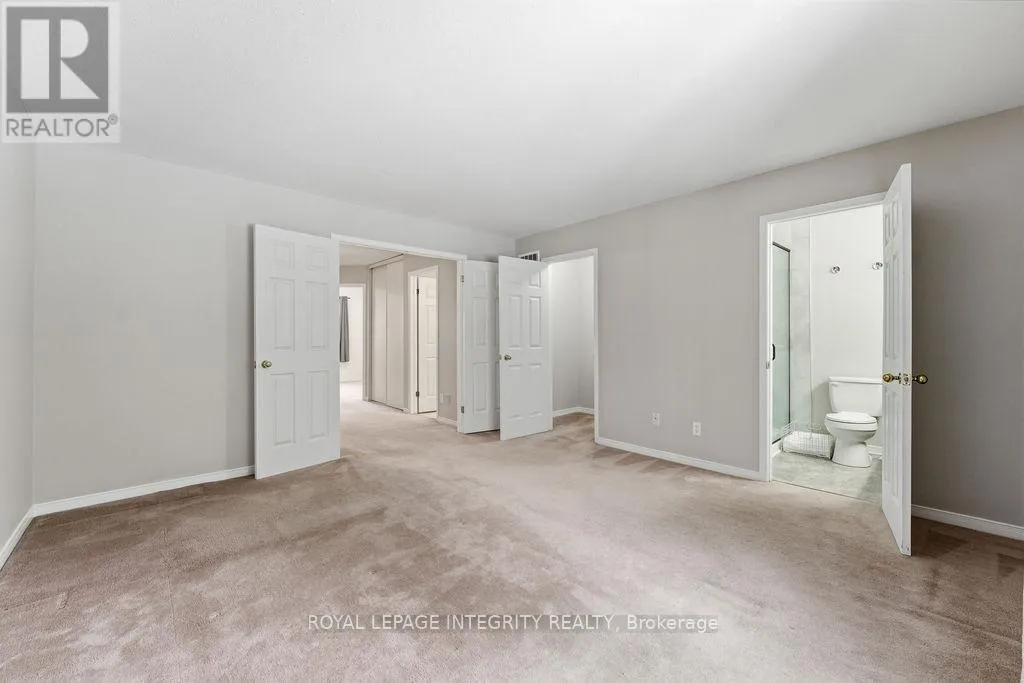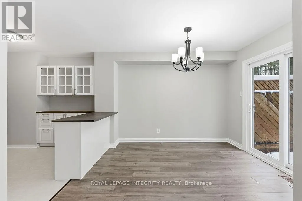 Cross Streets: Stonehaven Drive. ** Directions: Eagleson Drive, turn east on Stonehaven Drive, turn right on Furlong Crescent. Located on a family-friendly crescent in a lovely Bridlewood neighbourhood sits this freshly painted 3 bedroom 2.5 bathroom freehold townhouse! The main level includes a large living room with a wood fireplace, easy care flooring, a powder room, plus a white kitchen which has been expanded with additional cabinetry and a convenient breakfast bar! There is still ample room for a dining table off the kitchen from which you can enjoy views plus access to the deck in the fully fenced backyard. The mature pine trees beyond the backyard's fence are part of Deevy Pine Park, a large park with walking trails and access to basketball courts, soccer fields, and a baseball diamond. Additional features and upgrades included with this townhouse: windows (2019); natural gas furnace (2017); 5 appliances including stove (2025) + washer & dryer (2025); three bedrooms on second floor; renovated ensuite bathroom featuring a large walk-in shower, walk-in closet in primary bedroom; central air,+++! The long driveway leads to the single attached garage with easy access to the main level. The unspoiled basement provides flexibility for many uses, or perhaps a chance to create some additional living space! (id:27476)