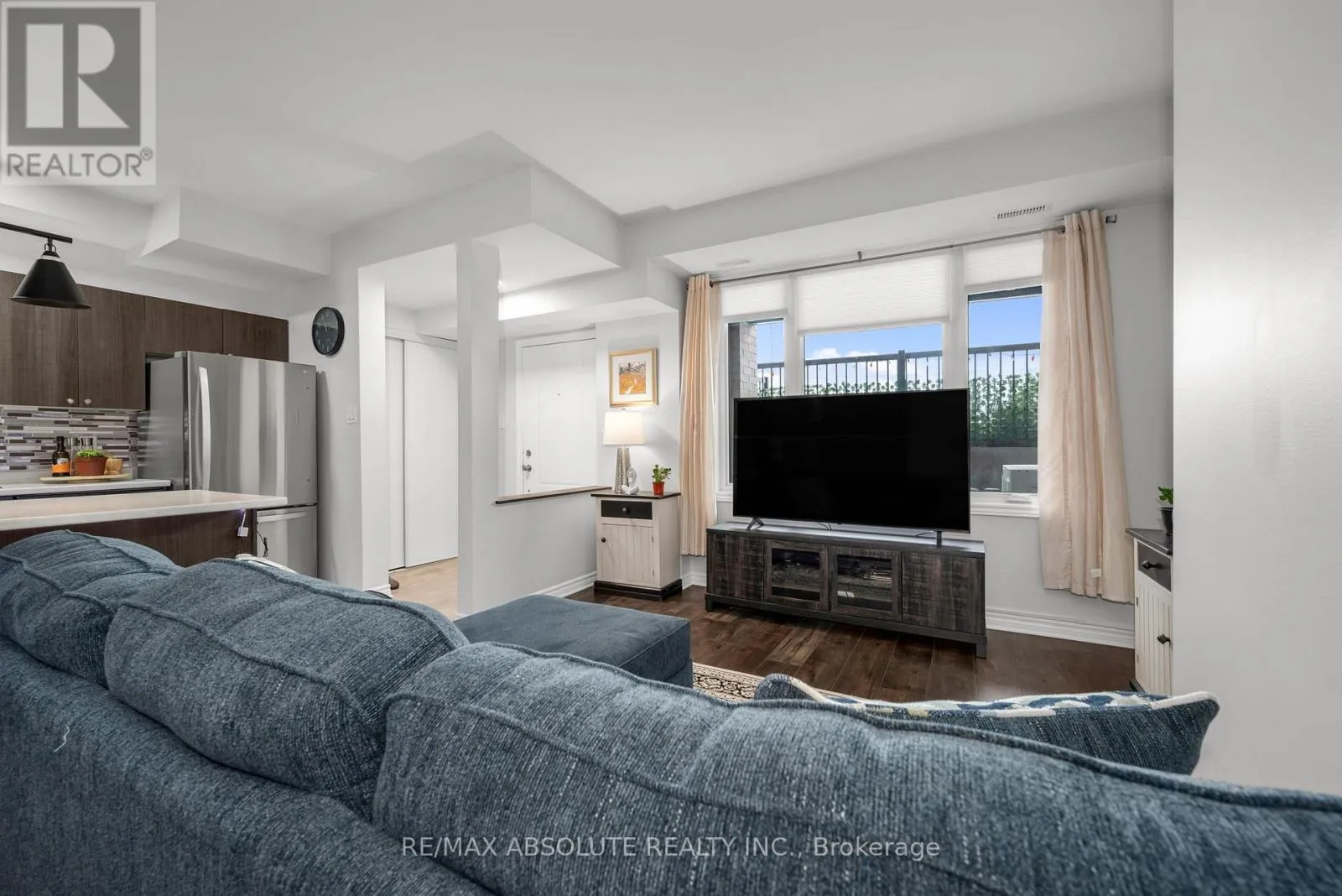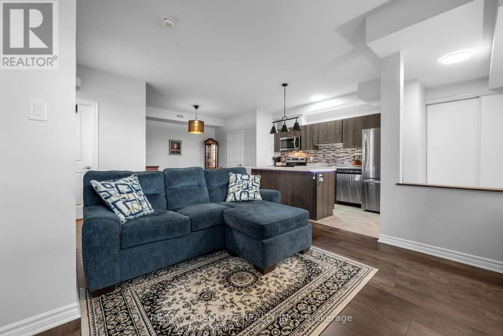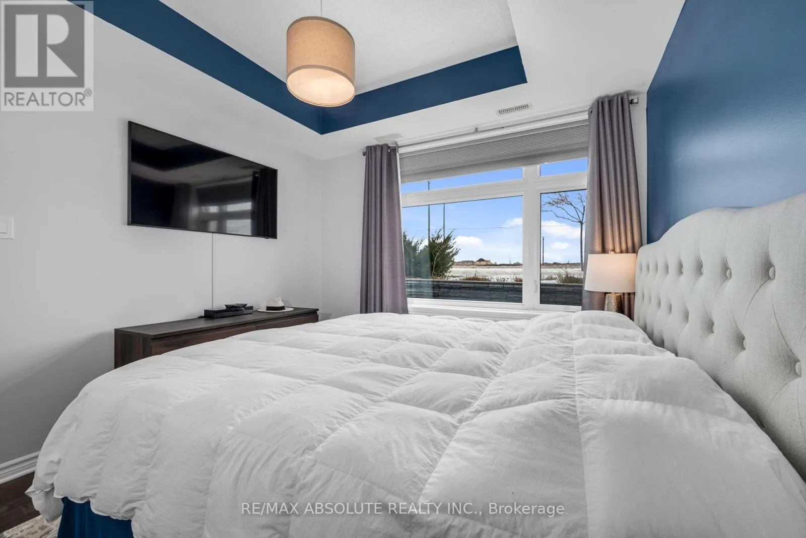 Cross Streets: Shinny Ave and Jaguar Prvt. ** Directions: From Fernbank turn onto Defence St. Turn Left Shinny Ave. Left on Jaguar Prvt. Style and functionality best describe this modern 2-bedroom 2-bathroom 1-level condominium. Located in the popular Emerald Meadows / Trailwest community of Kanata and offering easy access to public transit, parks, schools, recreation and shopping, this home would make an excellent landing spot for first timers, down-sizers or investors. The open concept floor plan, 9ft ceilings, large living room window and southwestern exposure allow an abundance of natural light to pour through the main living spaces. The primary bedroom features a 3-piece ensuite with step-in double shower, walk-in closet, coffered ceiling, and custom blackout window treatments. The space is finished off nicely with a generous sized guest bedroom, 3-piece main bathroom, in-unit laundry, high quality laminate flooring, ceramic tile and private front terrace. Price includes all appliances and window coverings. Condo fees cover water/sewer, building insurance, and common element maintenance. Pets allowed with restrictions. (id:27476)