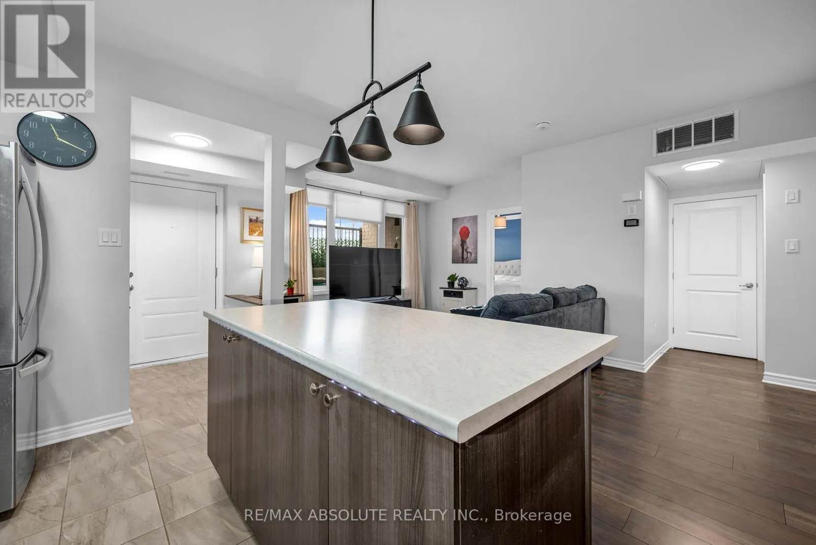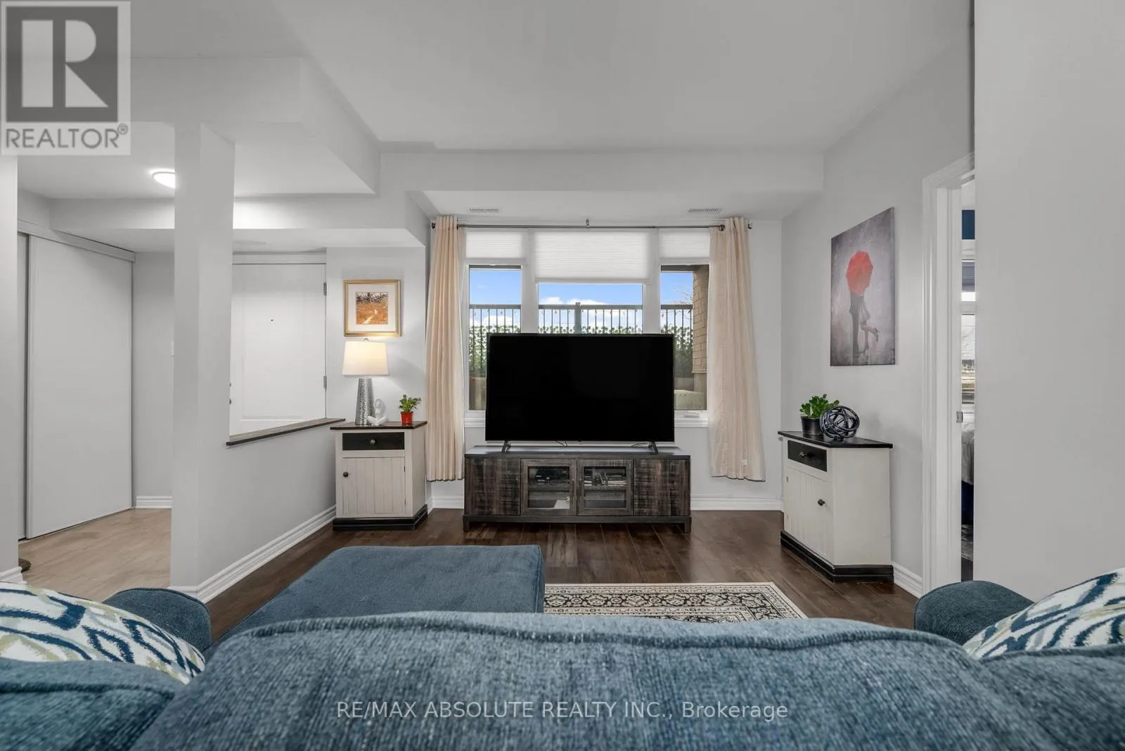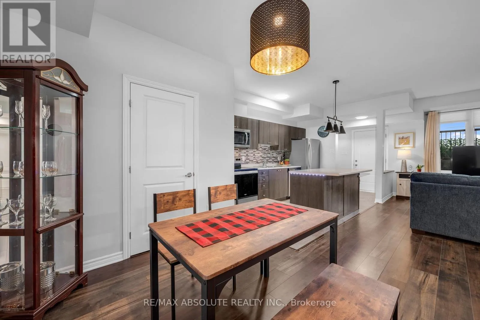 Cross Streets: Shinny Ave and Jaguar Prvt. ** Directions: From Fernbank turn onto Defence St. Turn Left Shinny Ave. Left on Jaguar Prvt. Style and functionality best describe this modern 2-bedroom 2-bathroom 1-level condominium. Located in the popular Emerald Meadows / Trailwest community of Kanata and offering easy access to public transit, parks, schools, recreation and shopping, this home would make an excellent landing spot for first timers, down-sizers or investors. The open concept floor plan, 9ft ceilings, large living room window and southwestern exposure allow an abundance of natural light to pour through the main living spaces. The primary bedroom features a 3-piece ensuite with step-in double shower, walk-in closet, coffered ceiling, and custom blackout window treatments. The space is finished off nicely with a generous sized guest bedroom, 3-piece main bathroom, in-unit laundry, high quality laminate flooring, ceramic tile and private front terrace. Price includes all appliances and window coverings. Condo fees cover water/sewer, building insurance, and common element maintenance. Pets allowed with restrictions. (id:27476)