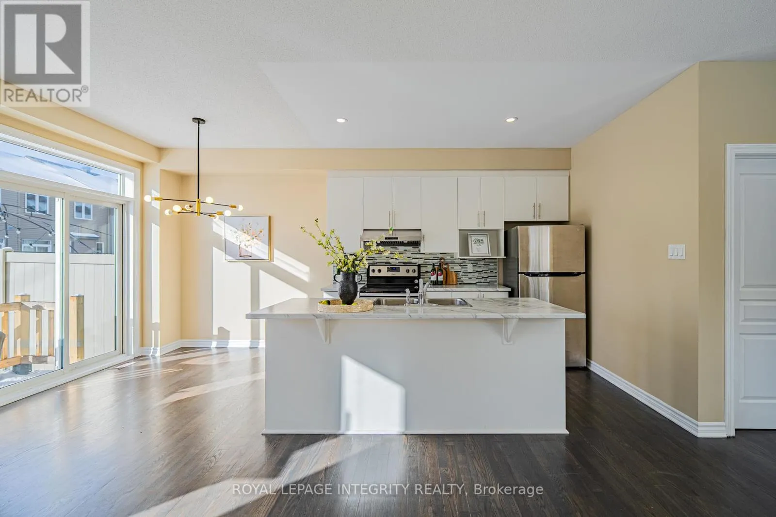 From Strandherd Dr., take Longfields Dr., turn left on Mountshannon Dr. and turn left onto Via Mattino Way. Property Conditionally SOLD . Open House cancelled for today . Bright and spacious END-UNIT townhome offering 2,160 sqft of living space, featuring 3 bedrooms, 4 bathrooms, and a single-car garage, situated on an oversized pie-shaped lot and facing a community park in the desirable Longfields area of Barrhaven. The open-concept main floor showcases hardwood flooring, a bright kitchen with abundant cabinetry and a large island, and a convenient main-floor mudroom with an extra closet. Freshly painted throughout with new light fixtures (2026), this home is truly move-in ready. Upstairs offers three generously sized bedrooms, including a primary suite with walk-in closet and luxurious ensuite, along with second-floor laundry for added convenience. The finished basement includes a full bathroom, cozy family room, and ample storage space. Single-car garage plus extended driveway parking for two additional vehicles. Prime location close to Barrhaven Shopping Centre and Costco, within walking distance to Longfields-Davidson Heights Secondary School, and just 8 minutes' drive to Barrhaven Marketplace, with easy access to public transit for everyday commuting. (id:27476)