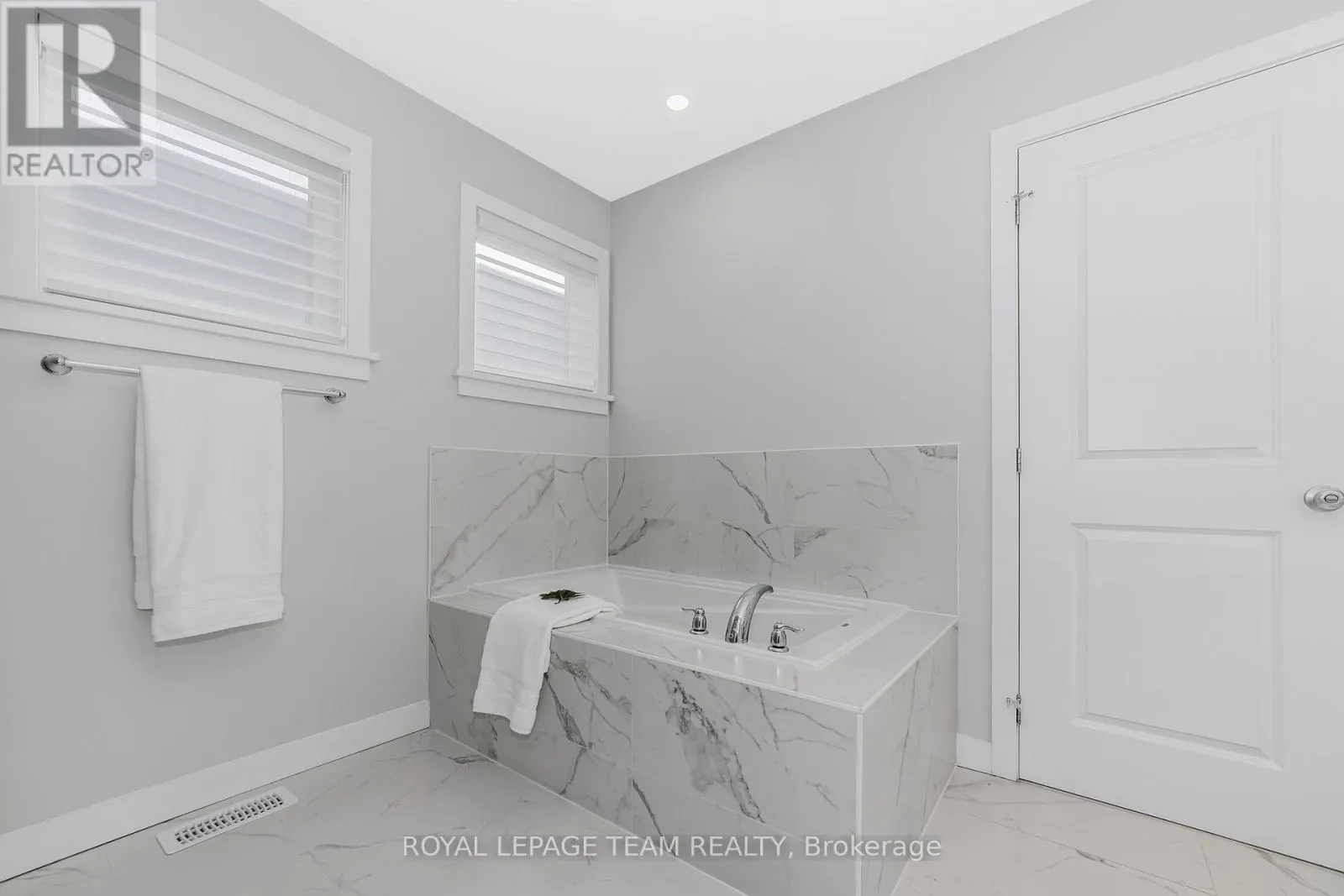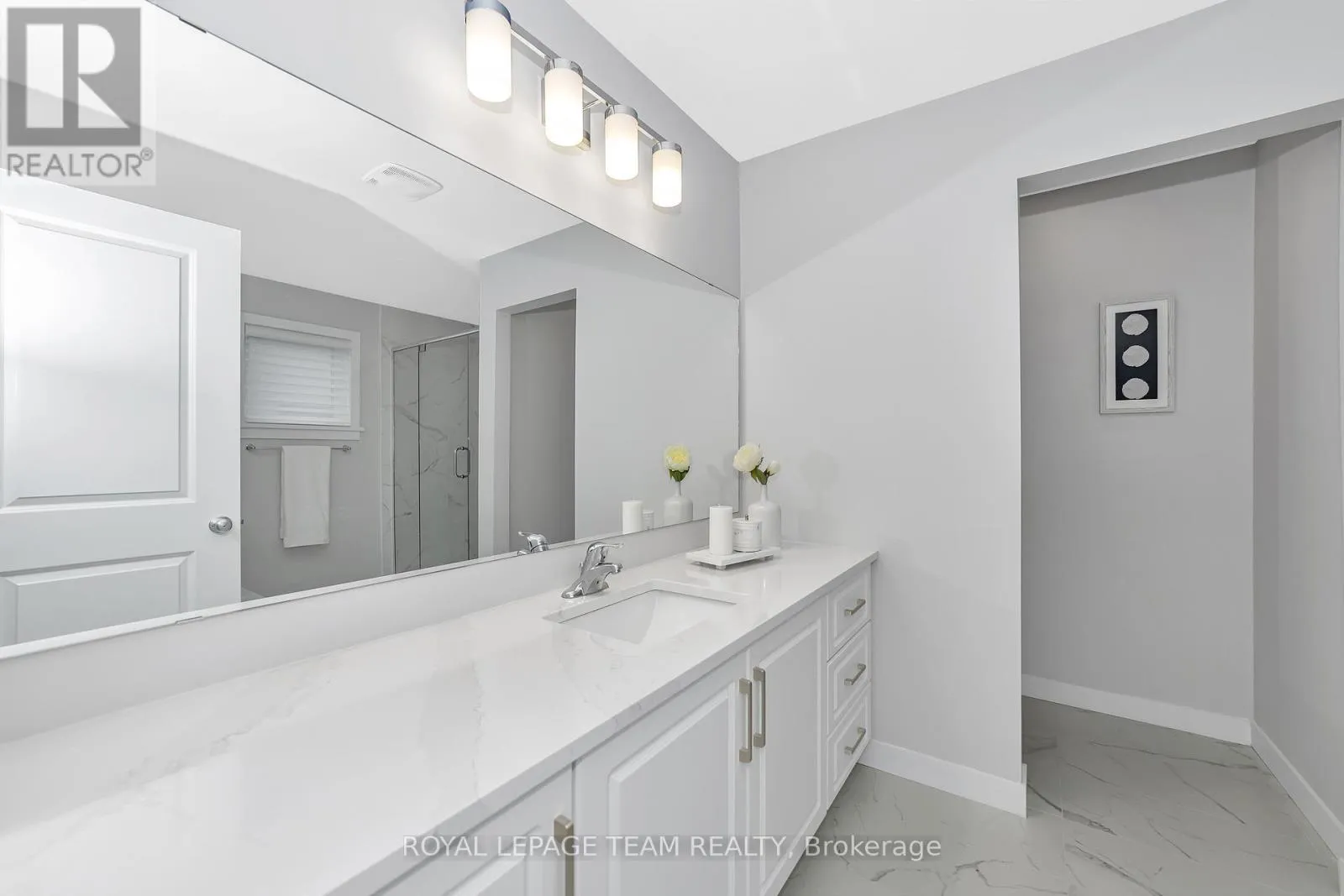 Cross Streets: HWY 417 to Terry Fox Dr (North). Turn Right on Blanding St. Turn Right at Ketchikan Cres. ** Directions: HWY 417 to Terry Fox Dr (North).Turn Right on Blanding St. Turn Right at Ketchikan Cres. Stunning 2023-built home in Kanata Lakes, perfect for multigenerational living! This move-in-ready residence offers over 3,600 sq ft of finished living space across three levels, 5 bdrms & 5 baths, blending elegance, generous proportions, and thoughtful design. Located in a family-friendly neighborhood surrounded by walking paths, parks, and top-rated schools, its ideal for growing families and multigenerational living. Main Floor Highlights: A grand entrance welcomes you with 9-ft ceilings, two-tone paint, and large windows with stylish blinds. Pot lights illuminate white oak hardwood floors, while a spacious WIC keeps outerwear organized. The designer pwdr room completes the space. The gourmet kitchen boasts a 9-ft quartz island, stylish gold-toned hardware, upgraded SS appliances, walk-in pantry, and pendant lighting. The dining room features oversized patio doors leading to a large deck, perfect for outdoor entertaining. The great room wows with a ceramic-surround fireplace, architectural beam mantle, and vaulted ceiling. A private main-floor suite includes a separate living space, full bdrm, ample closet, and an en-suite with quartz counters and a full tub/shower. Second Floor Retreat: The primary suite offers dual closets (walk-in + secondary) and a luxurious en-suite with quartz counters, a soaker tub, and an oversized glass shower. Three additional bdrms provide generous space, while the main bath features quartz counters and a separate tub/shower area. A bright upper-floor laundry room adds convenience. Finished Walkout LL: A spacious rec room is perfect for a home theatre or gym, complemented by a stylish wet bar with quartz counters. A full bath with an oversized shower and abundant storage complete this level. Better than buying new, this home offers luxury, function, and an unbeatable location! Some photos are virtually staged. 24 hours irrevocable on all offers preferred. (id:27476)