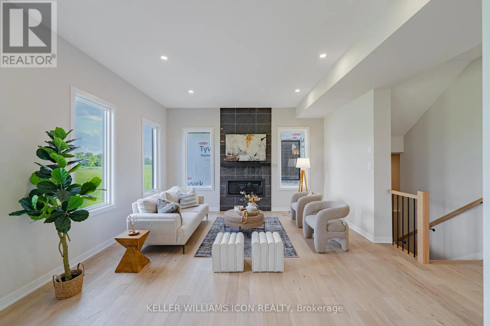 Cross Streets: Canoe st. ** Directions: Elation Hts and Canoe st. Brand new and exceptionally crafted, this distinguished 7-bedroom, 6-bathroom home is waiting for a growing family to be it's first occupants. Total of 4,400+ sq.ft. ,fully upgraded living space across four luxurious levels, nestled on a rare premium lot backing directly onto the Jock River in Barrhaven. Wake up to breathtaking, uninterrupted views and enjoy unmatched privacy where the natural beauty of the seasons unfolds in your own backyard. The main floor boasts 10-foot ceilings, wide-plank oak hardwood flooring throughout, a private office or bedroom with a full bath, an open-concept living room with a feature wall and gas fireplace, connected with the dining area and a chefs kitchen equipped with built-in appliances and an extended island. Hardwood staircases through out. 9-foot ceilings 2nd level shows airy space, four spacious bedrooms, three full bathrooms, including two bedrooms with en-suite. Luxurious primary suite with river views, spa-inspired ensuite, and walk-in closet. The second bedroom not only comes with an ensuite, also a private balcony. Two additional bedrooms connected by a Jack & Jill bath. The BONUS third-floor loft includes its own full bath and private balcony, perfect as a teen retreat, creative studio, or guest suite. The finished basement adds an extra bedroom and bathroom, a spacious rec area, and a bonus den or office, offering even more versatility for large family needs. With upgraded 200 AMP service, this brand-new home is move-in ready for its first occupants. Located steps from shopping, schools, parks, and everyday amenities, it combines space, comfort, and convenience in one exceptional riverside setting. (id:27476)