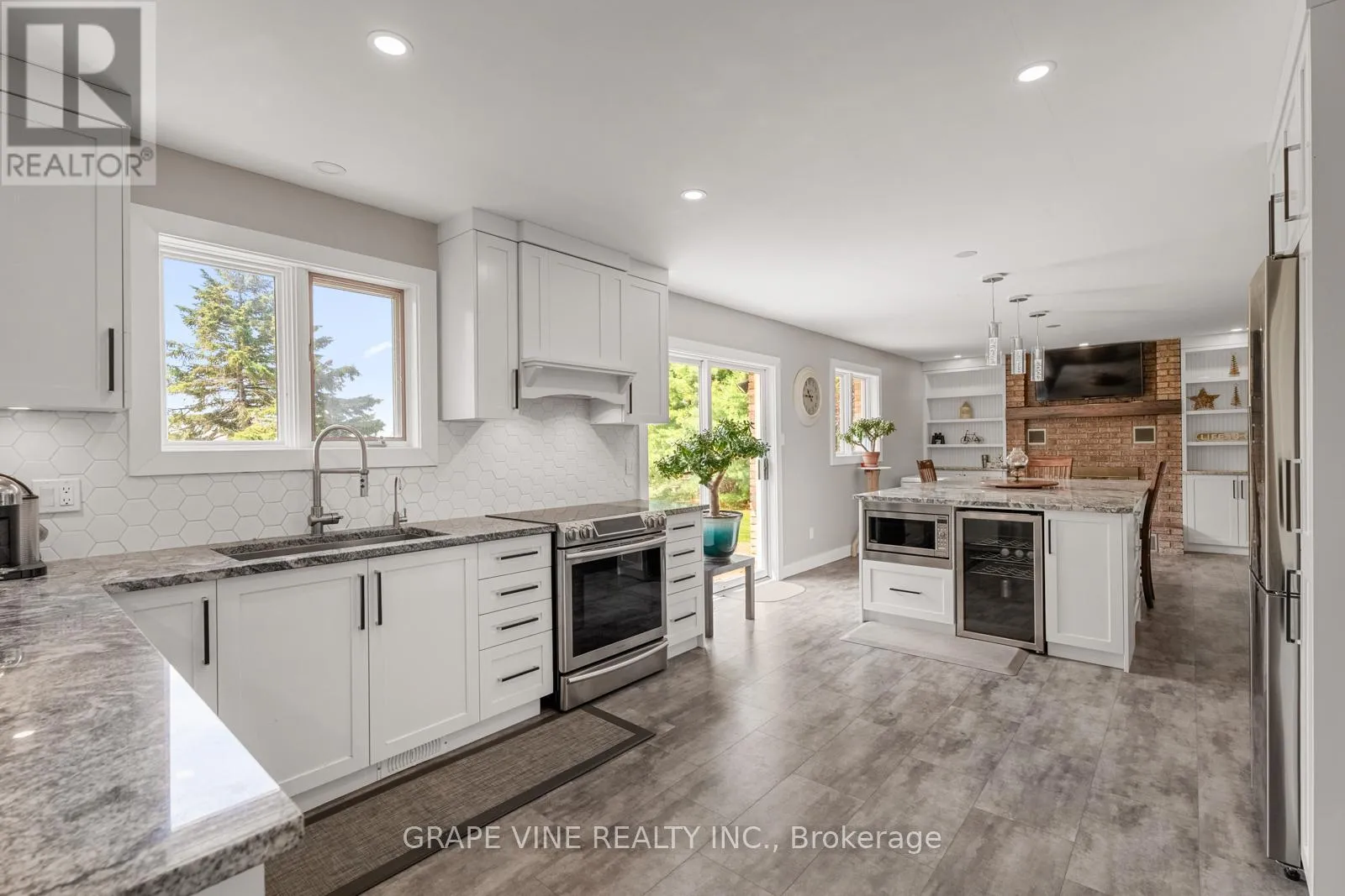Cross Streets: Old Richmond Rd. ** Directions: See Description. Client RemarksThis property features premium GEOTHERMAL heating and cooling-providing year-round comfort with no gas, propane, or oil bills. Welcome to 5073 Rushmore Road, an all-brick private country oasis on 2.79 acres, surrounded by mature trees, natural beauty, and peaceful surroundings. The property also borders a quiet stream, adding to its exceptional sense of tranquility. Inside, this beautifully maintained 4-bedroom, 2.5-bath home offers a bright, open layout with upgraded flooring and fresh paint throughout. All four bedrooms are located upstairs, making it ideal for families. The renovated 2019 kitchen is the centerpiece of the home, featuring a 5' x 9' granite island, custom cabinetry, tons of cupboard space and storage, and a built-in wine bar-perfect for everyday living or entertaining. A brand-new water softener and filtration system offers added comfort and peace of mind. The primary bedroom includes a 3-piece ensuite with a stand-up shower. The lower level features egress windows and a private entrance, making it ideal for conversion into a studio-style suite for extended family or potential extra income. The land is beautifully landscaped with mature trees and a large number of decorative evergreen and Christmas trees-creating a setting that feels both scenic and private without calling it a tree farm. Additional highlights include: Geothermal heating and cooling Private well (no water bill) Brand-new water softener + filtration system Central vacuum system Oversized double garage with dual access to kitchen and basement All-brick construction Abundant mature trees and evergreen plantings-a naturally peaceful, picturesque setting. Ideally situated just north of Richmond, south of Kanata, and west of Barrhaven, with quick access to Highway 416, Old Richmond Road, and Fallowfield Road. This location offers a perfect balance of privacy, convenience, and nature. (id:27476)