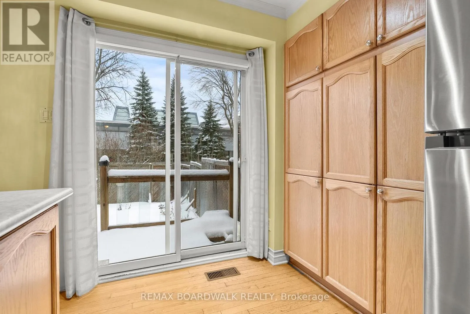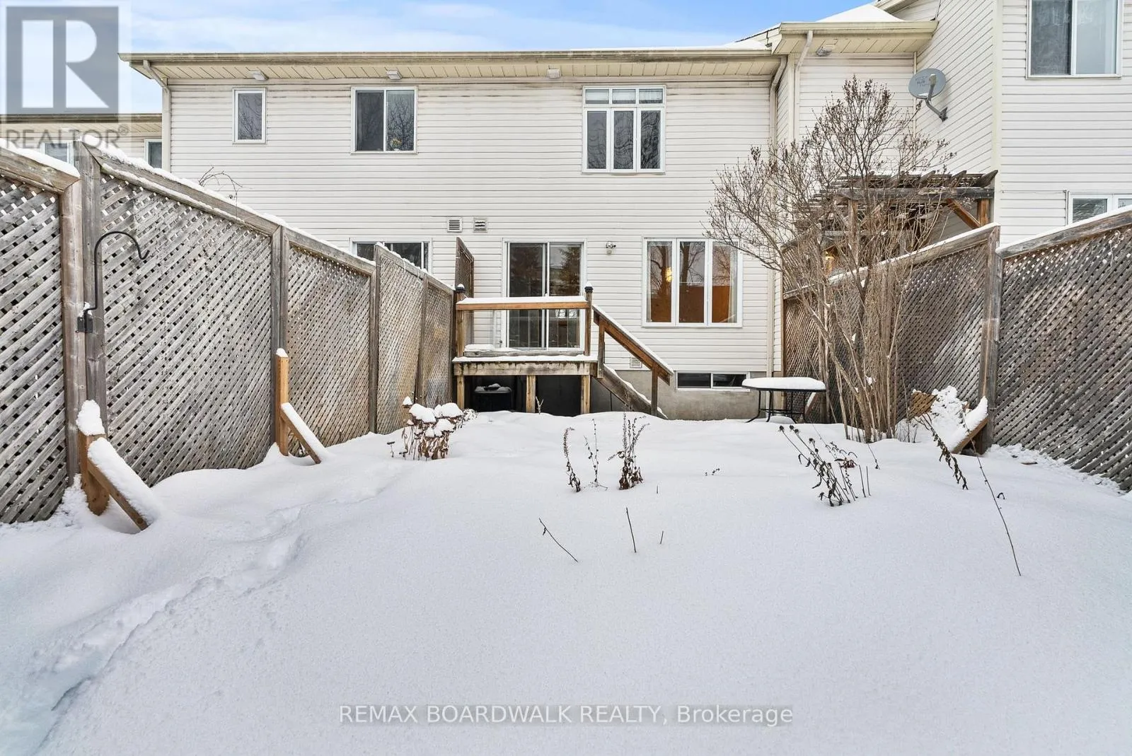 Cross Streets: Montreal Road and Rue de L'Eglise. ** Directions: This 1 street enclave is located just off Montreal Road and Rue de L'Eglise. Easy access to transit and shopping. Lovely townhome situated on a quiet crescent surrounded by young families. This well-maintained property backs onto the park and recreation area of the St. Laurent Complex with no rear neighbours and full southern exposure. Enjoy direct access to green space and community amenities including a pool, library, skating rink, gyms, and more. Pride of ownership shows throughout. The original owners made thoughtful modifications at construction, adding extra space to the dining and kitchen areas. Hardwood flooring runs throughout the main and upper levels. The main bathroom features a beautiful skylight, bringing in plenty of natural light. Step outside to a private, low-maintenance backyard with lovely landscaping and open views - the perfect spot to relax or entertain. The unfinished basement is framed and ready to be completed as a future family room. A bright, cheerful home in a great community close to parks, schools, and transit. (id:27476)