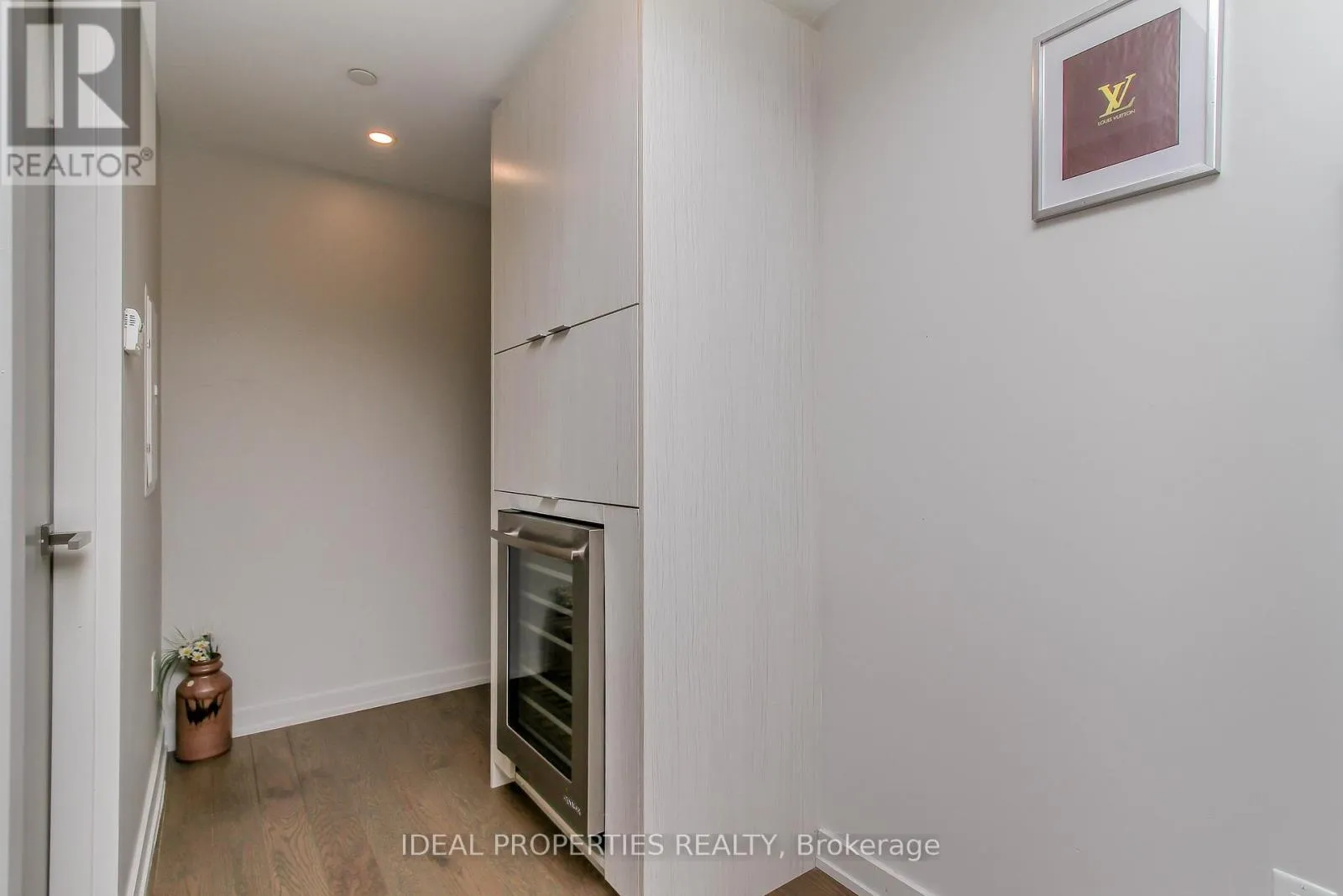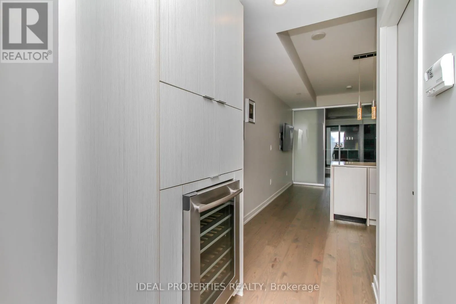 Cross Streets: Metcalfe Street. ** Directions: Building Entrance is on Queen between O'Connor and Metcalfe. Welcome to reResidences. This fully furnished, move in ready one bedroom, one bathroom condo offers refined urban living in the heart of downtown Ottawa. Featuring 9' ceilings, hardwood and tile flooring, and a private balcony with city views, this unit combines modern design with everyday comfort.The contemporary kitchen is equipped with quartz countertops, a breakfast bar, ample cabinetry, and a built-in wine fridge, ideal for both entertaining and daily living. Additional conveniences include in-suite laundry, a storage locker, and bike storage.Residents enjoy access to premium building amenities including a fitness centre, sauna, theatre room, game and party room, and an impressive Sky Lounge with panoramic views. Located just steps from Ottawa's top restaurants, shopping, and entertainment, this condo is an excellent opportunity for professionals seeking a stylish and convenient downtown lifestyle. (id:27476)