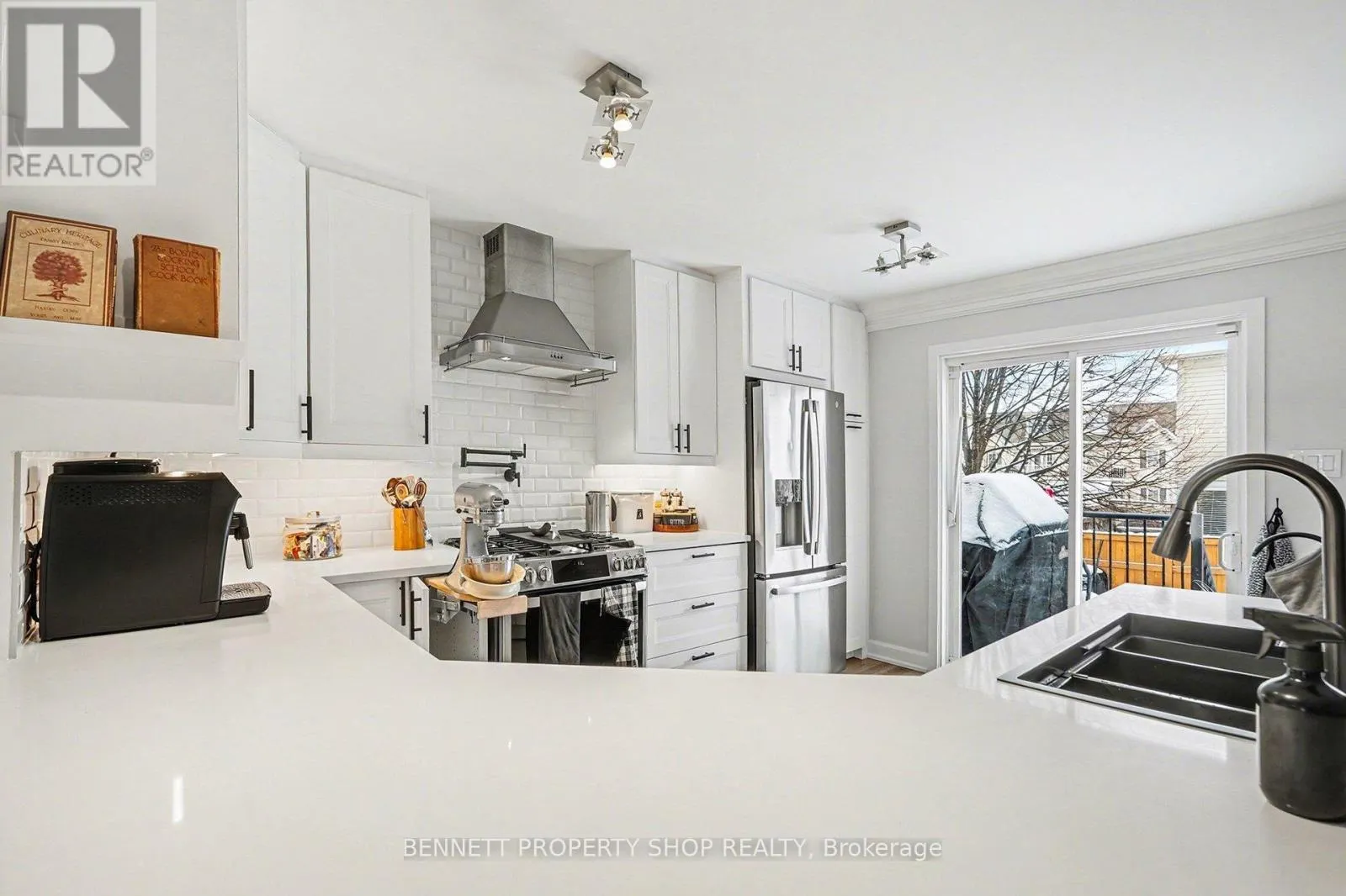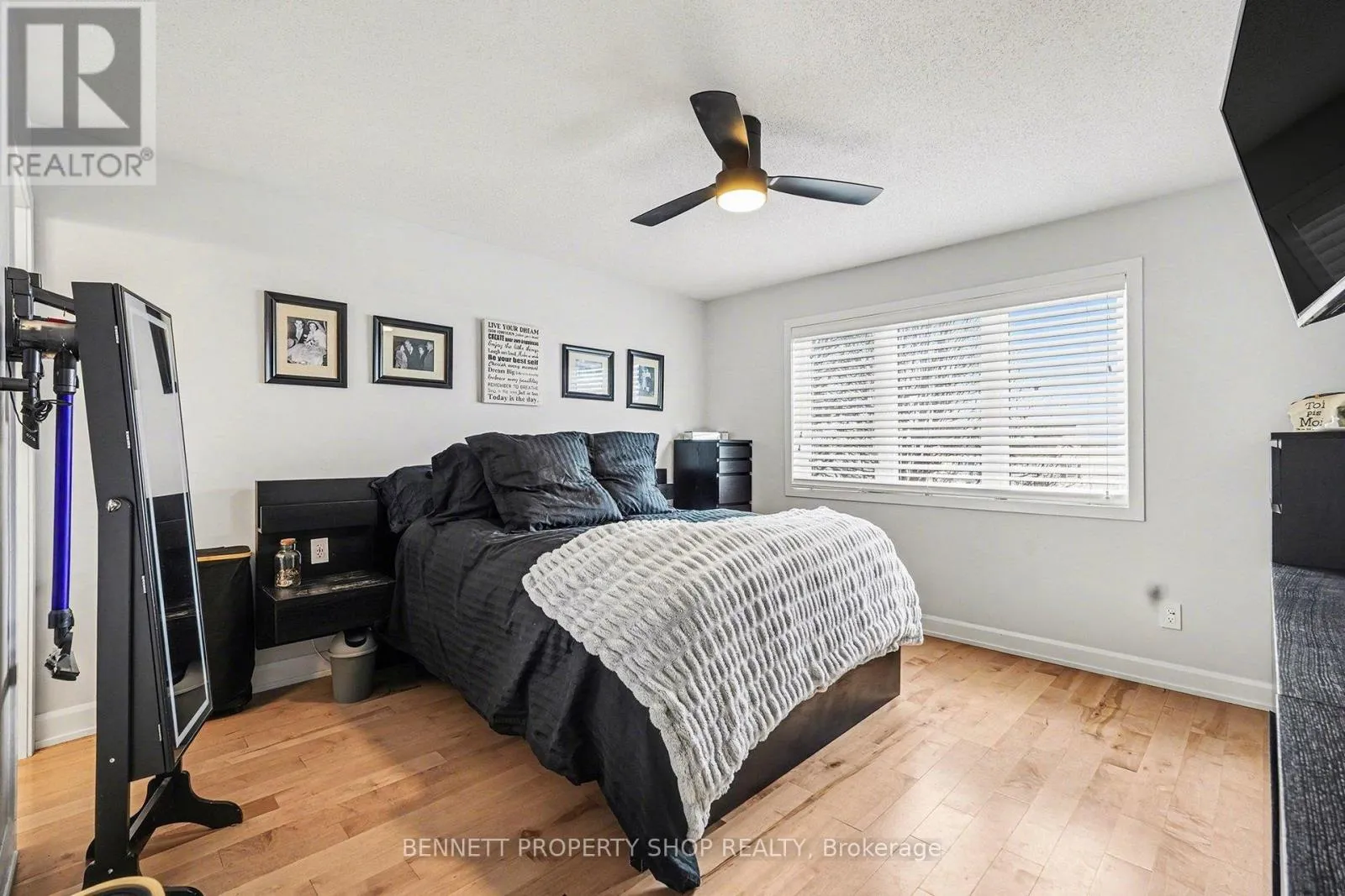 Cross Streets: Maple Grove | Montserrat. ** Directions: Huntmar, to Maple Grove to Montserrat. Renovated from top to bottom, this stunning open-concept end-unit townhome is located in the highly desirable Fairwinds community, close to shopping, recreation, parks, and schools. Thoughtfully updated throughout, this home offers modern finishes, excellent functionality, and turnkey living. The main level features a spacious foyer and beautiful hardwood flooring that flows through the open living and dining areas. The inviting living room is anchored by a cozy gas fireplace, creating a warm and comfortable space for everyday living and entertaining. The upgraded eat-in kitchen offers stainless steel appliances, quartz countertops, ample cabinetry, and patio doors leading to the backyard. The second level includes a generous primary bedroom with walk-in closet and a private ensuite featuring a stand-up shower. Two additional well-sized bedrooms, a full main bathroom, and the convenience of second-floor laundry complete this level. The fully finished basement provides a spacious family room ideal for movie nights, a home gym, play area, or home office. Outside, enjoy a large deck and fully fenced backyard, perfect for relaxing or entertaining. The hot tub is included. Sellers may also be open to leaving select items including fitness equipment, outdoor smart TV with protective case, lawnmower, and bedroom furniture. Extensive updates include kitchen renovation, hardwood flooring on main and second levels, basement flooring, heat pump, furnace, hot water tank, kick-sweep vacuum, roof, garage door, and main entrance door. A beautifully maintained home offering exceptional value in a fantastic location. Some photos are digitally enhanced. (id:27476)